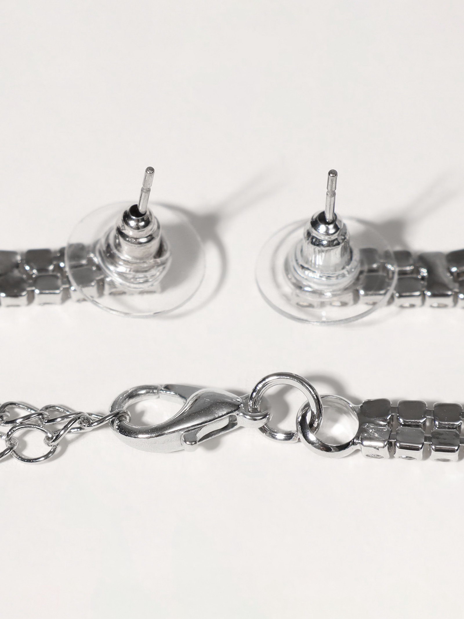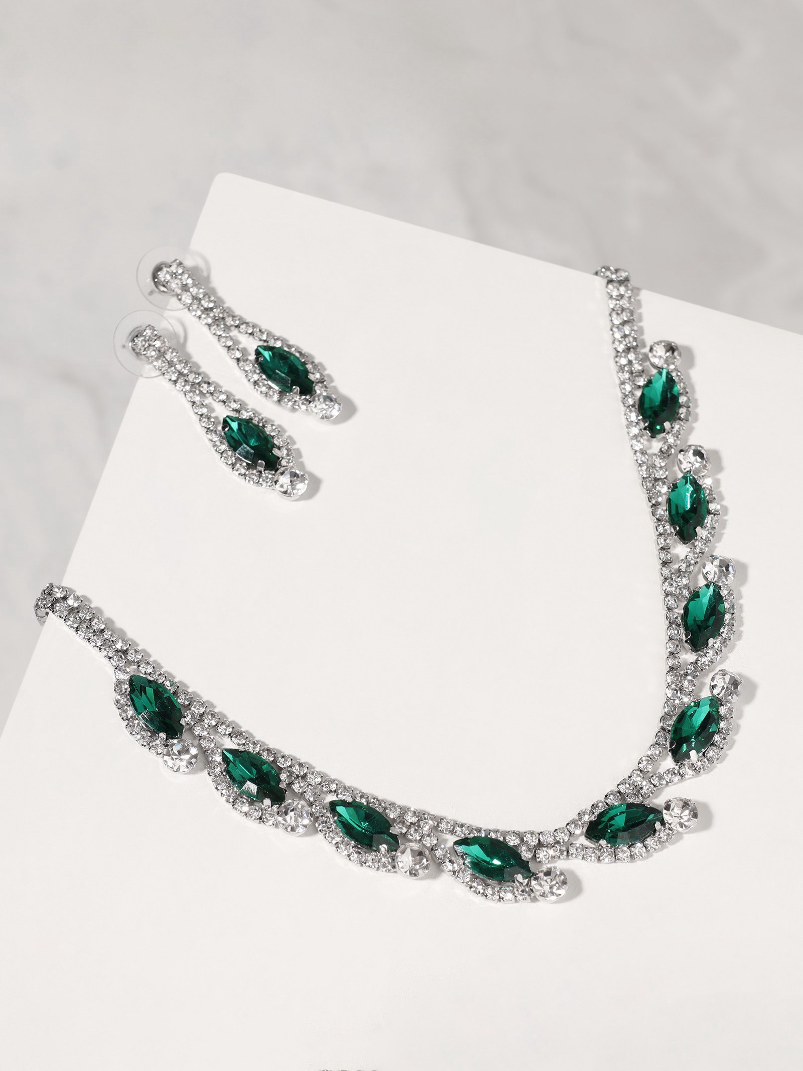 Вид: Колье, Серьги Вставка/Подвеска: Стекло, Стразы Размер упаковки: 7 x 1.5 x 27.5 см. Длина, см: 32 Тематика праздника: Универсальная тематика Вид застёжки: Застёжка пусет (гвоздик) tnved: 7117190000 Тематика: Винтаж Для кого: Для женщины Состав набора: Серьги + Колье В наборе, шт.: 2 Цвет фурнитуры: Серебряный Цвет: Зелёный Материал основы: Металл Набор: Да Набор из двух предметов: серьги и колье со стразами это элегантный аксессуар с уникальным дизайном, который добавит сияния вашему образу. Этот комплект идеально подойдет для любого мероприятия, подчеркивая утонченность и стиль. Серьги и колье можно носить вместе или раздельно, дополняя образы для любого случая. Советы по уходу за бижутерией