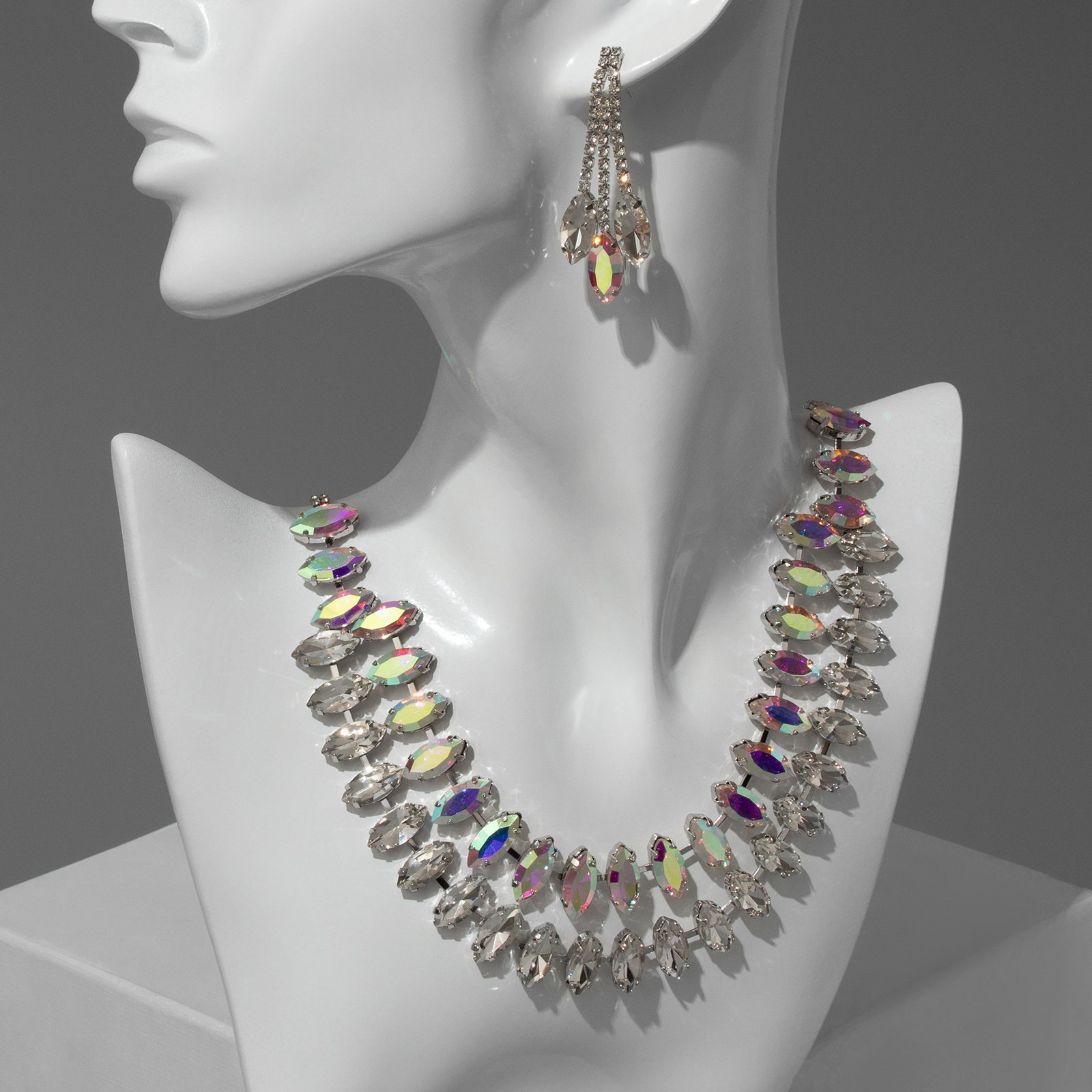 Вставка/Подвеска: Стекло, Стразы Тематика праздника: 8 Марта, Выпускной в школе, День рождения, Новый год, Универсальная тематика Вид: Колье, Серьги Размер упаковки: 17 x 2 x 23 см. Цвет: Разноцветный Набор: Да Длина, см: 40 Материал основы: Металл Вид застёжки: Застёжка пусет (гвоздик) Составляющие набора: Серьги Тематика подарка: Бижутерия tnved: 7117190000 tnved: 7117190000 Для кого: Для женщины Тематика: Кристаллы Температурное ограничение: Нет Состав набора: Серьги + Колье В наборе, шт.: 2 Цвет фурнитуры: Серебряный Набор из двух предметов: серьги и колье со стразами это элегантный аксессуар с уникальным дизайном, который добавит сияния вашему образу. Этот комплект идеально подойдет для любого мероприятия, подчеркивая утонченность и стиль. Серьги и колье можно носить вместе или раздельно, дополняя образы для любого случая. Советы по уходу за бижутерией
