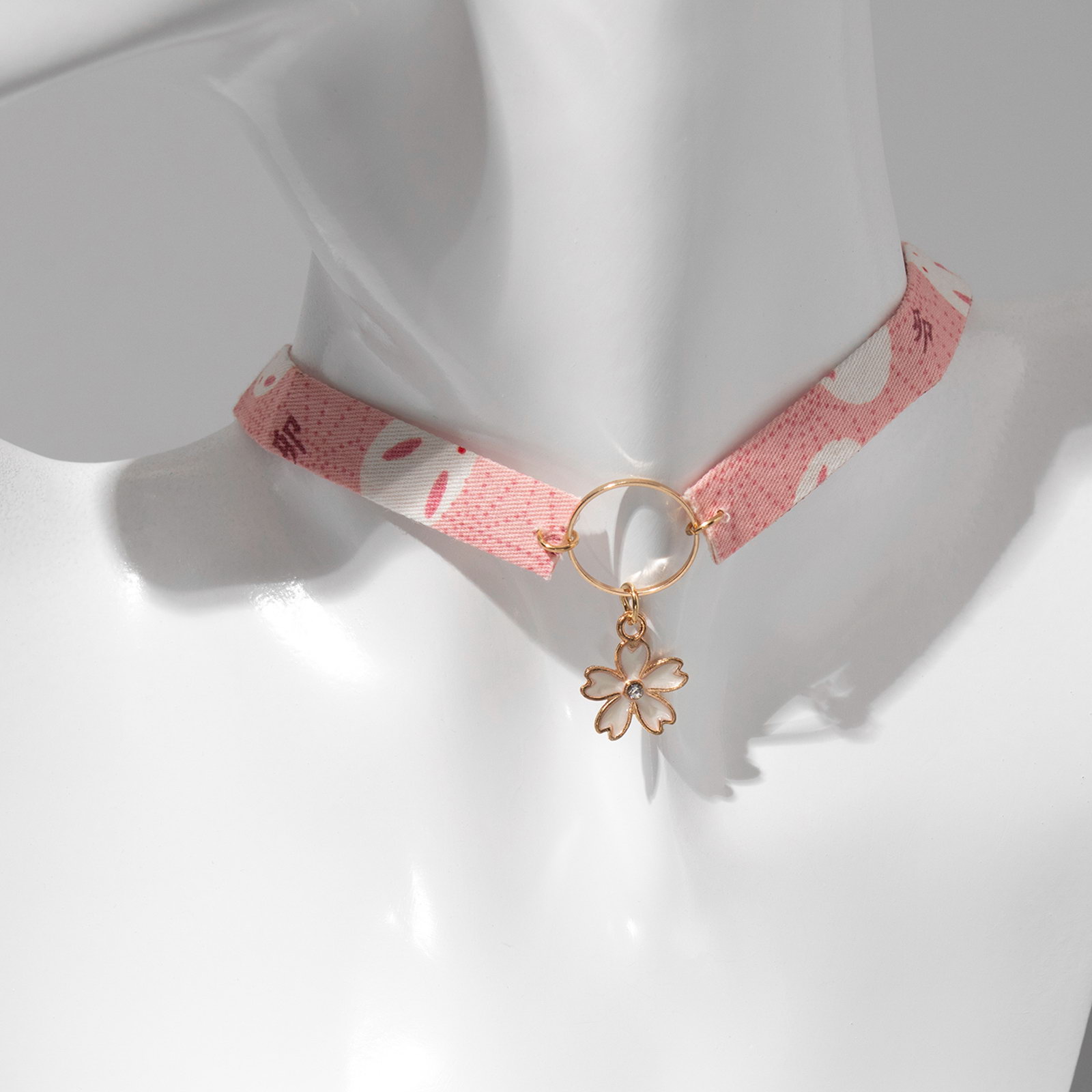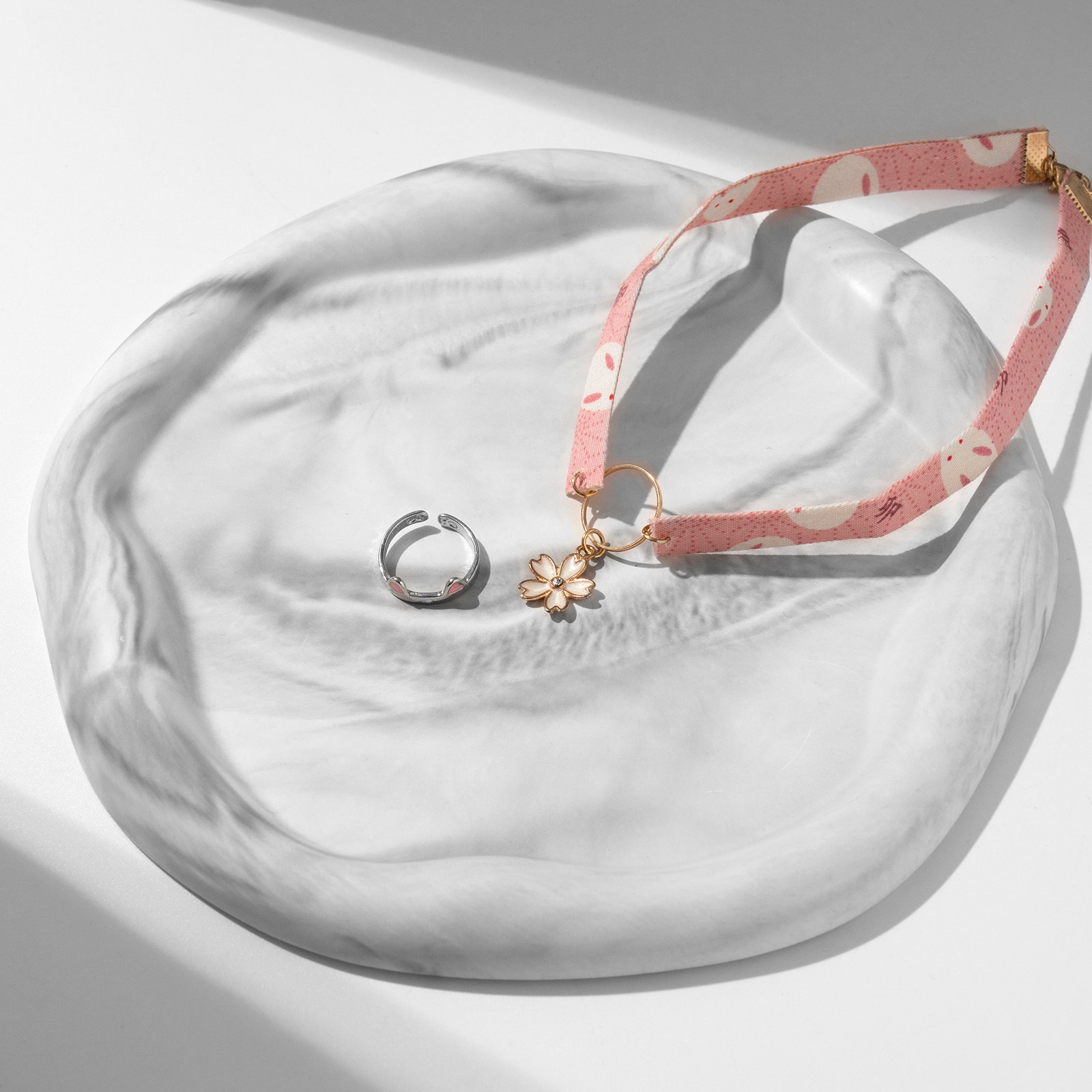 Набор 2 предмета: кольцо, чокер "Япония" милый, цвет бело-розовый в серебристо-золотом металле, 30 см, 3.2x30x0.5 см., QF, Китай