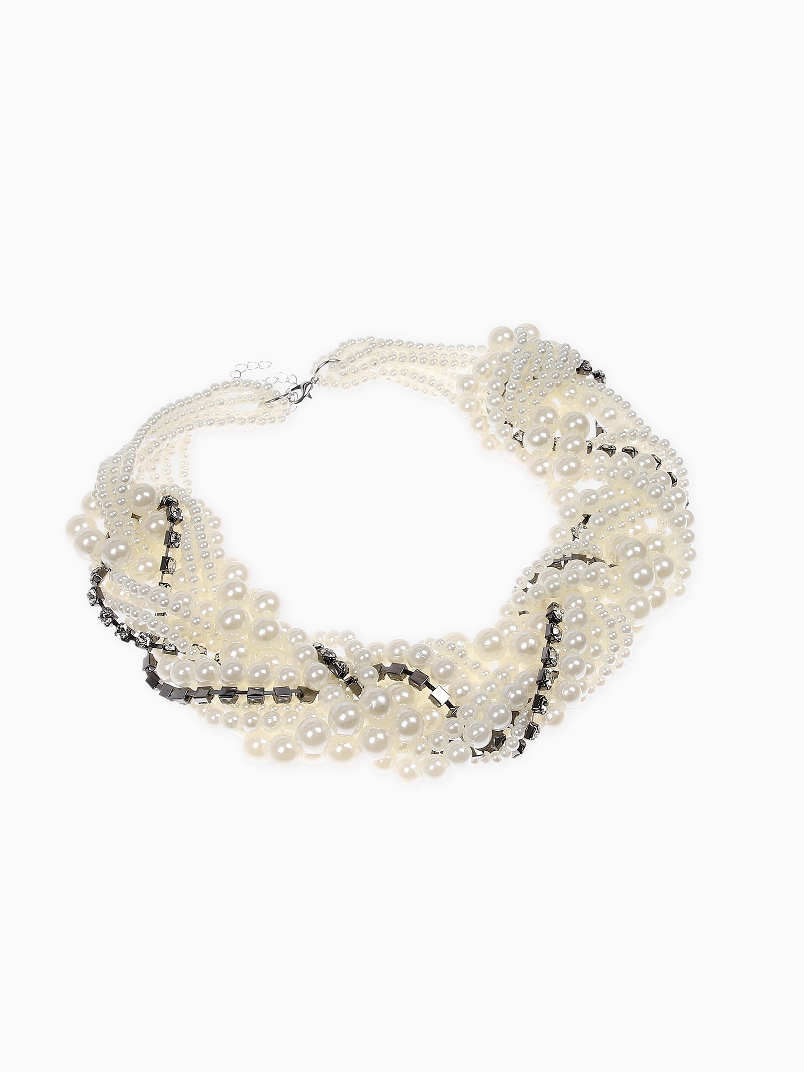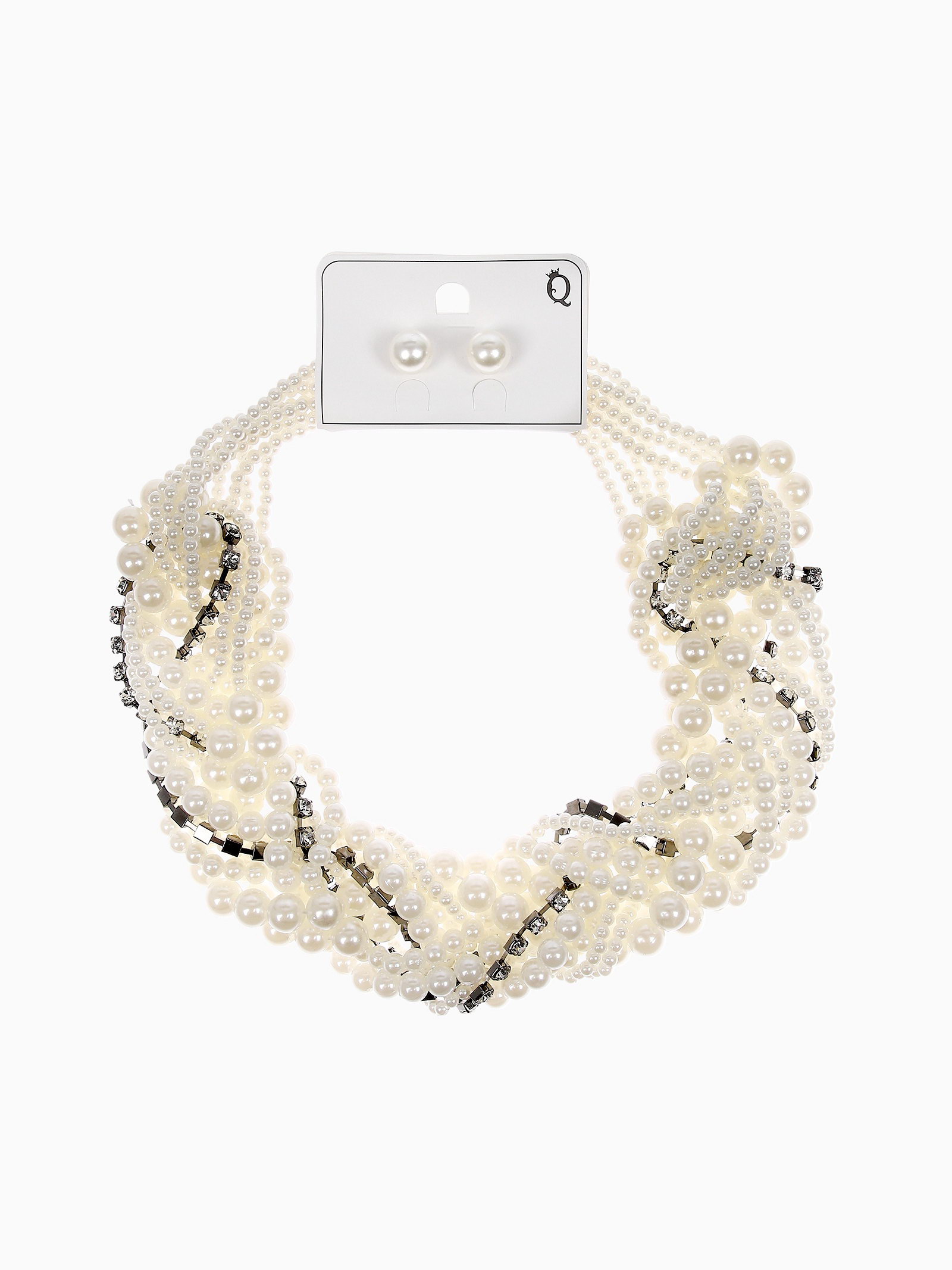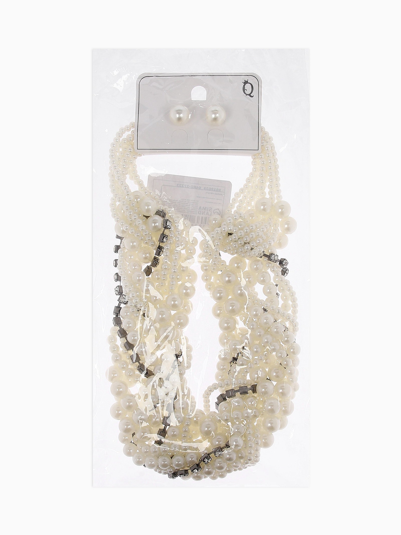 Набор 2 предмета: серьги, бусы "Жемчужный со стразами", цвет белый, 40 см, 5x40x2 см., QF, Китай