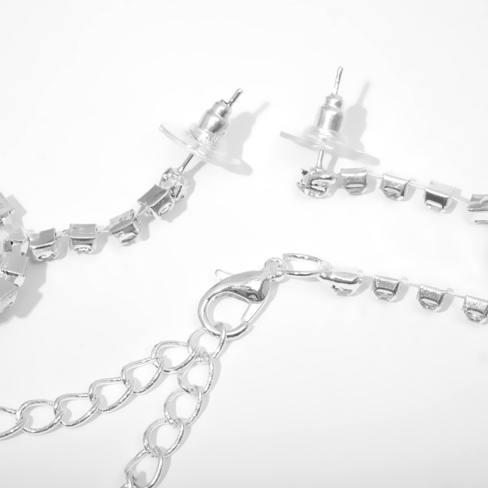 Набор 2 предмета: серьги, колье "Элит" капли треугольник, цвет розово-белый в серебре, 40 см, 3.5x40x4.5 см., Queen fair, Китай