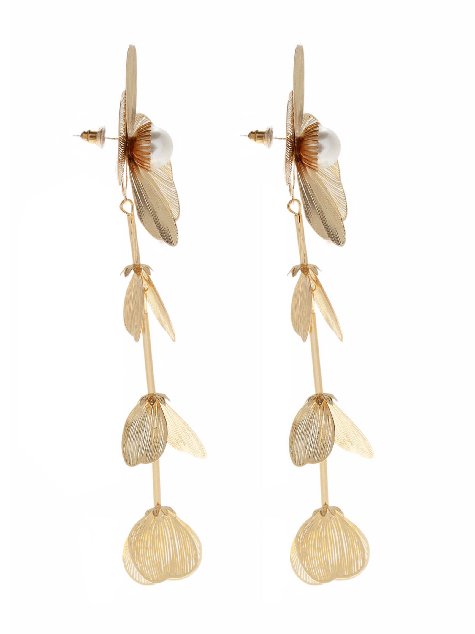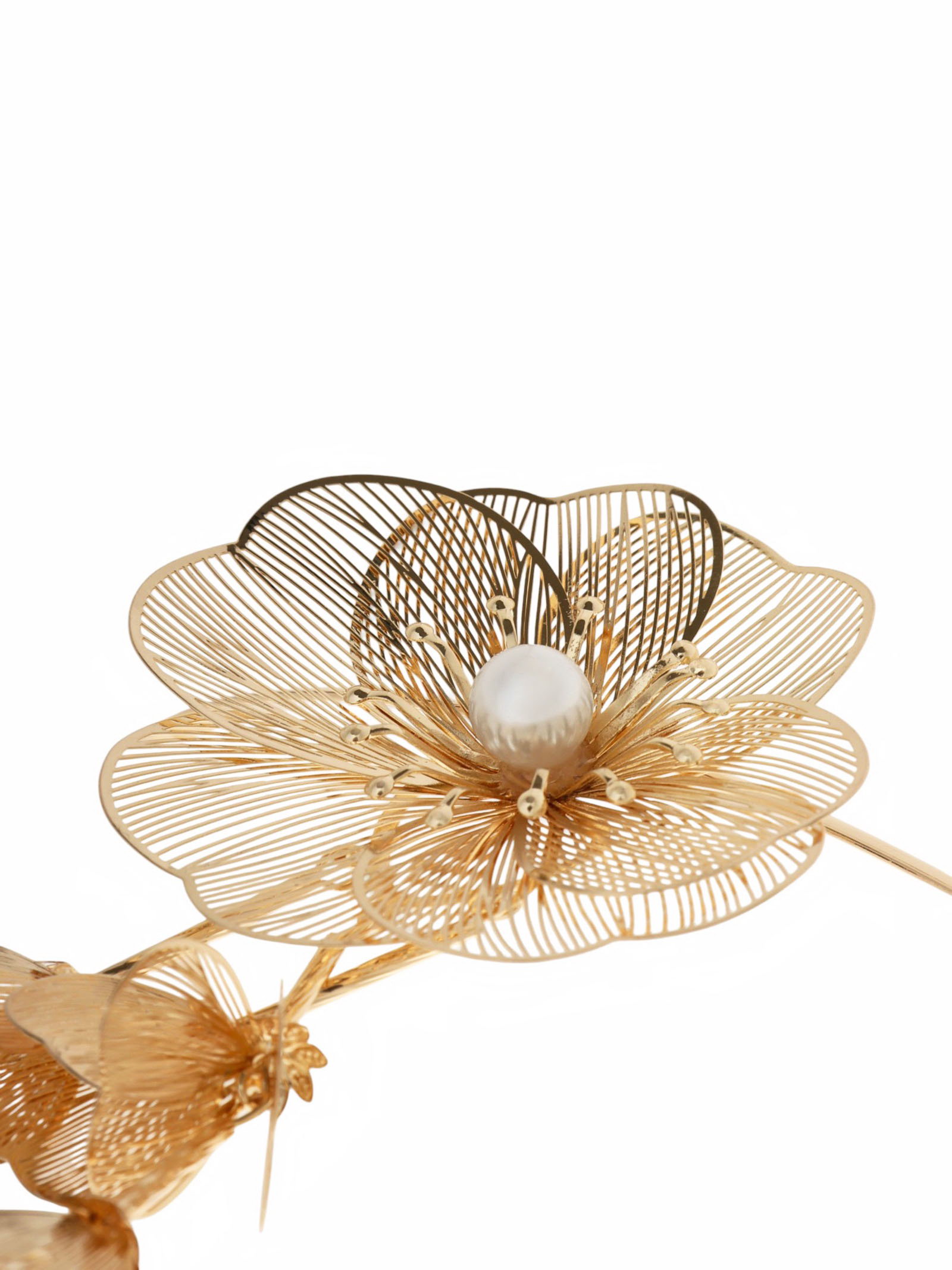 Набор 2 предмета: серьги, колье "Цветок" бусина и стразик, белый в золоте, d=14 см, 14x24x2 см., QF, Китай