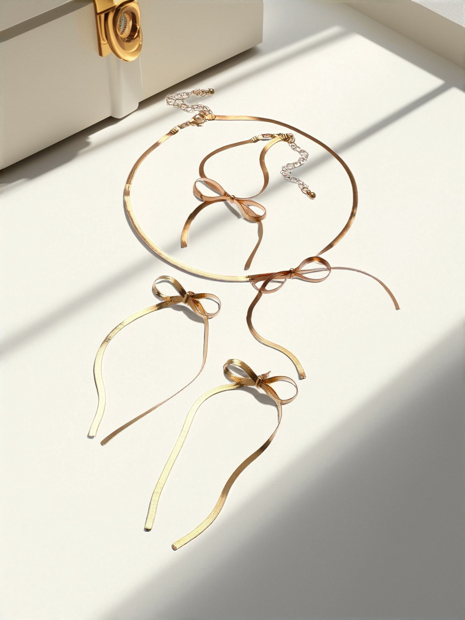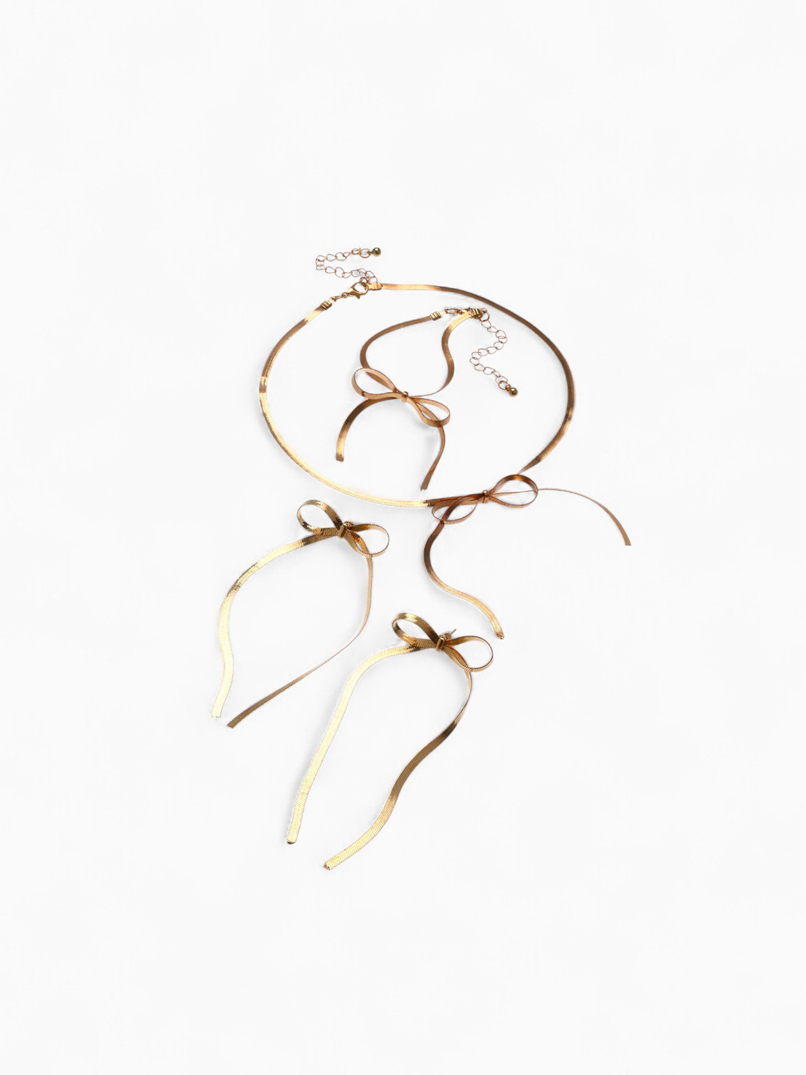 Набор "Бантик", 3 предмета: колье, серьги, браслет, цвет золото, 1.5x32x1 см., QF, Китай