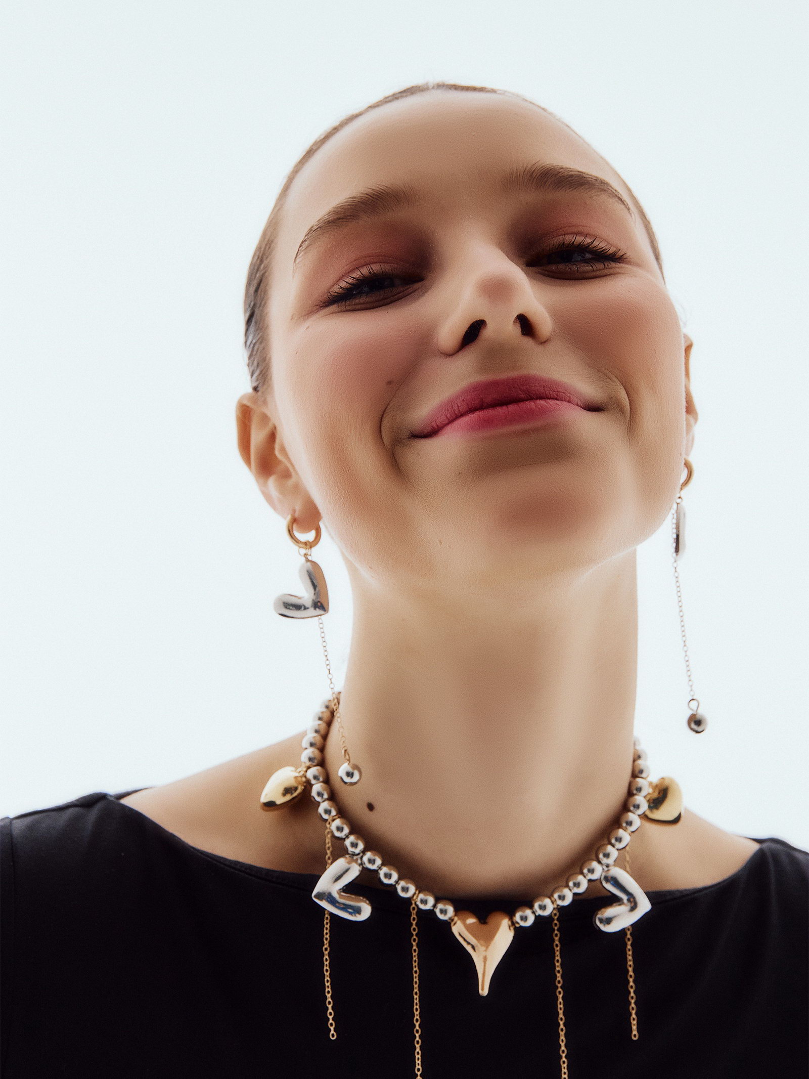 Цвет фурнитуры: Золотой, Серебряный Вставка/Подвеска: Металл, Пластик Цвет: Золотистый, Серебристый Размер упаковки: 8 x 1 x 20 см. tnved: 7117900000 В наборе, шт.: 2 Для кого: Для женщины Состав набора: Серьги + Колье Тематика: Сердце Этот комплект из двух изысканных украшений сочетает в себе романтику и современный стиль, играя благородными золотистыми и серебристыми оттенками. Колье и серьги с темой сердца символом любви и тепла позволяют воплотить в повседневном образе трепетные чувства и подчеркнуть индивидуальность. Металлические элементы гармонично дополняются вставками из пластика и металла, что добавляет аксессуарам лёгкость и неповторимый блеск. Нежные формы и высокое качество исполнения делают набор универсальным подарком для женщин любого возраста и стиля.