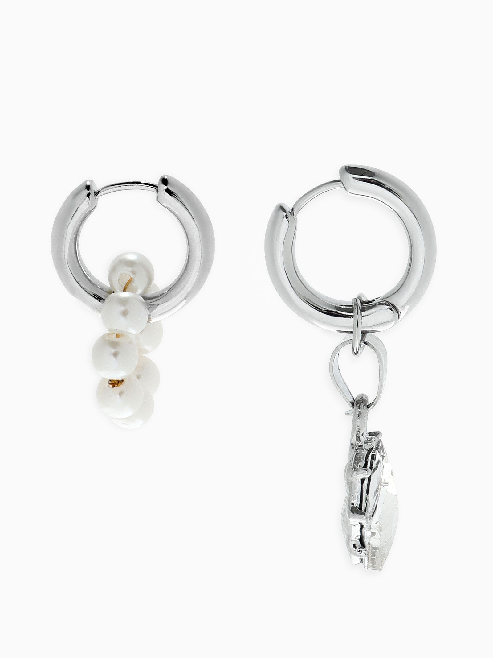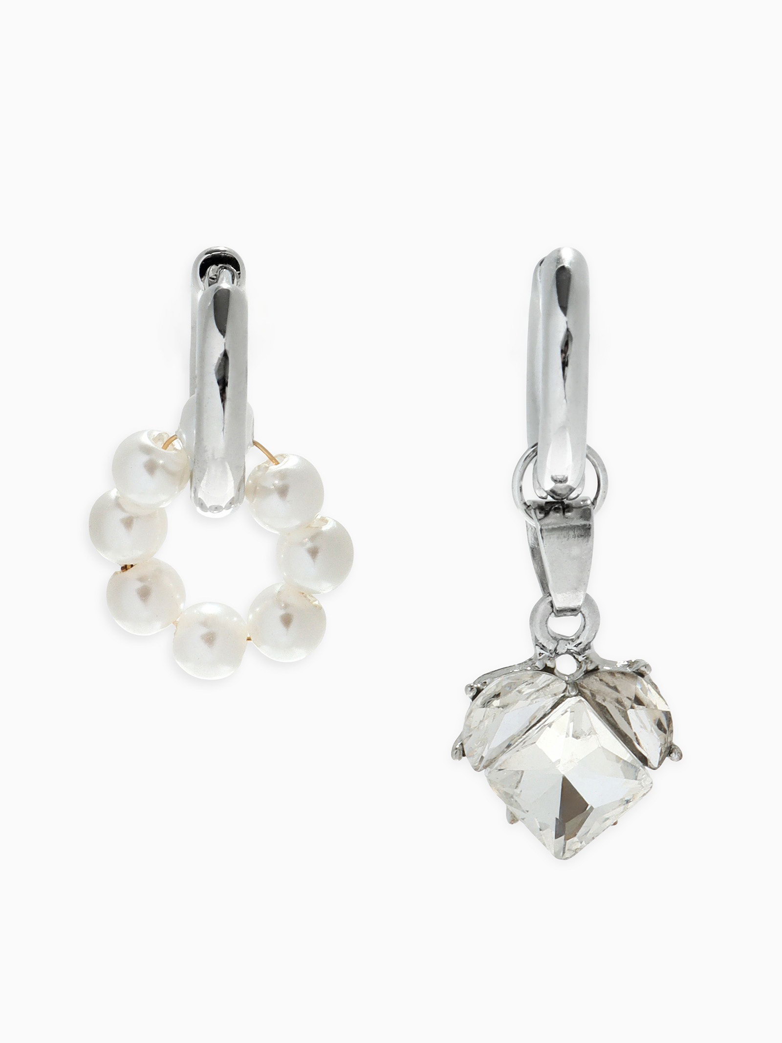 Набор 2 предмета: колье, серьги "Трансформеры" жемчуг со стразами, белый в серебре, 3x30x0.6 см., QF, Китай