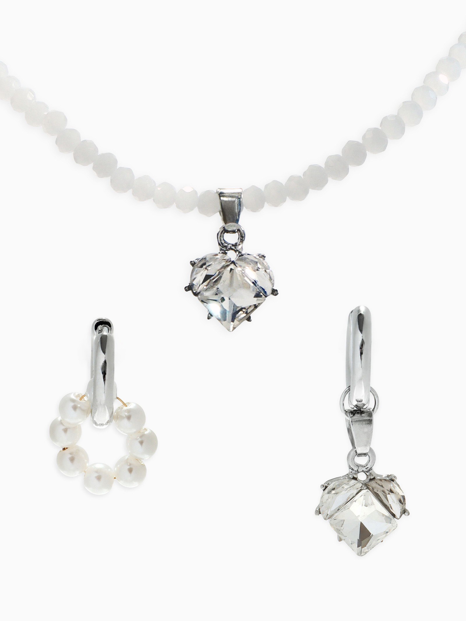 Цвет: Белый, Прозрачный Тематика: Жемчужная, Сердце Размер упаковки: 6 x 1 x 20 см. tnved: 7117900000 Состав набора: Серьги + Колье Цвет фурнитуры: Серебряный Для кого: Для женщины Вставка/Подвеска: Стекло В наборе, шт.: 2 Набор из колье и серёг, выполненный в серебристом цвете с белыми жемчужными и стеклянными вставками, воплощает утончённость и современную элегантность. Украшения из коллекции "Трансформеры" блестяще играют светом за счёт инкрустации стразами, создавая эффект нежного сияния и подчёркивая женственность образа. Этот комплект станет универсальным дополнением к как повседневному, так и вечернему наряду, придавая вам изысканности и легкости. Концепция трансформации позволяет легко менять стиль и ощущение от украшений, что даёт возможность экспериментировать и создавать уникальные образы каждый день.