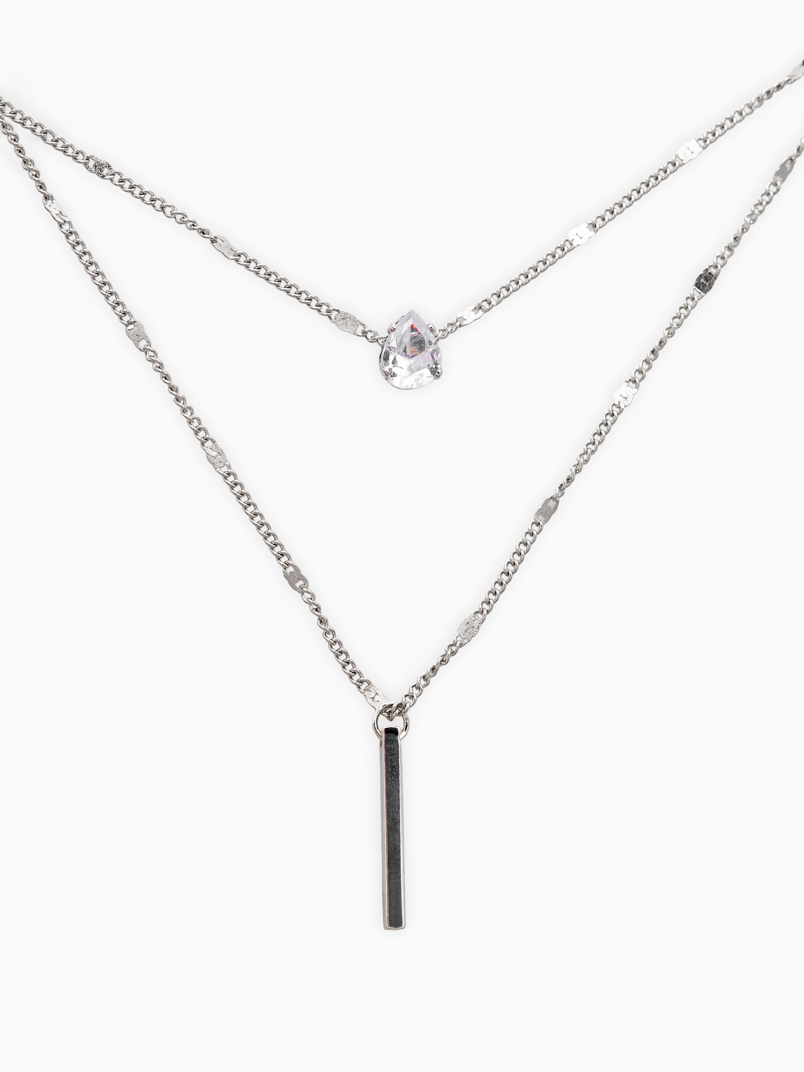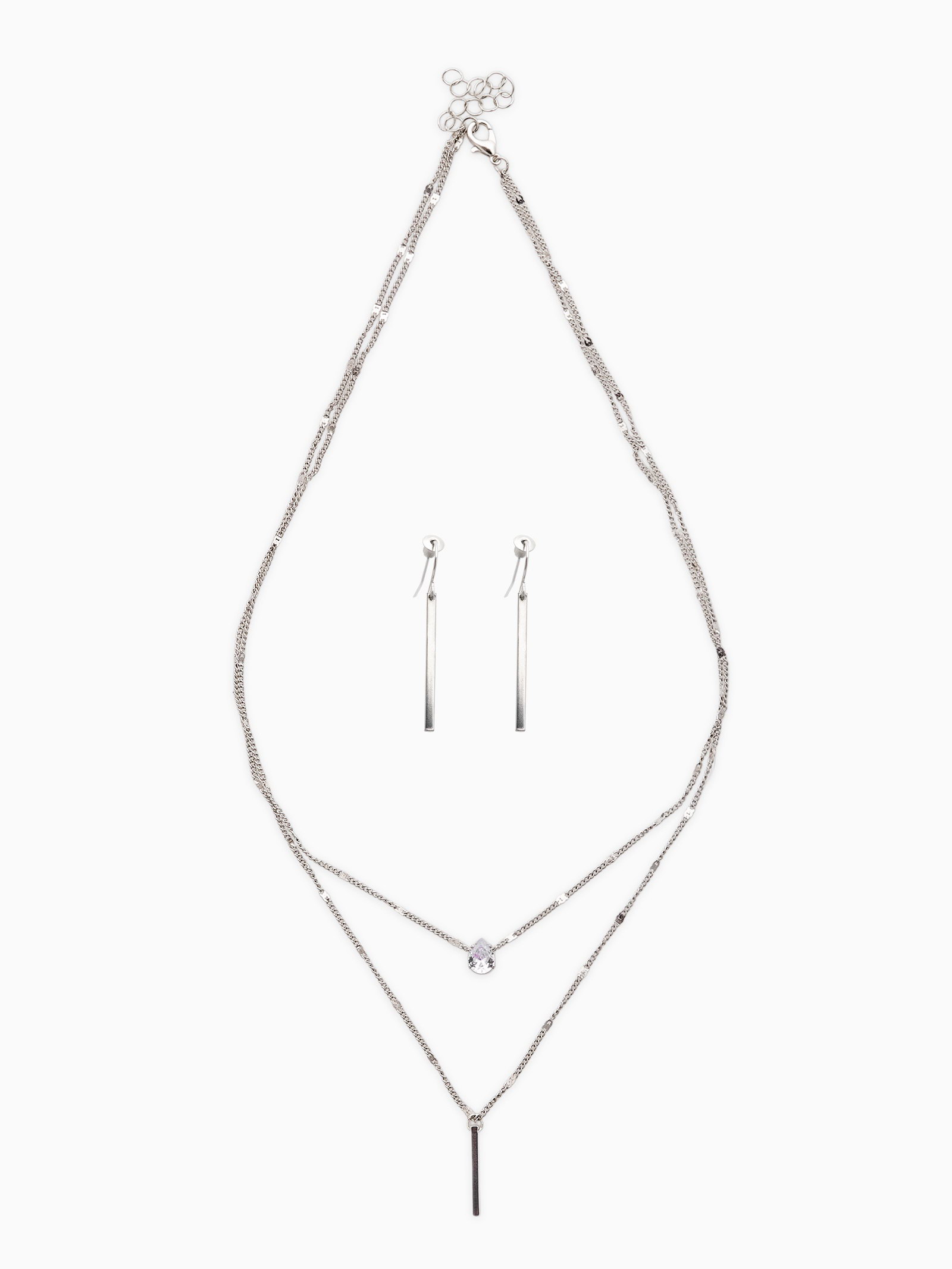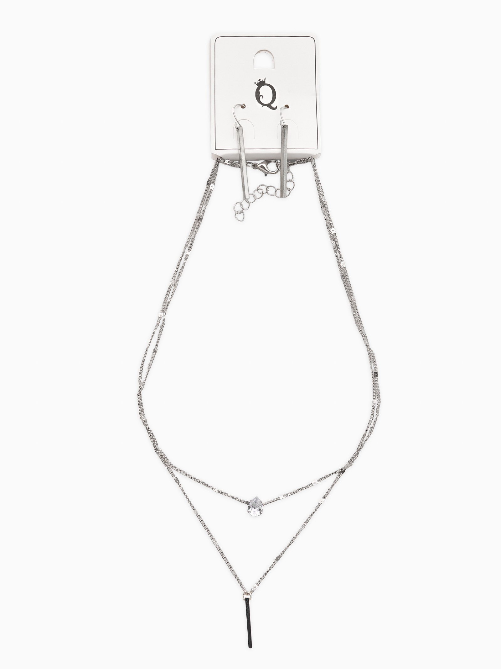 Набор 2 предмета: серьги, колье "Минимализм", 45 и 55 см, белый в серебре, 3x55x0.5 см., QF, Китай