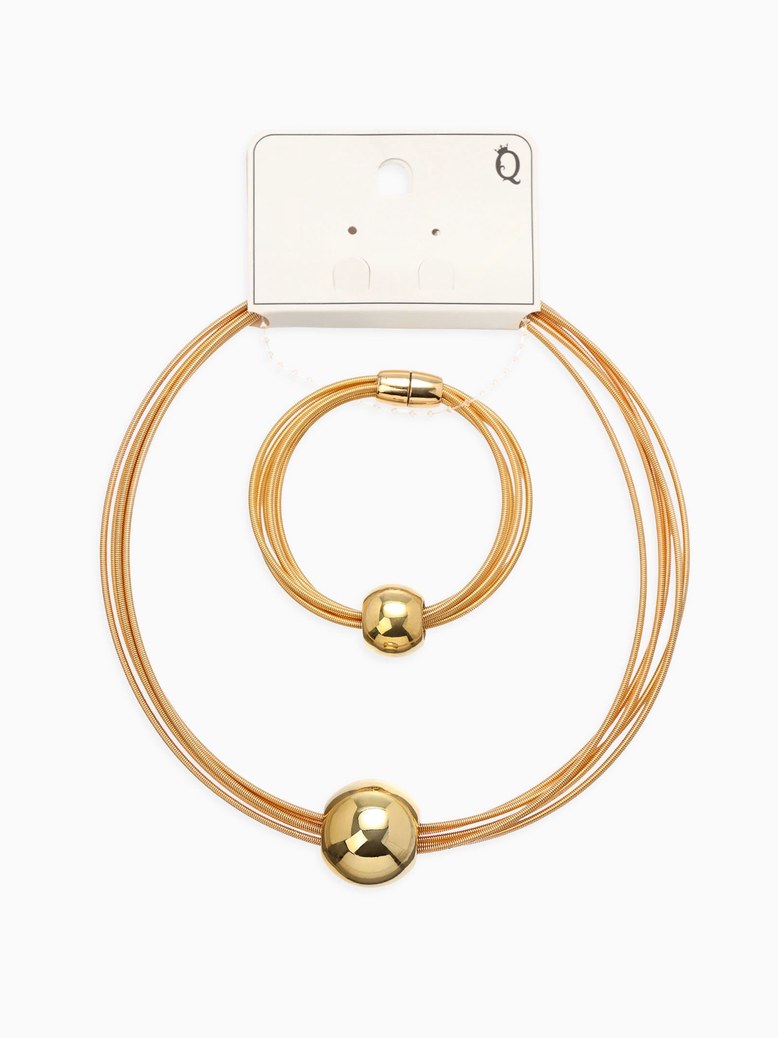 Набор 2 предмета: колье, браслет "Бусина на нитях", цвет золото, 6x13x2.5 см., QF, Китай