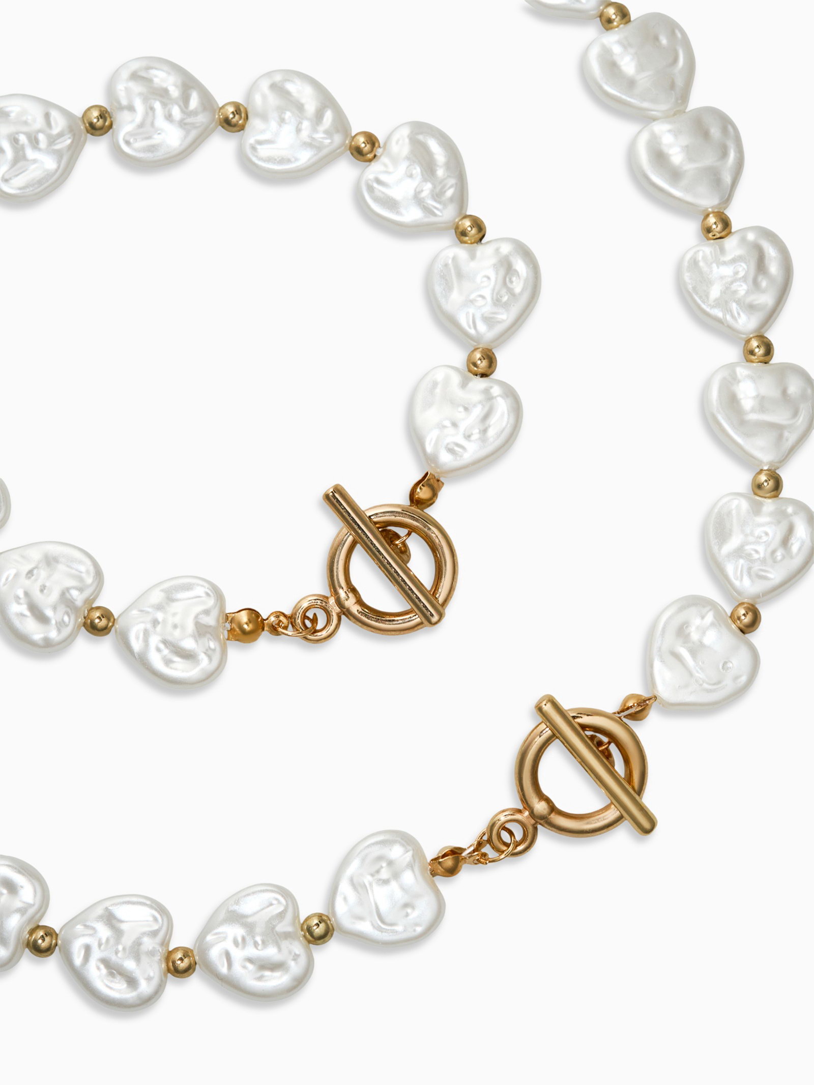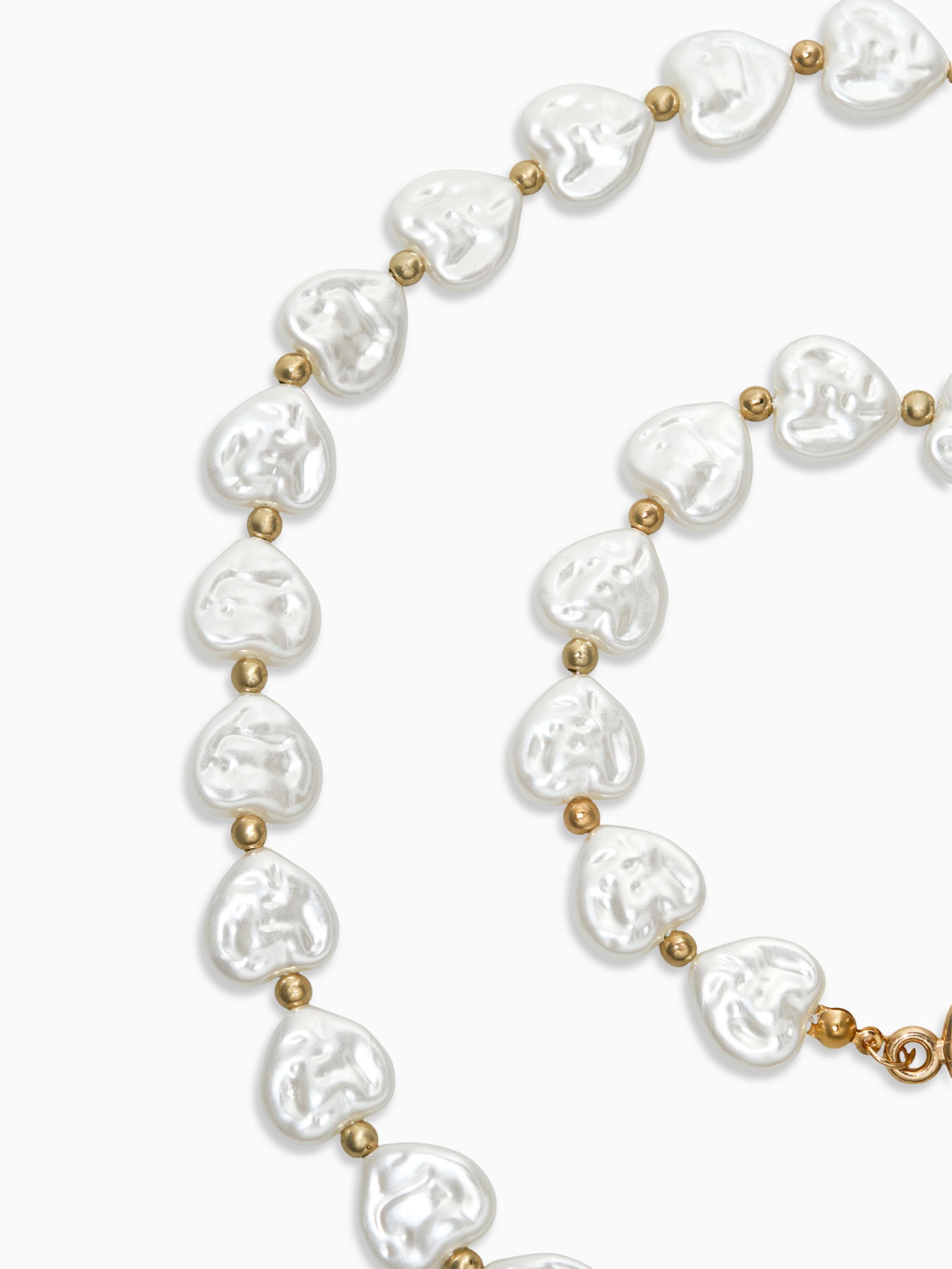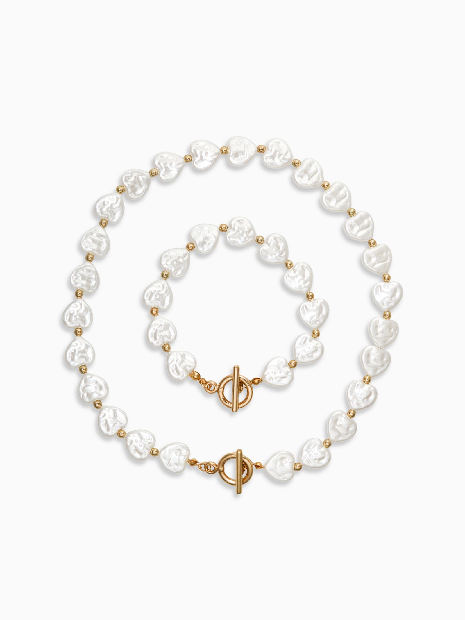 Набор 2 предмета: бусы, браслет "Жемчуг барочный", сердечки, 40/18 см, белый в золоте, 1x40x0.5 см., QF, Китай