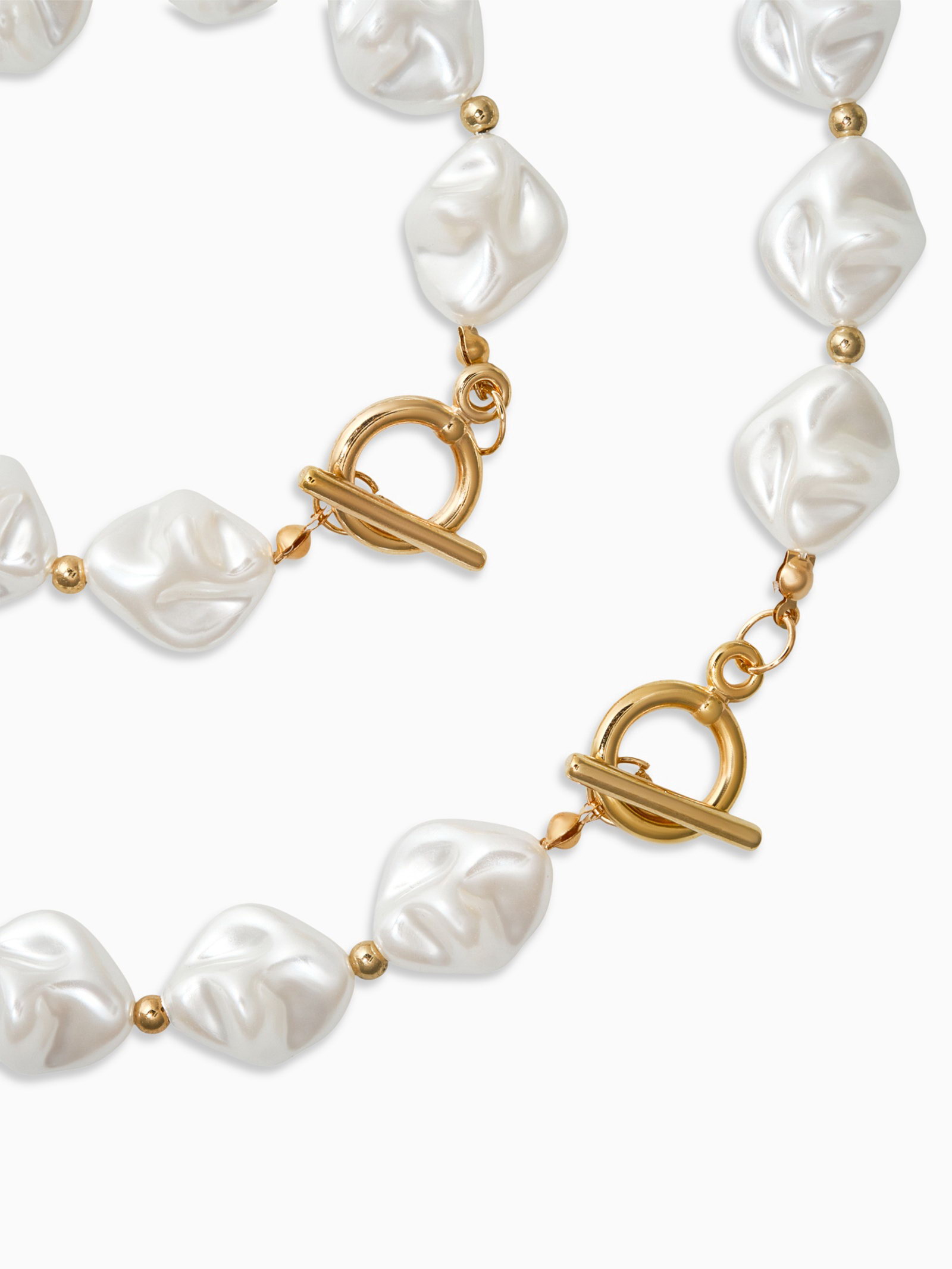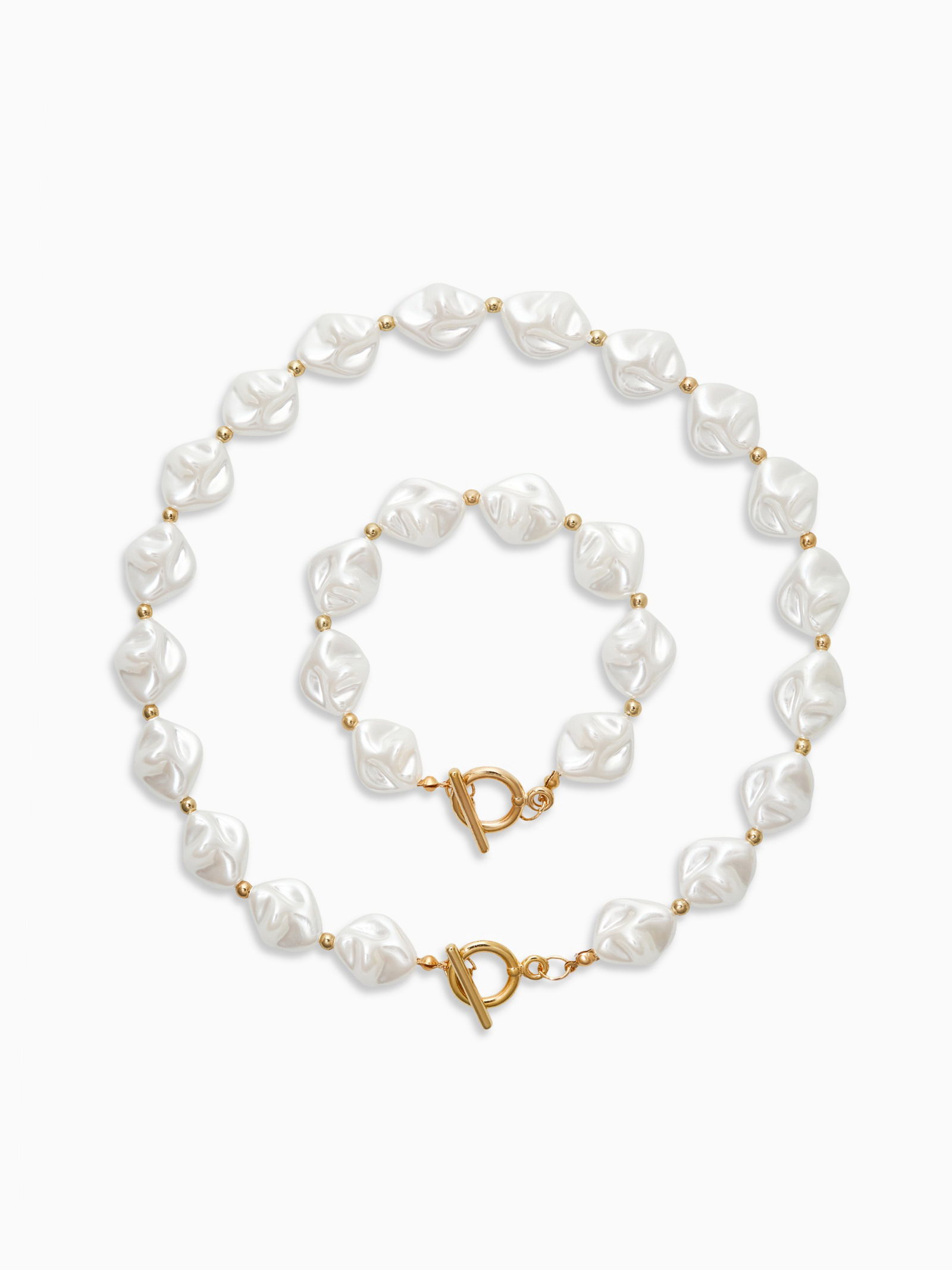 Набор 2 предмета: бусы, браслет "Жемчуг барочный", ромб, 40/18 см, белый в золоте, 1x40x0.5 см., QF, Китай