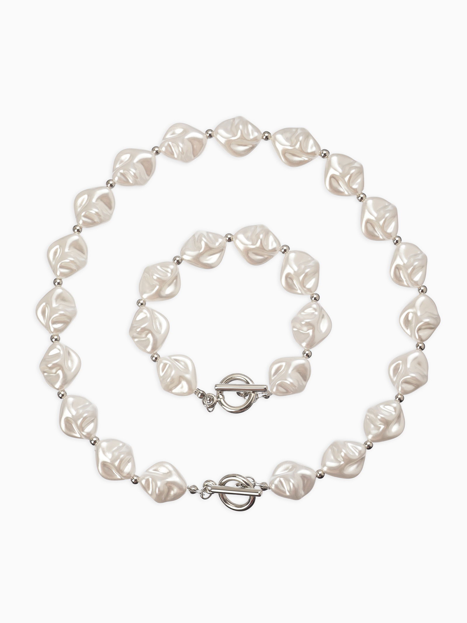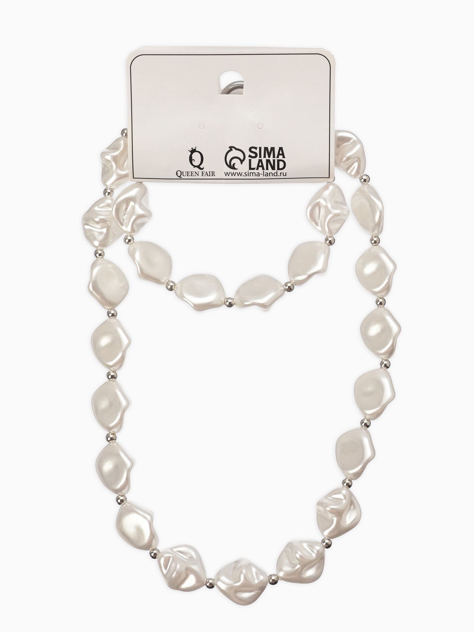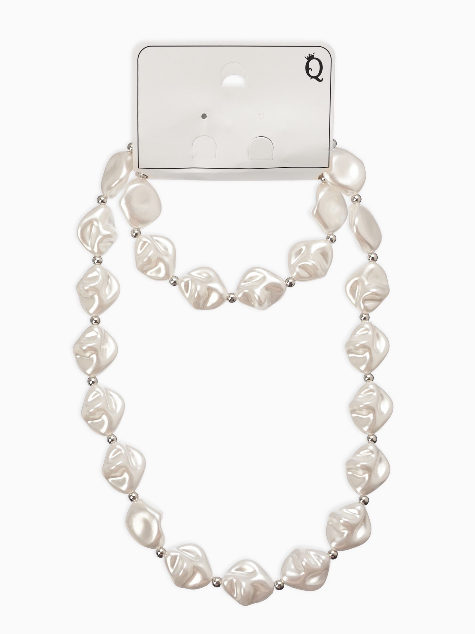 Набор 2 пред-та: бусы,браслет "Жемчуг барочный", ромб. 40/18см, цвет белый в серебре, 1x40x0.5 см., QF, Китай