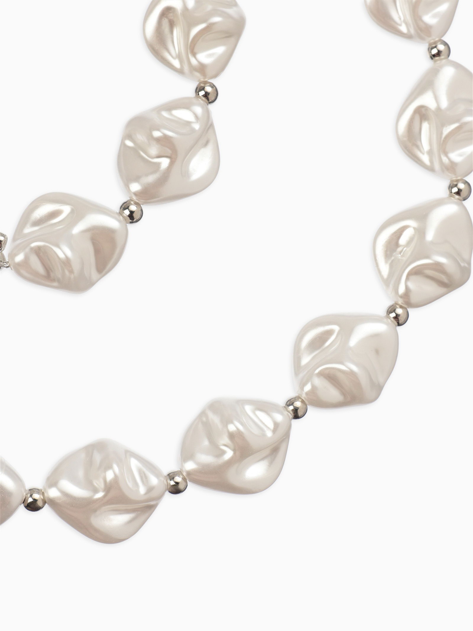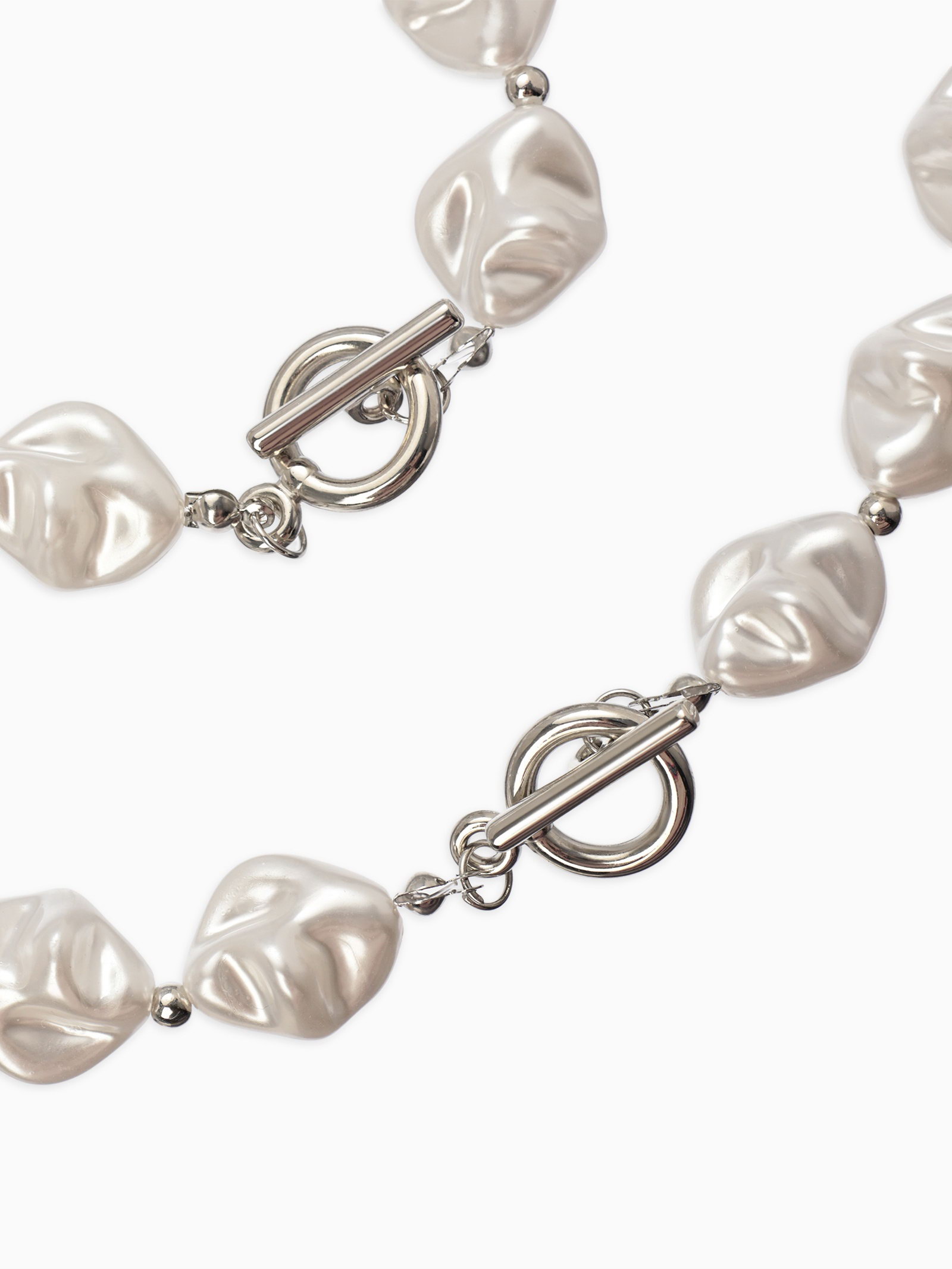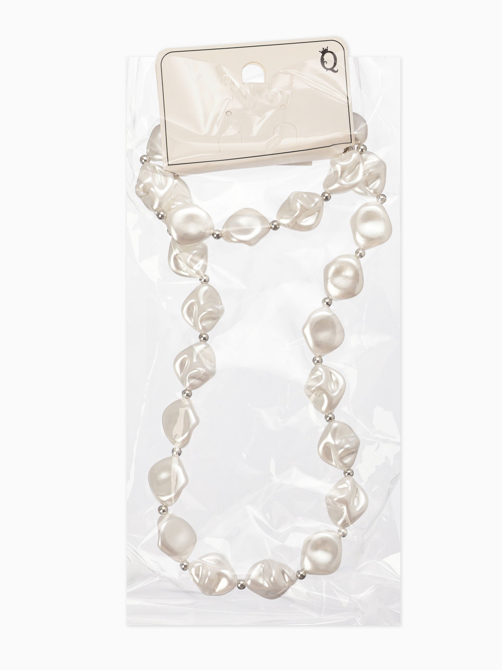 Набор 2 пред-та: бусы,браслет "Жемчуг барочный", ромб. 40/18см, цвет белый в серебре, 1x40x0.5 см., QF, Китай