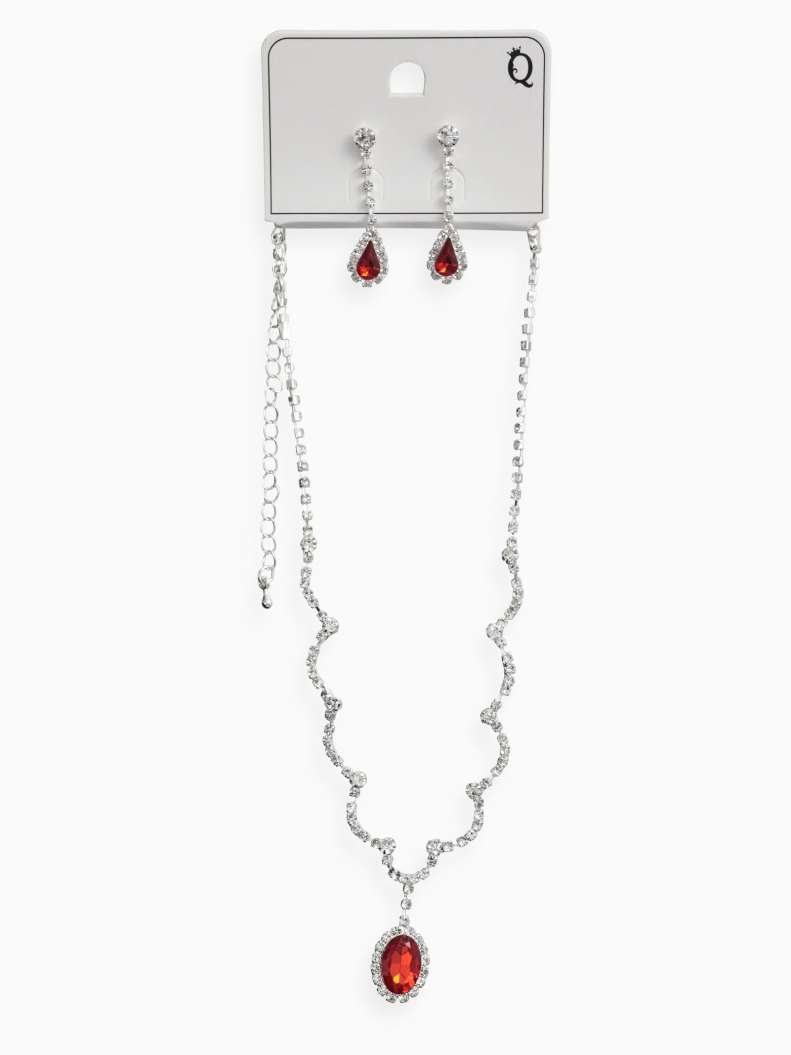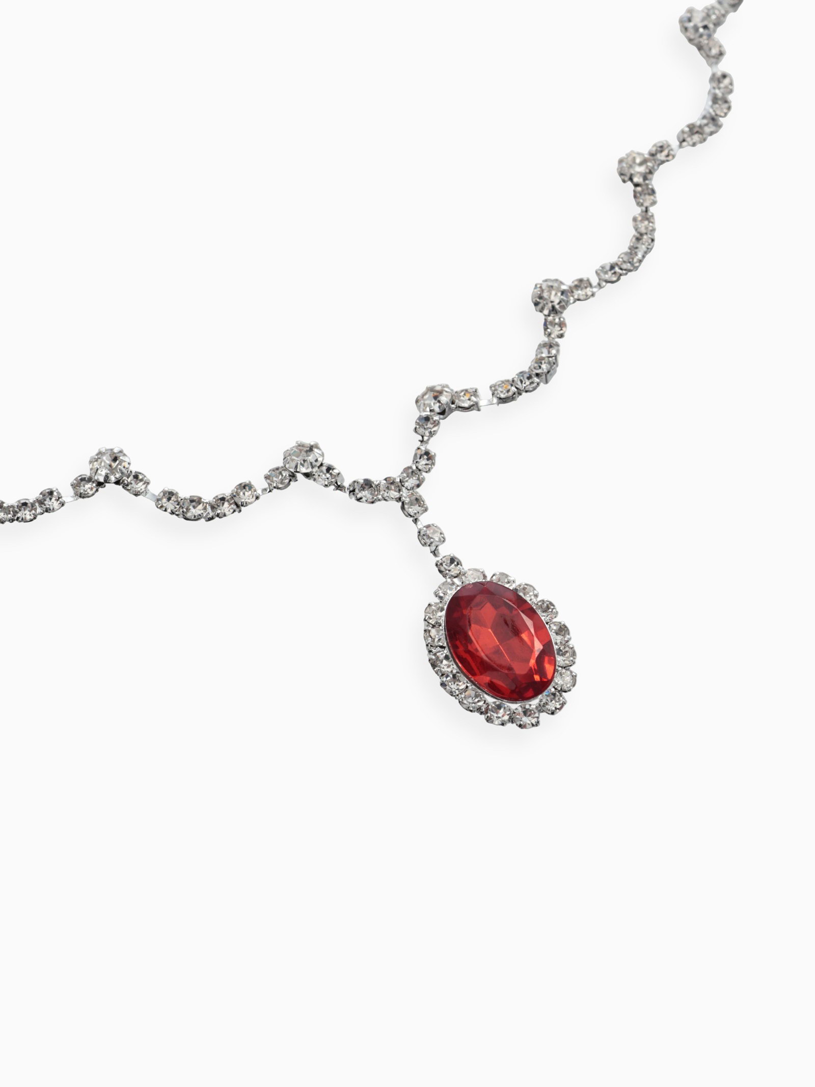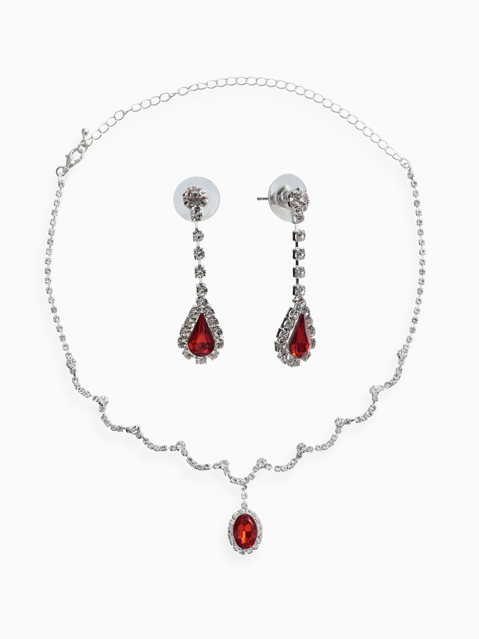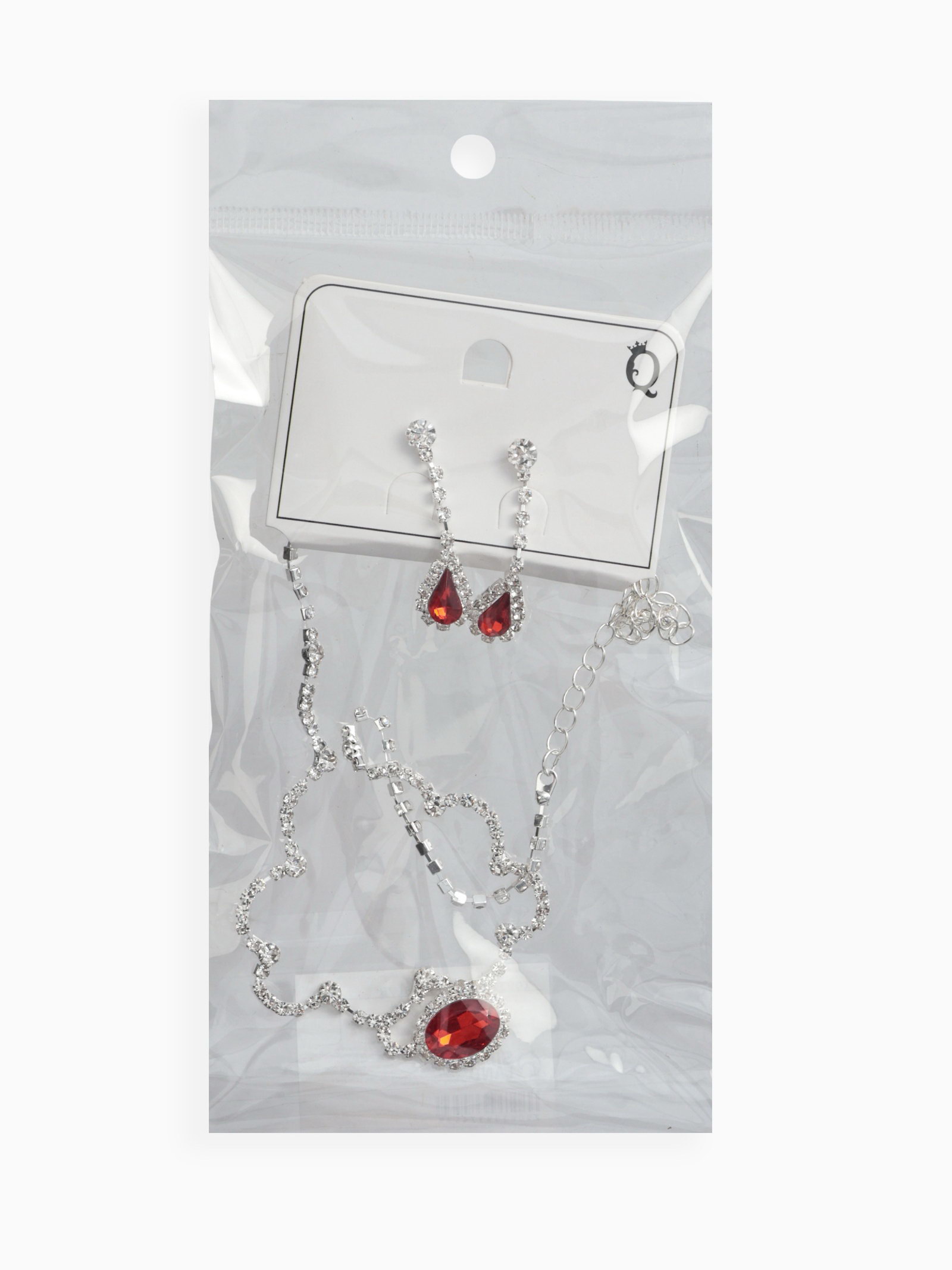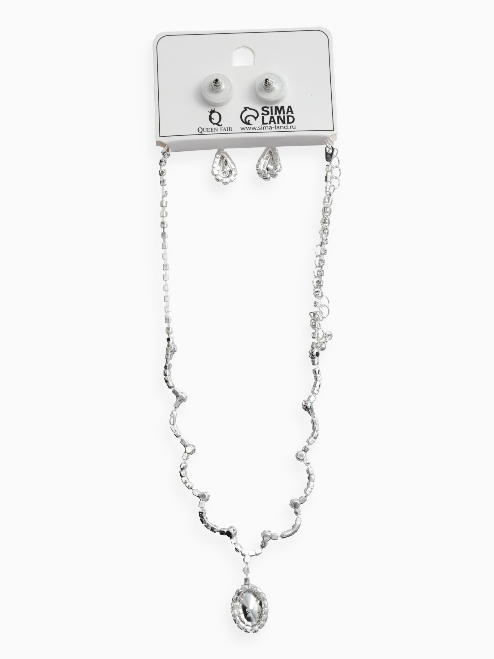 Набор 2 предмета: серьги, колье "Вечерний шик. Капля", бело-красный в серебре, 4x45x1.5 см., QF, Китай