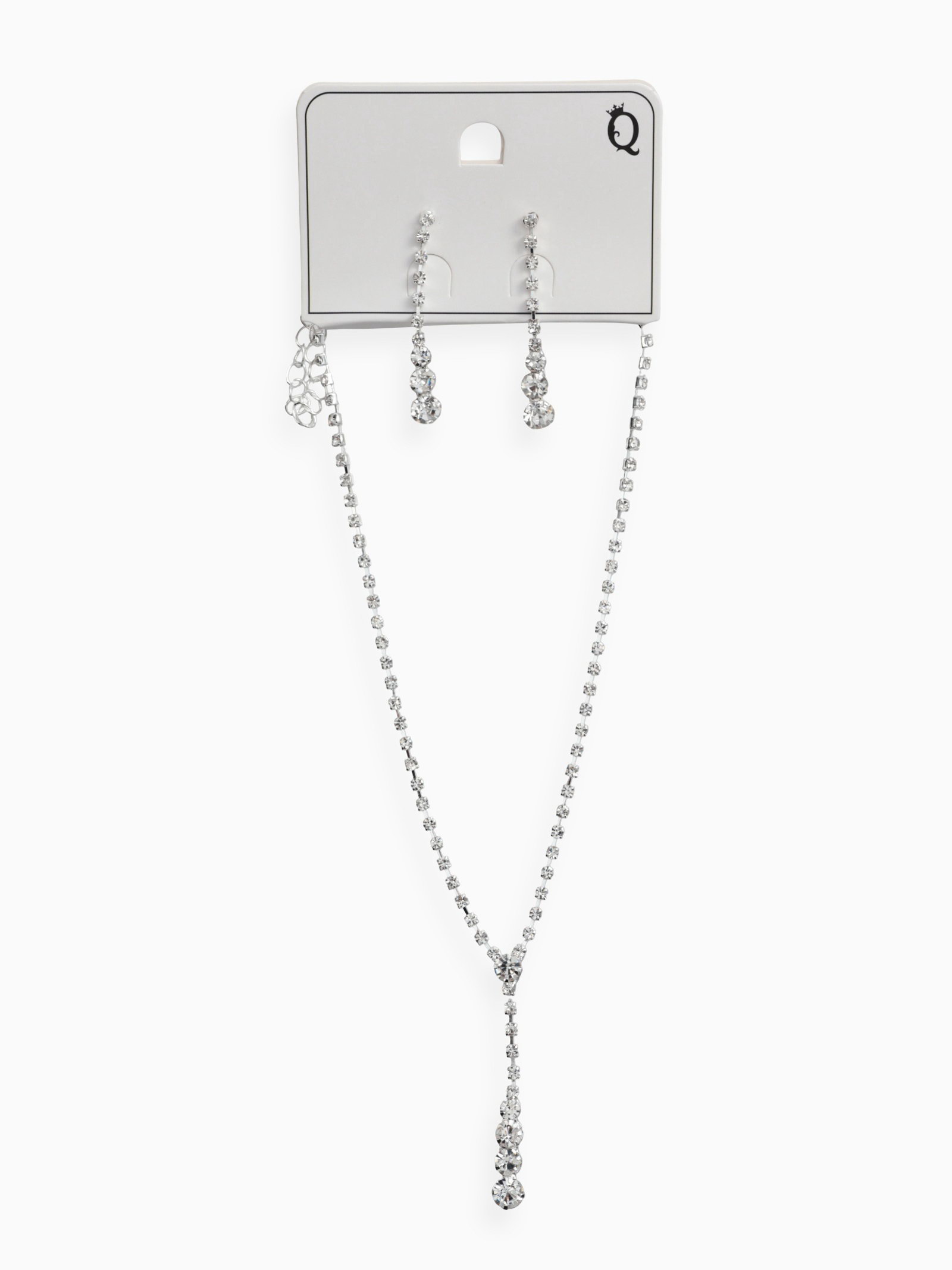 Набор 2 предмета: серьги, колье "Вечерний шик" белый в серебре, 5x45x0.5 см., QF, Китай