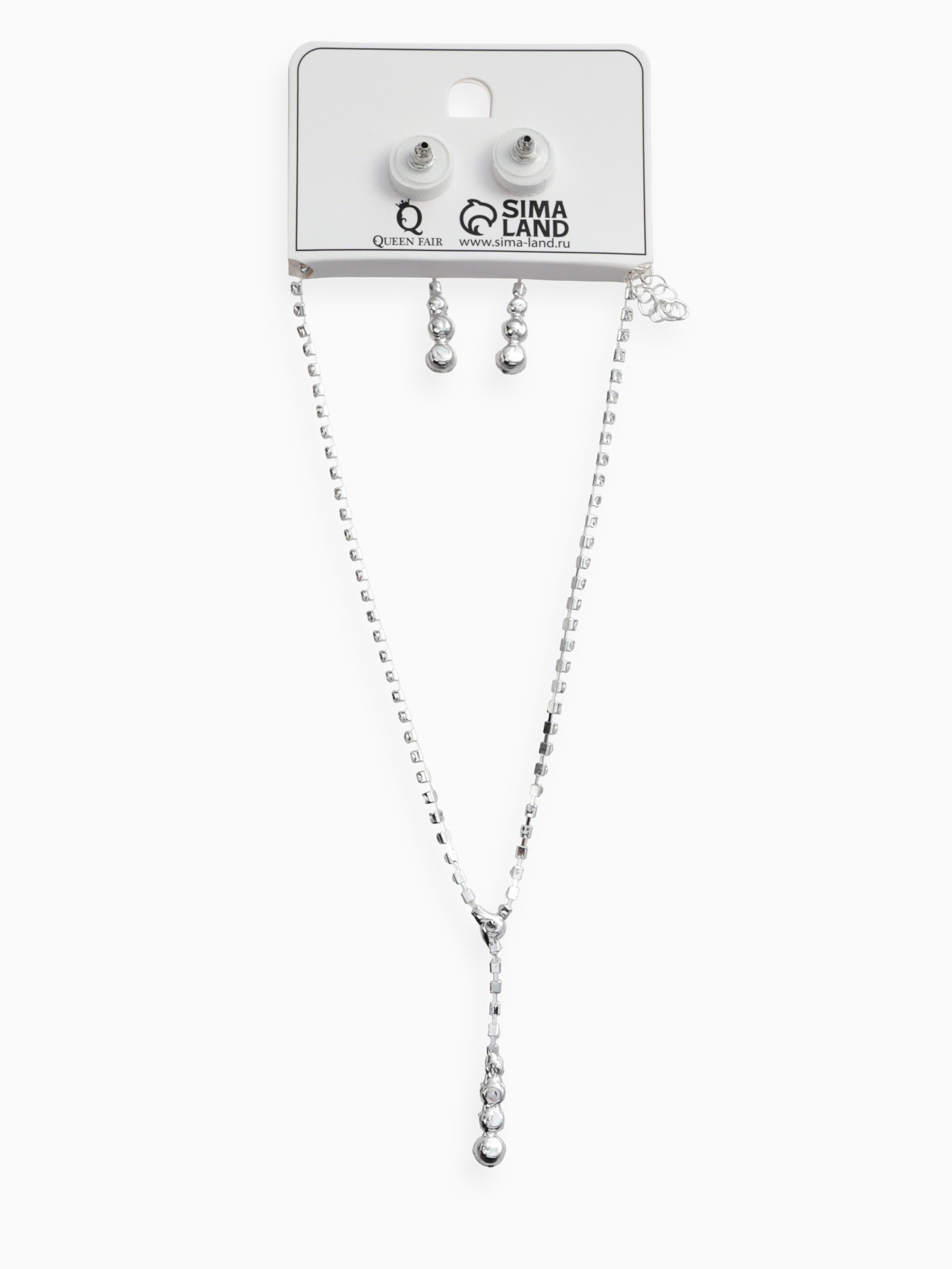 Размер упаковки: 4 x 2 x 7.5 см. tnved: 7117900000 Цвет фурнитуры: Серебряный Вставка/Подвеска: Стразы Состав набора: Серьги + Колье Цвет: Белый Тематика: Кристаллы Для кого: Для женщины В наборе, шт.: 2 Ваш новый любимый компаньон для стильных выходов и важных встреч. Представляем комплект украшений, состоящий из элегантных серёг и потрясающего колье, созданных для дам, знающих толк в настоящем искусстве выглядеть неотразимо. Что входит в комплект: