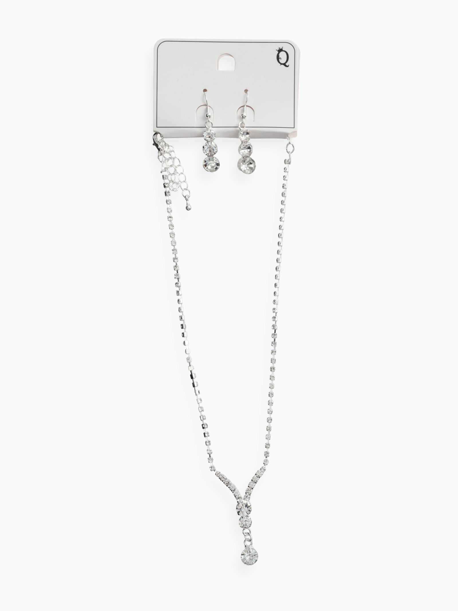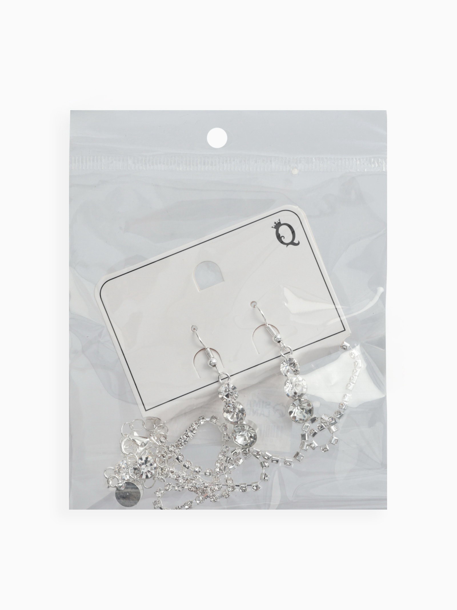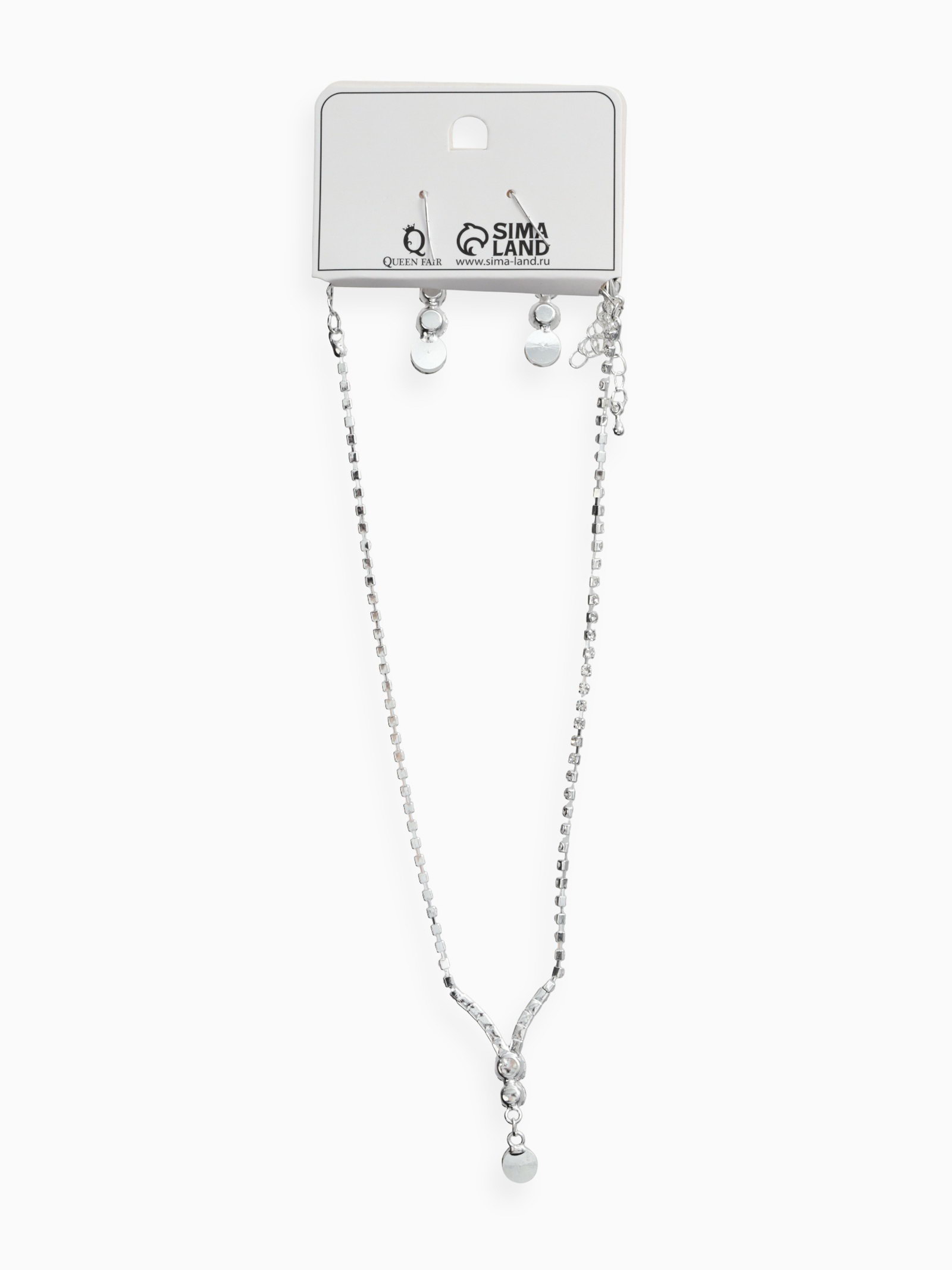 Набор 2 предмета: серьги, колье "Вечерний шик", белый в серебре, 4x45x0.9 см., QF, Китай