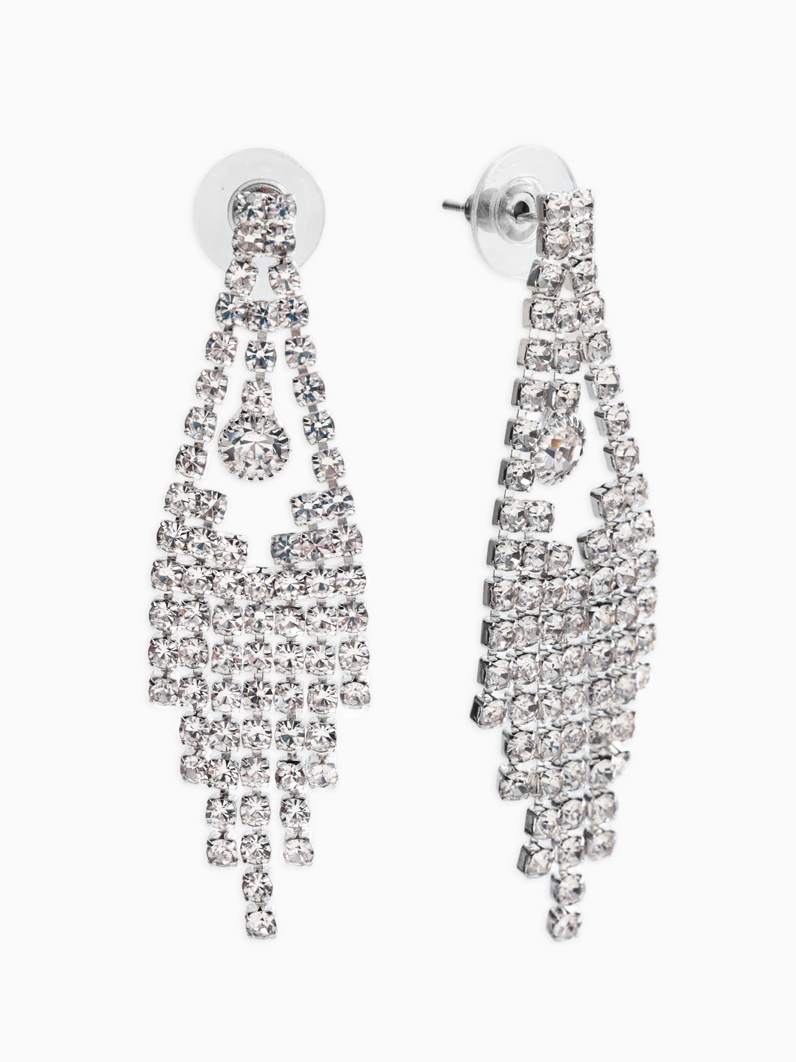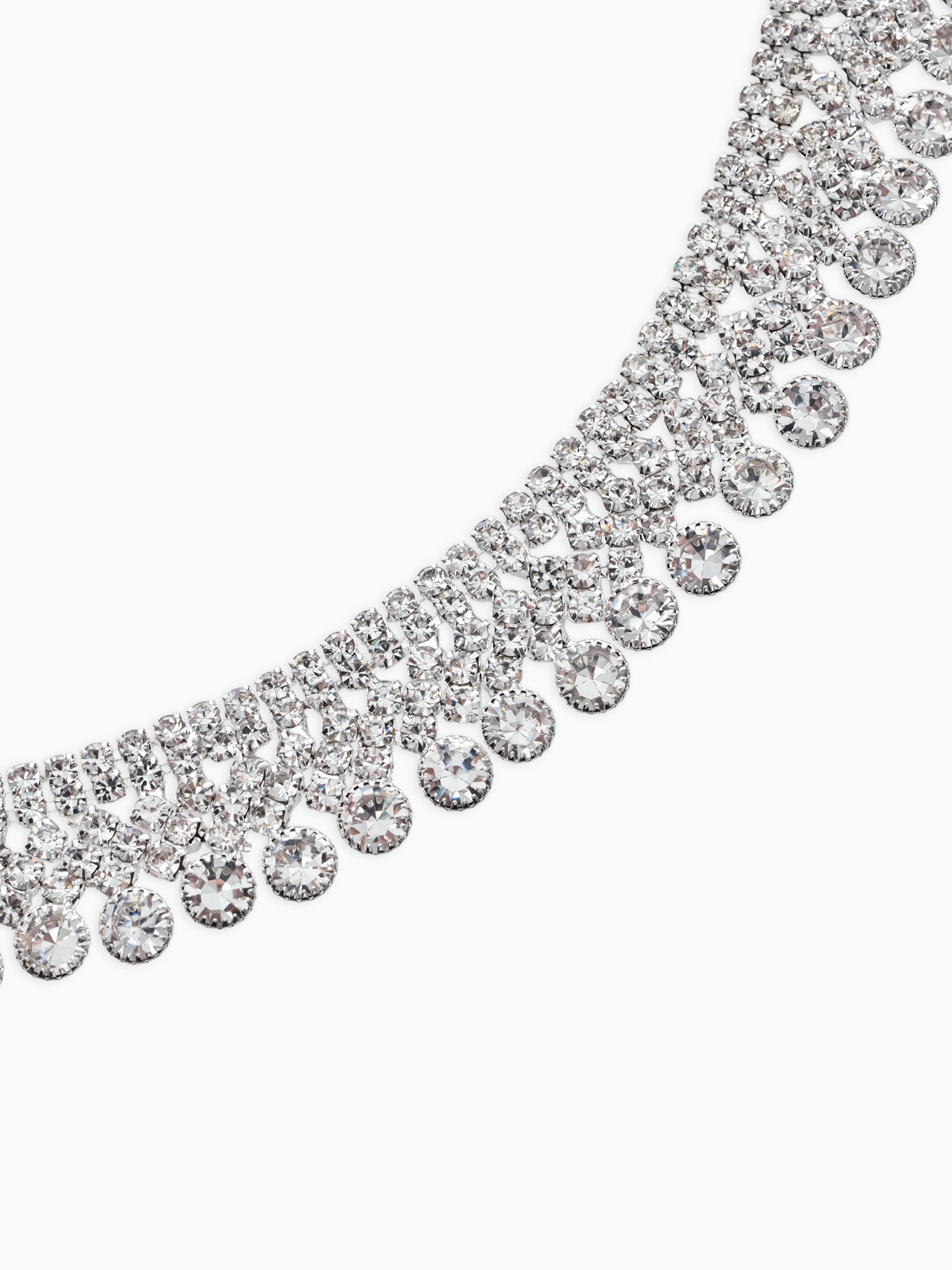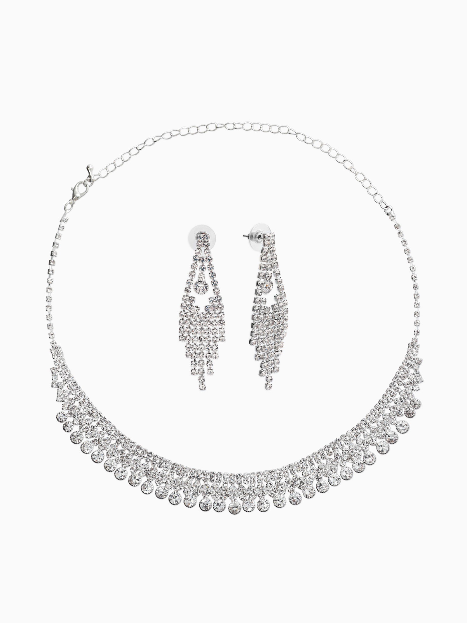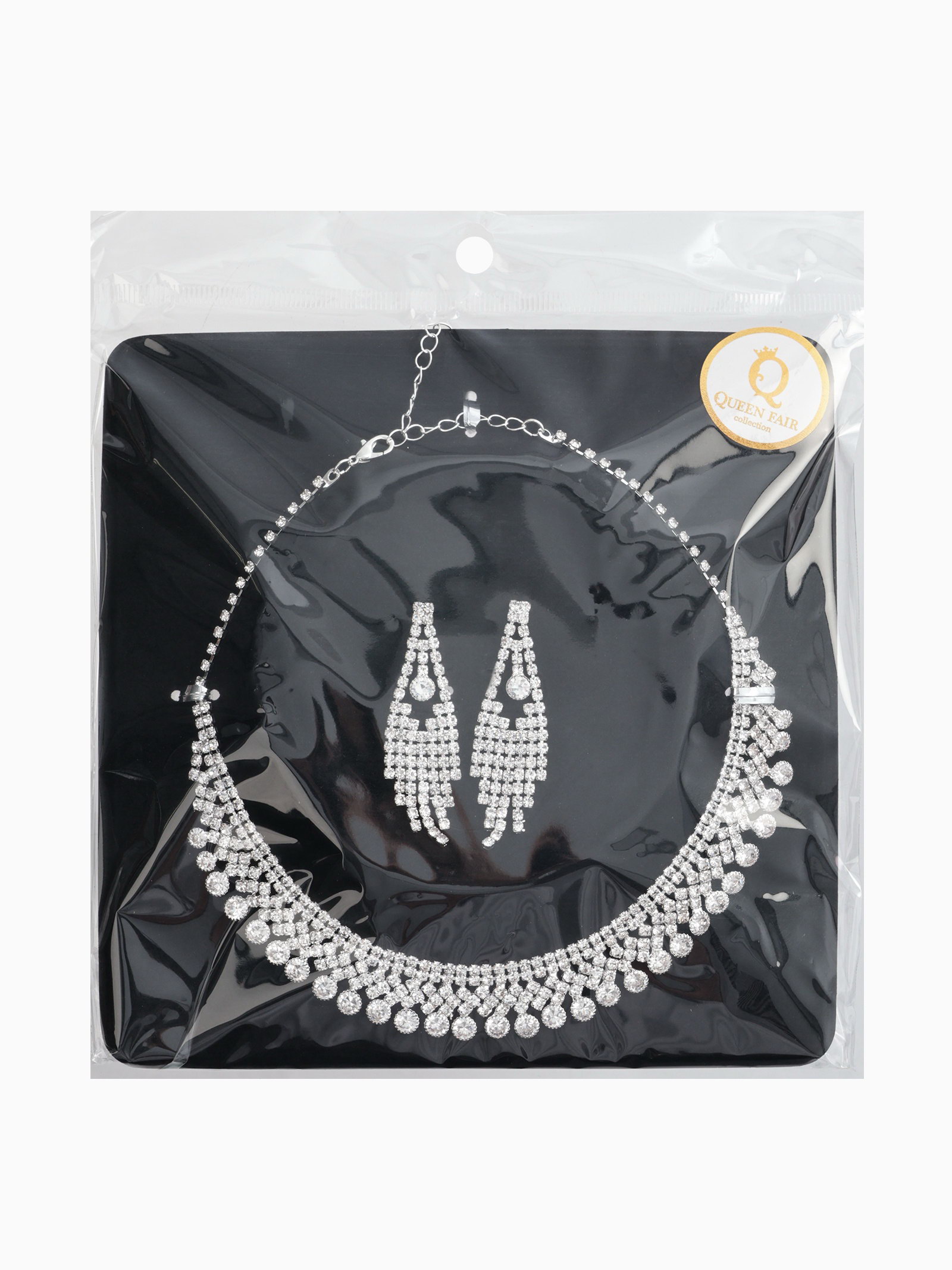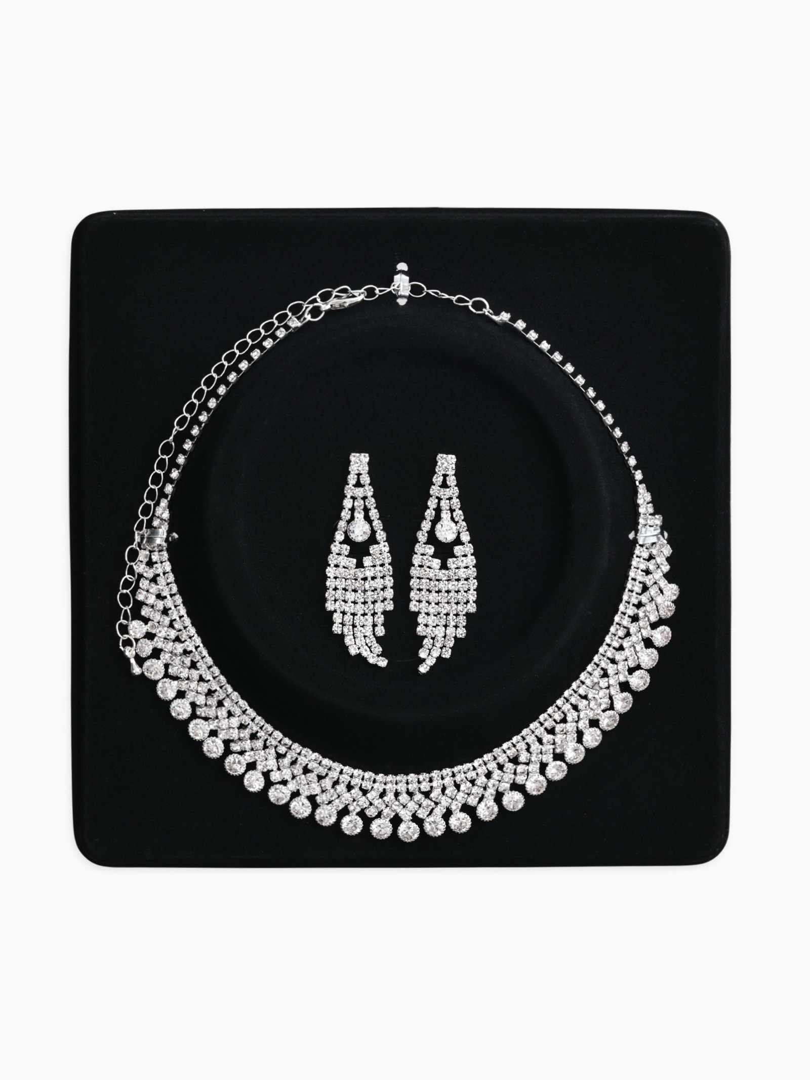 Набор 2 предмета: серьги, колье со стразами "Лёд", d=13.5 см, белый в серебре, 6x13.5x2 см., QF, Китай