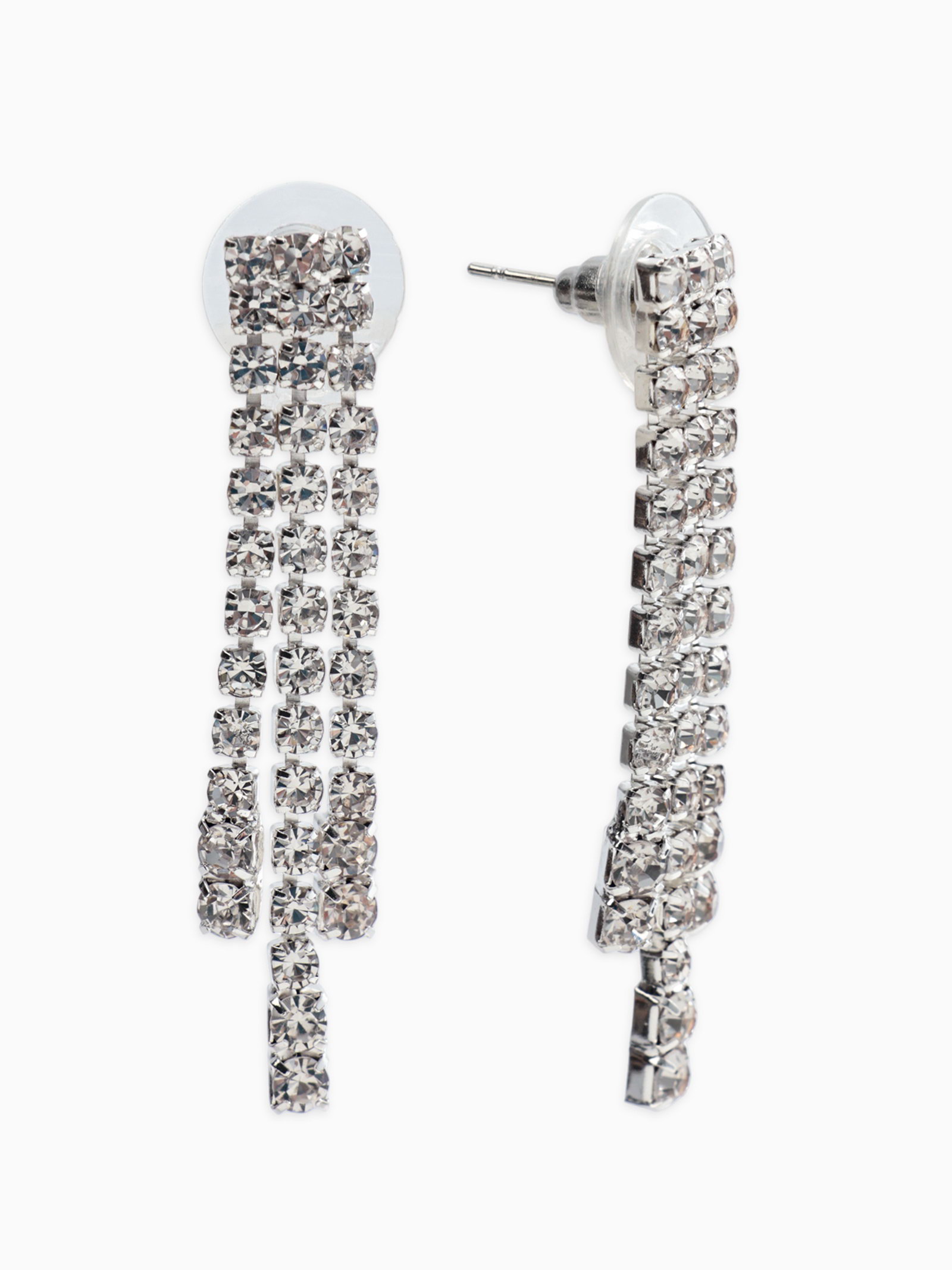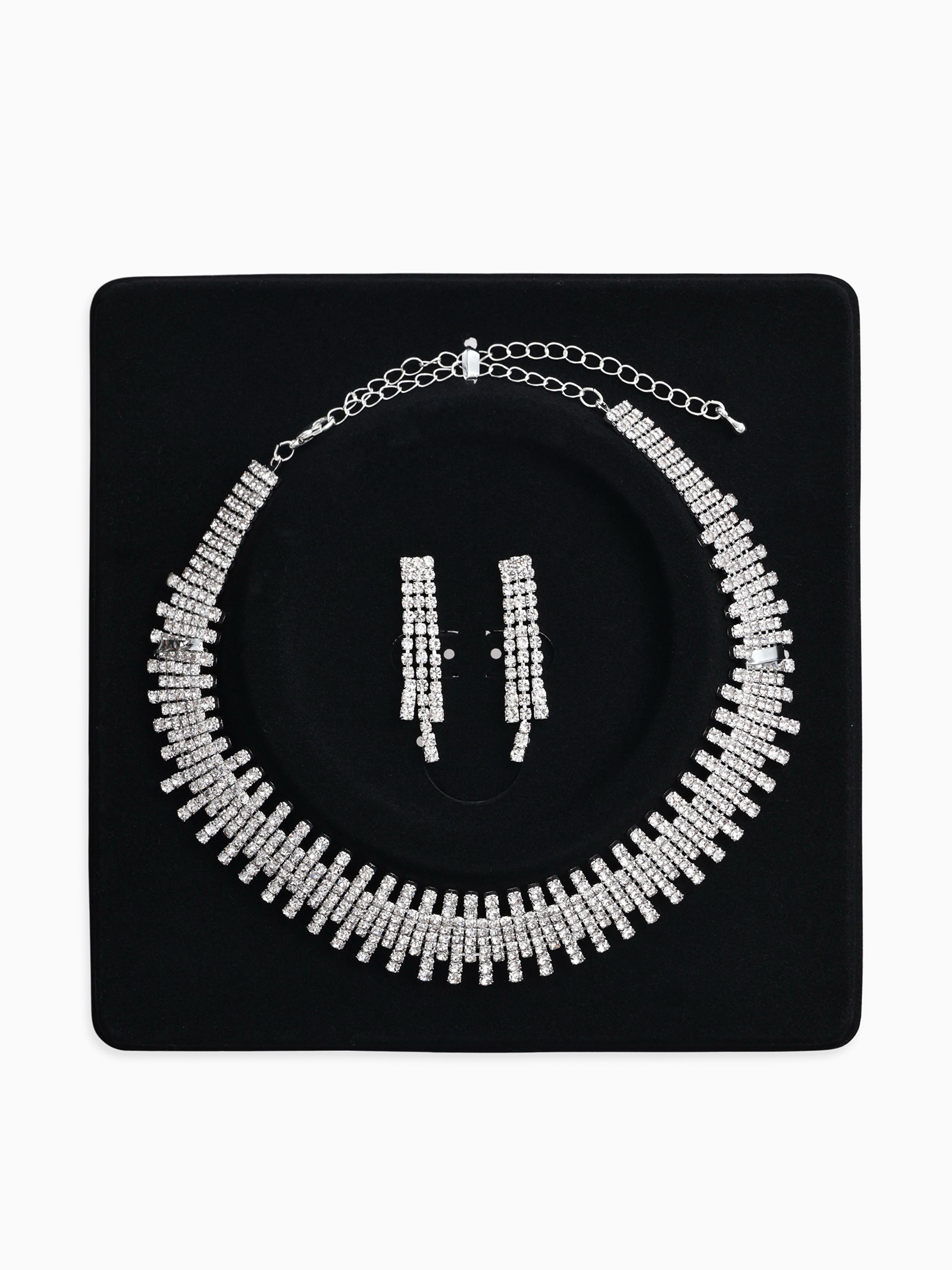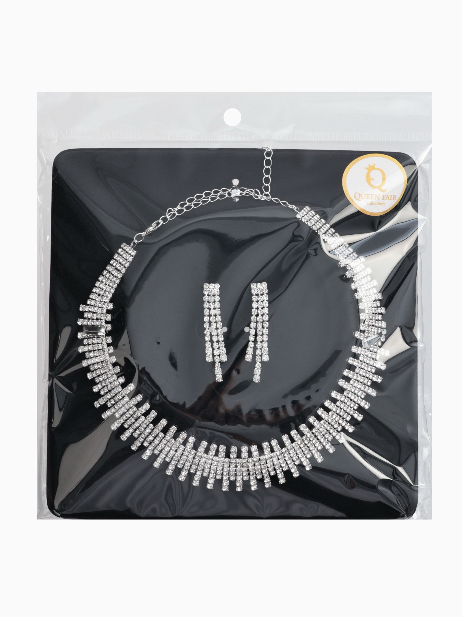 Набор 2 предмета: серьги, колье со стразами "Лёд. Клавиши", d=13.5 см, белый в серебре, 4.5x13.5x3 см., QF, Китай