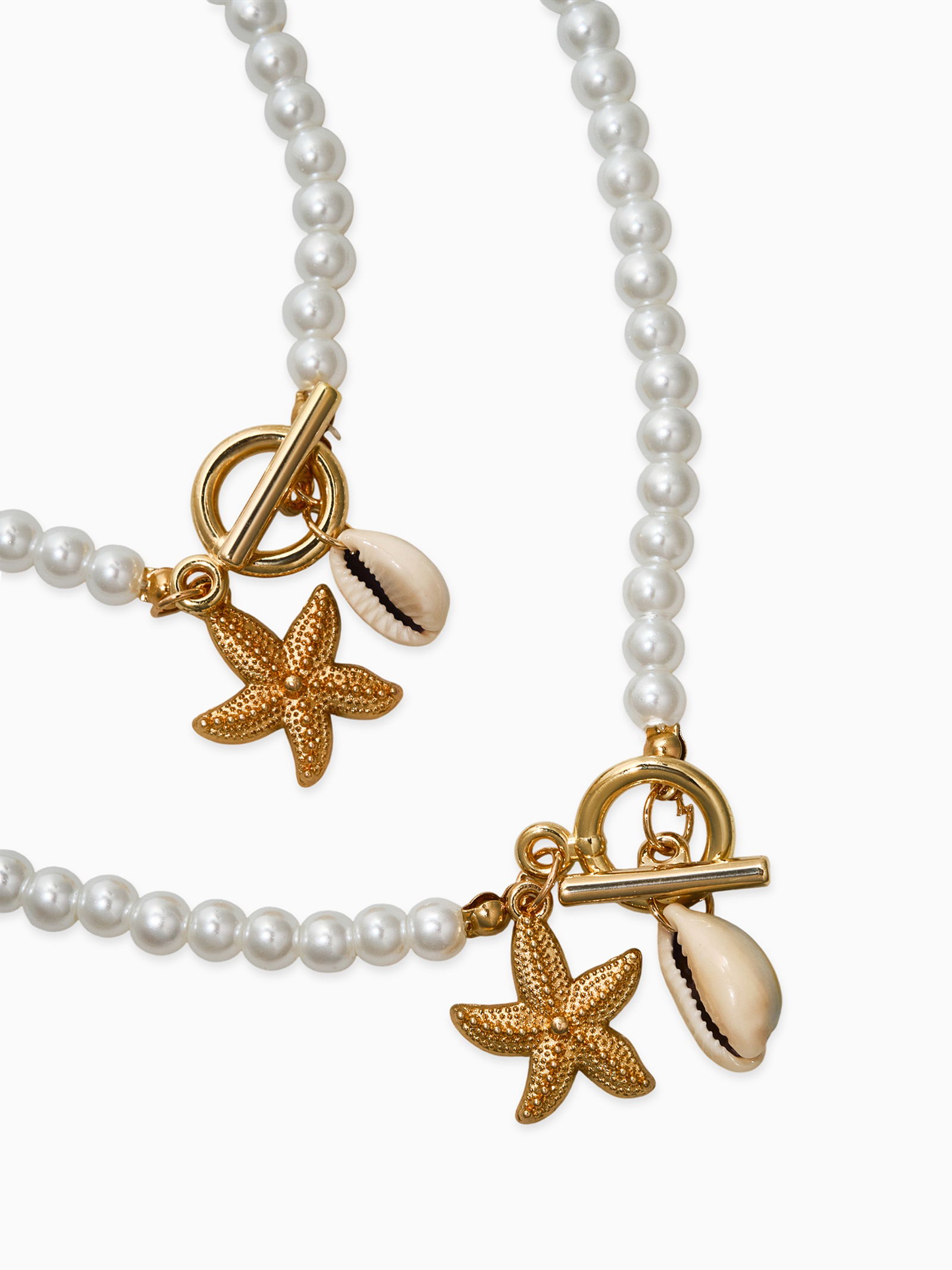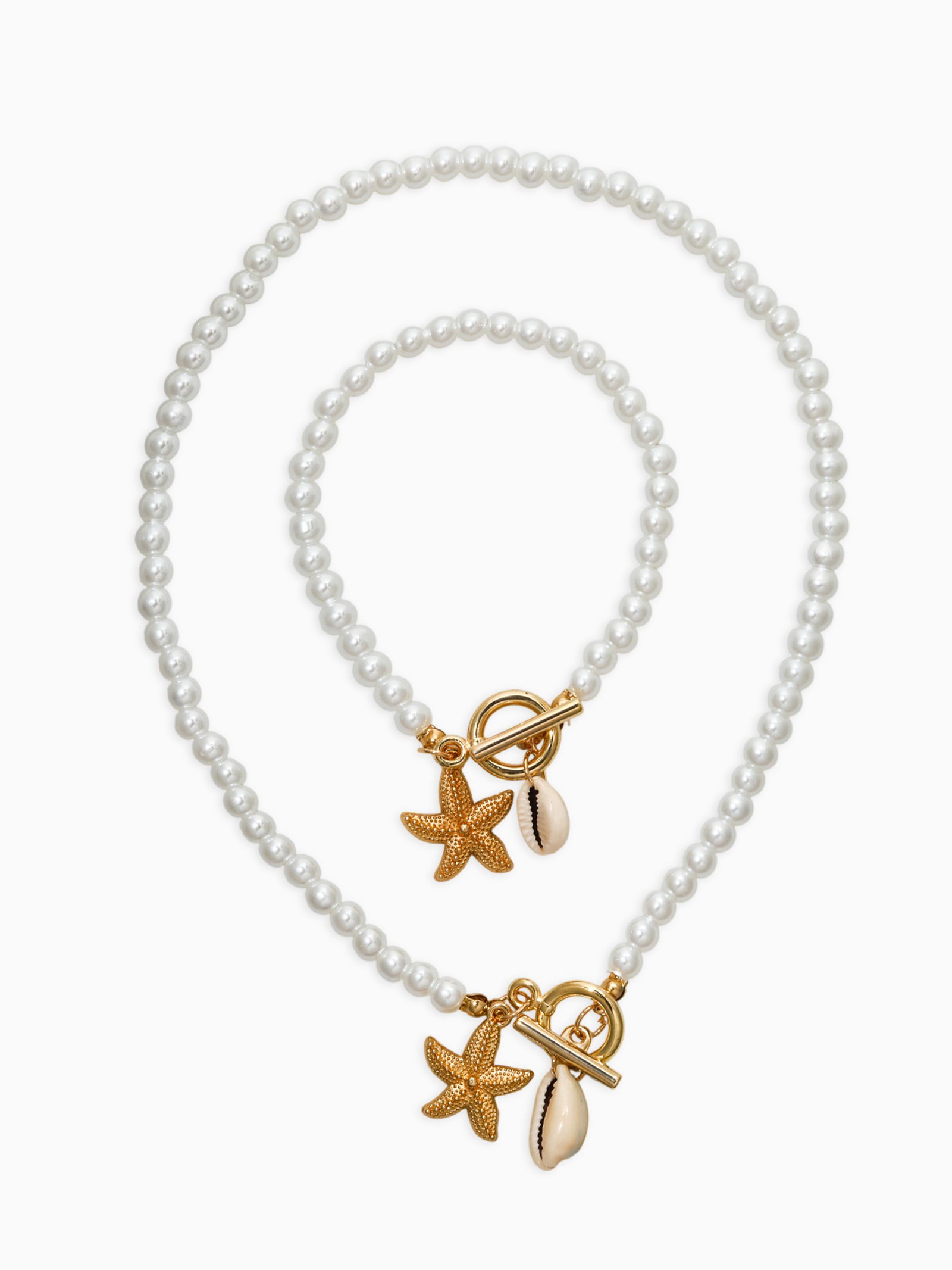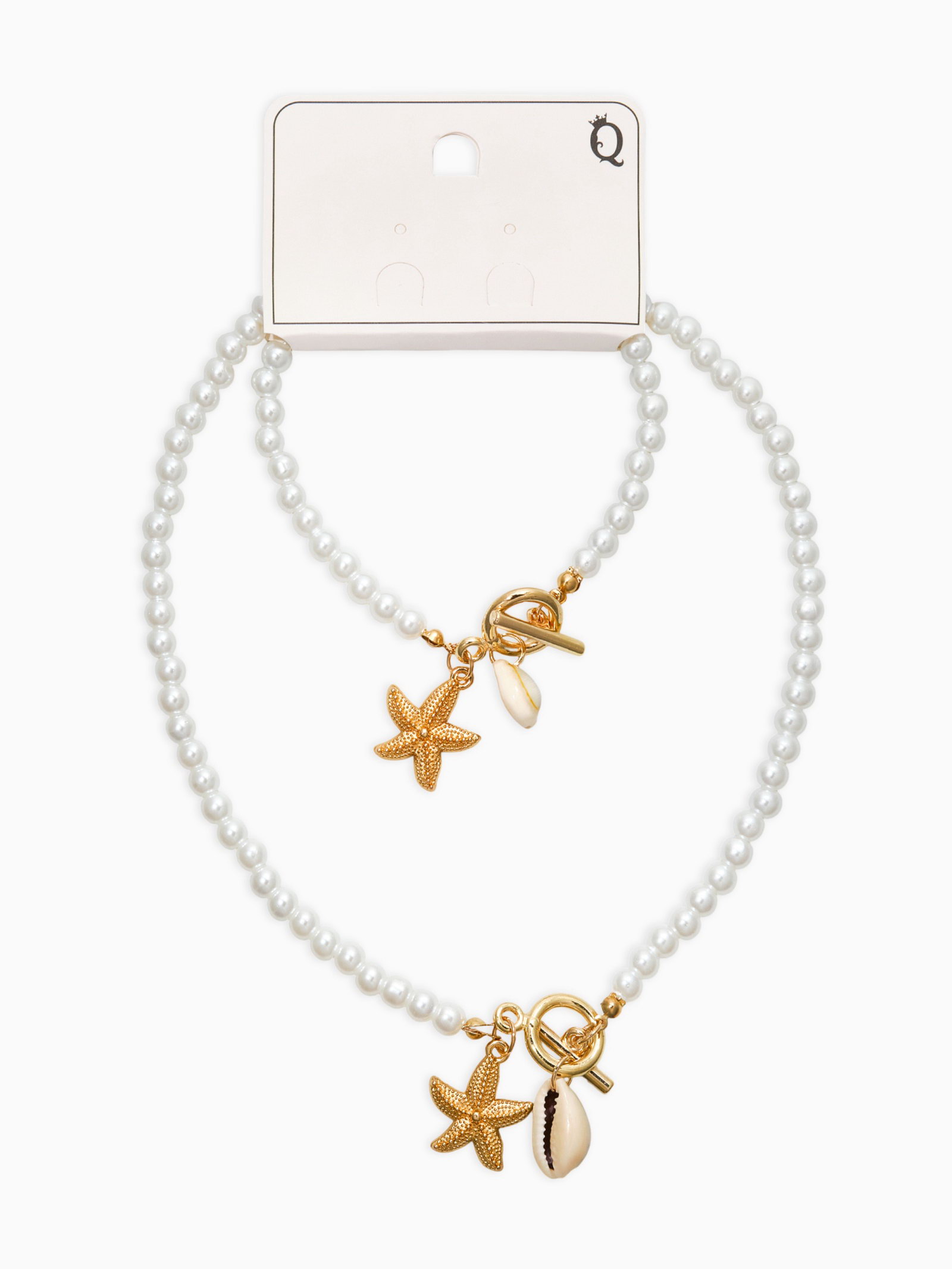 Набор 2 предмета: бусы. браслет "Жемчуг. Звезда", L=18/42 см, №6, белый в золоте, 3x20x2.5 см., QF, Китай