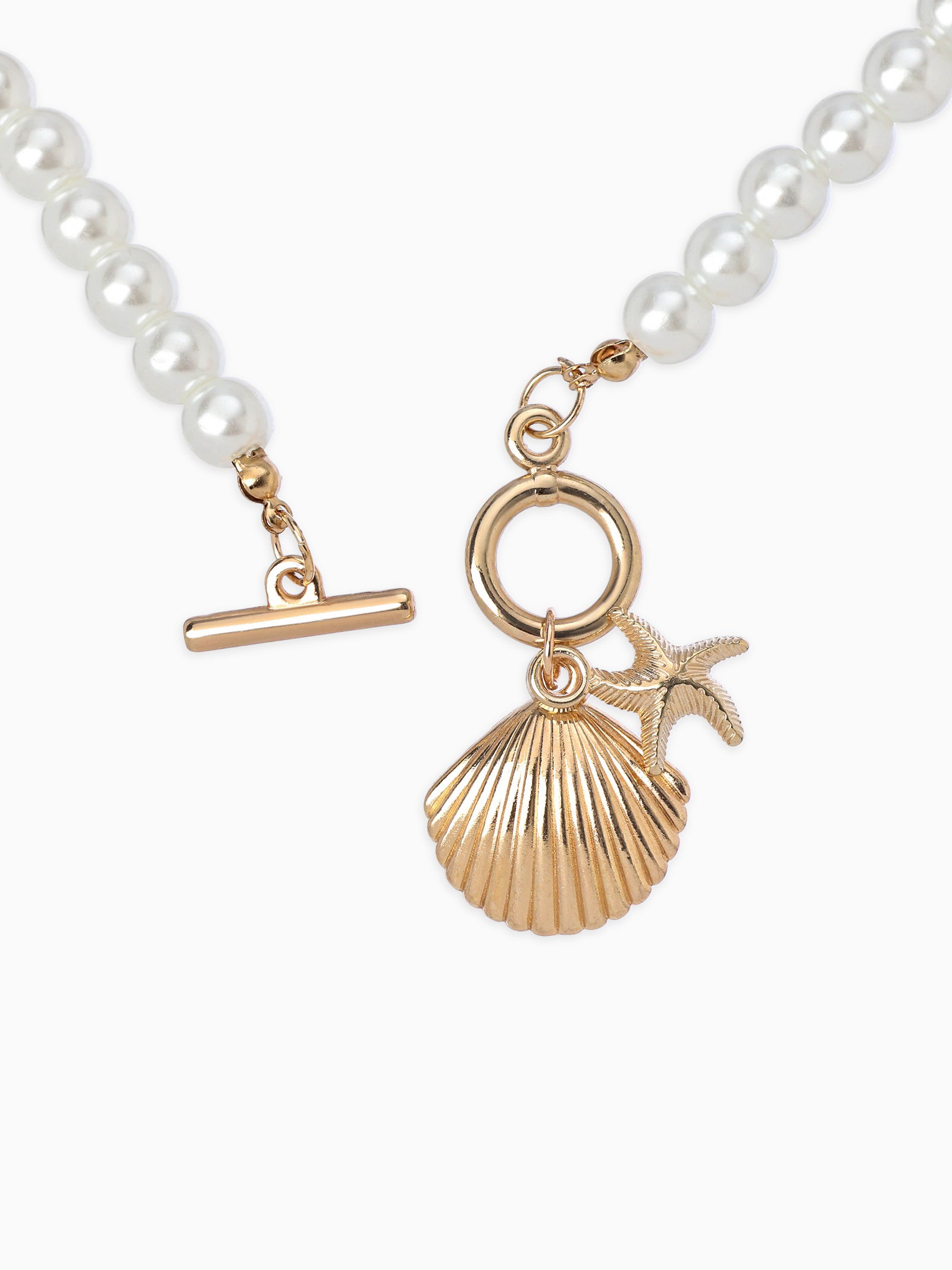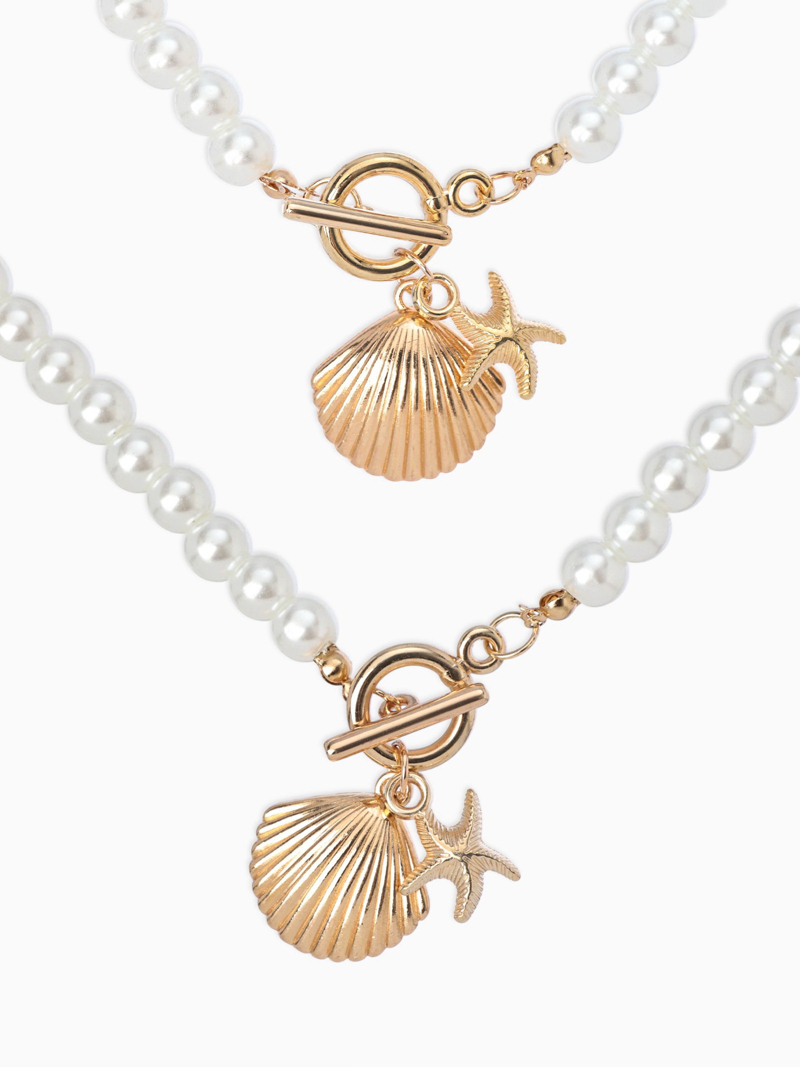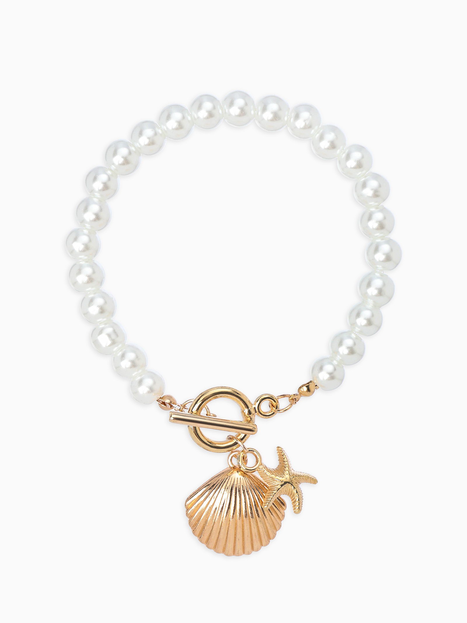 Набор 2 предмета: бусы. браслет "Жемчуг. Ракушка вонголе", L=18/42 см, №8, белый в золоте, 3x20x2.5 см., QF, Китай