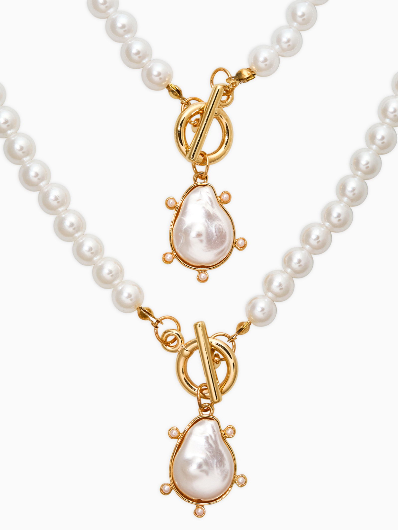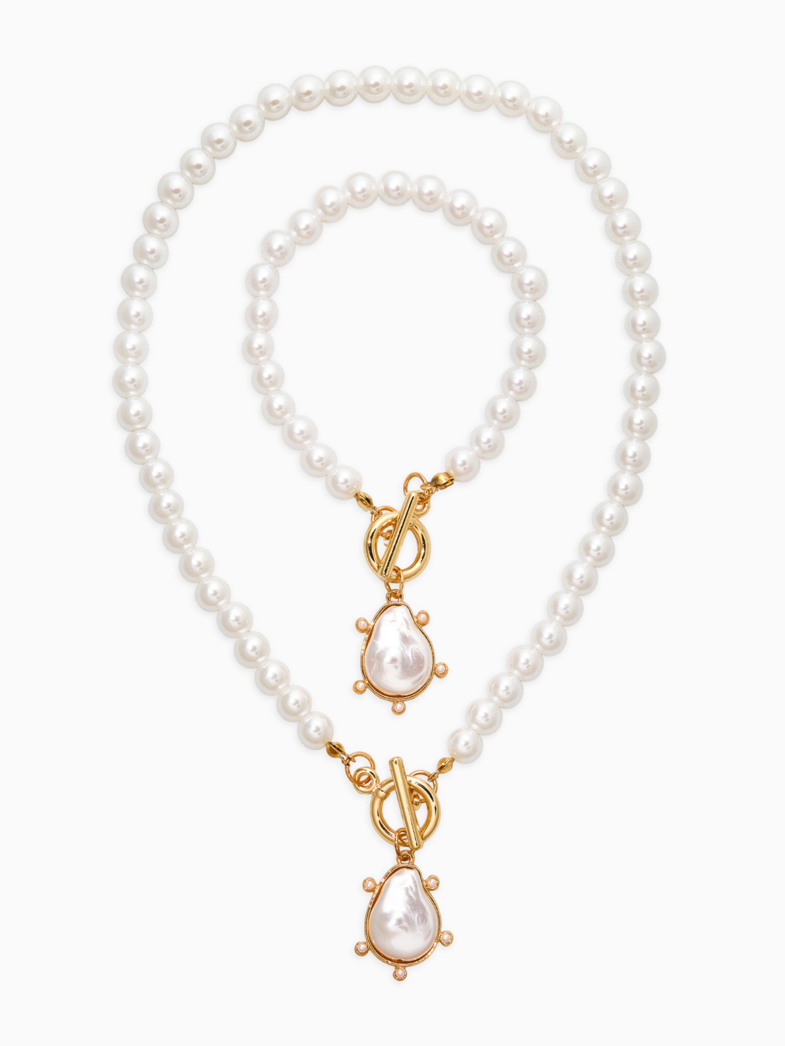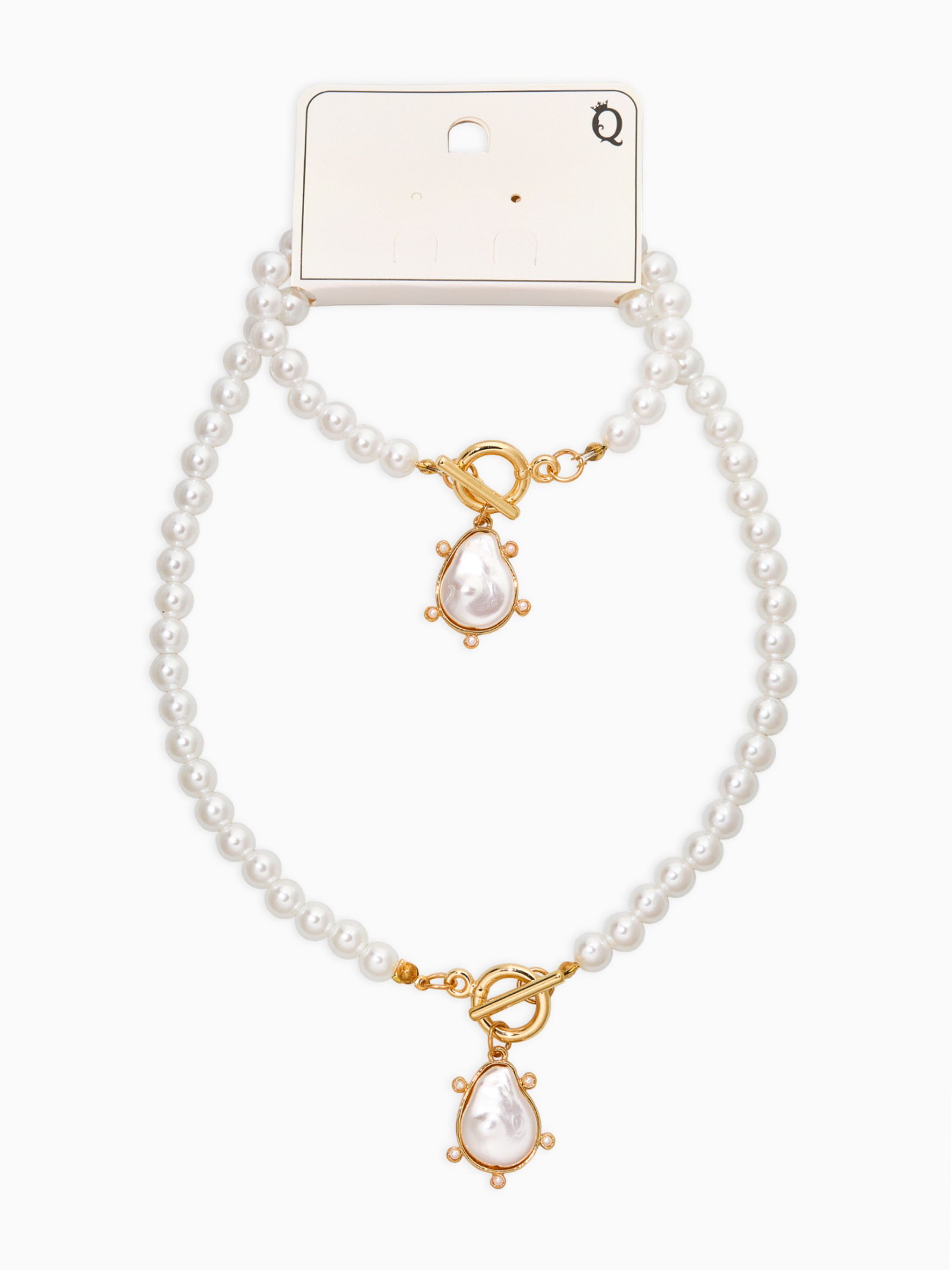 Набор 2 предмета: колье, браслет "Жемчуг. Подвеской Барочная жемчужина", 18 и 42 см, №8, белый в золоте, 4x42x2 см., QF, Китай