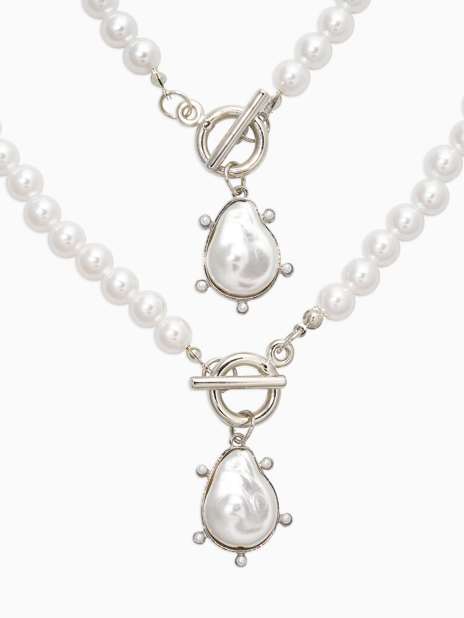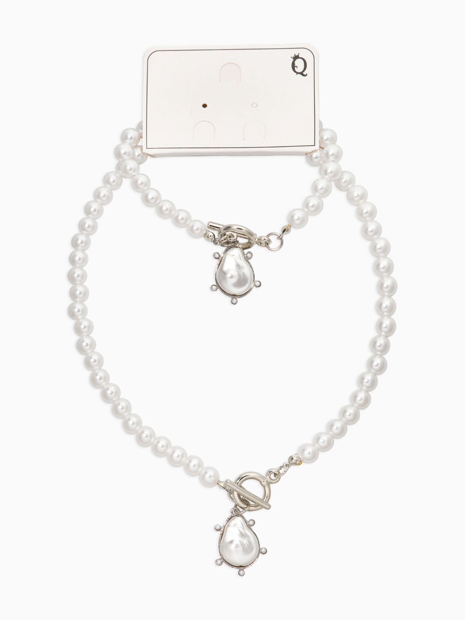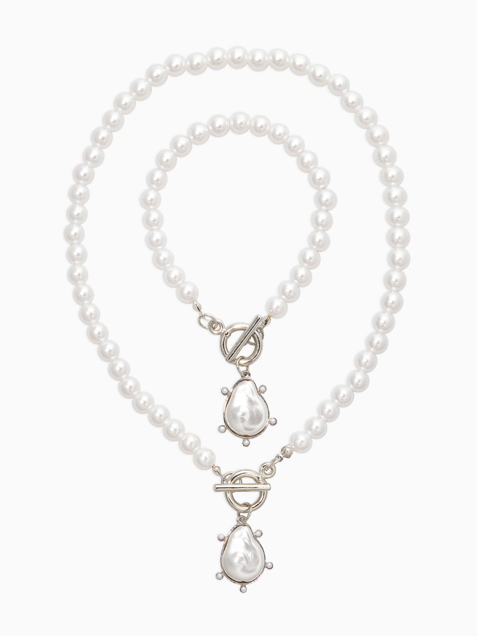 Набор 2 предмета: колье, браслет "Жемчуг. Подвеской Барочная жемчужина", 18 и 42 см, №8, белый в серебре, 4x42x2 см., QF, Китай