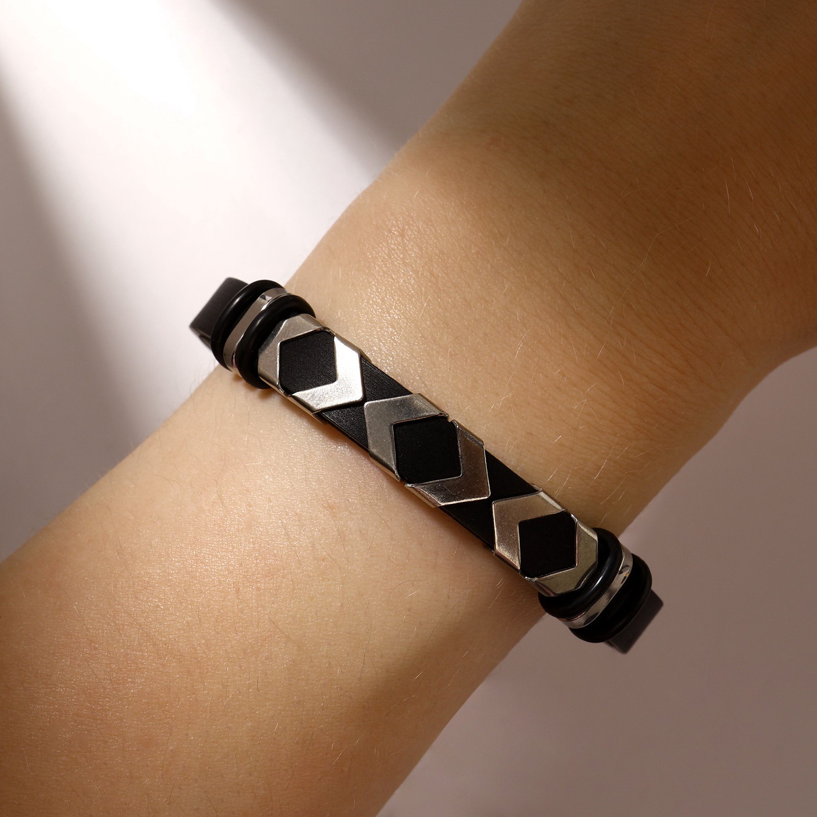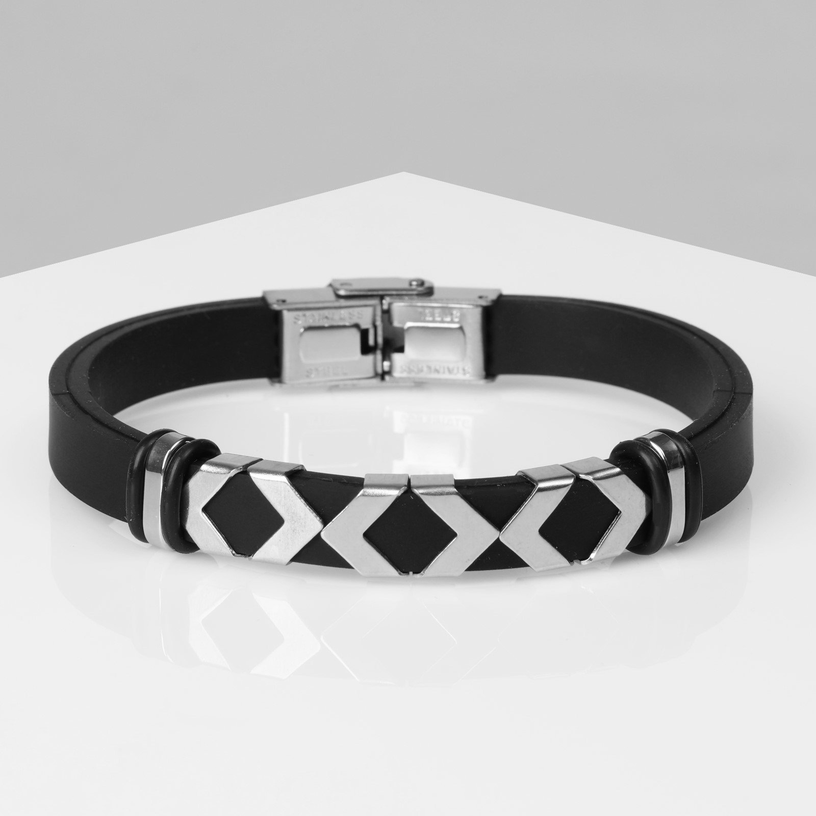 Браслет унисекс "Мощь" геометрия, цвет чёрный с серебром, 22 см, 1.2x22x0.5 см., QF, Китай
