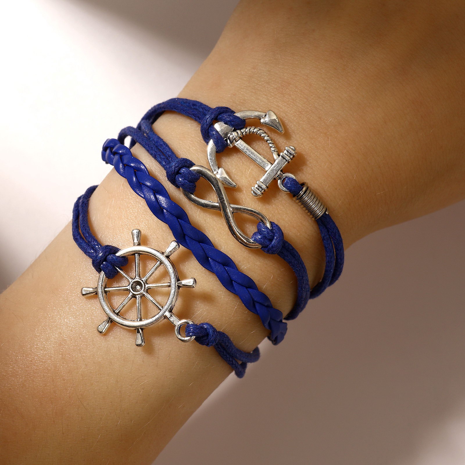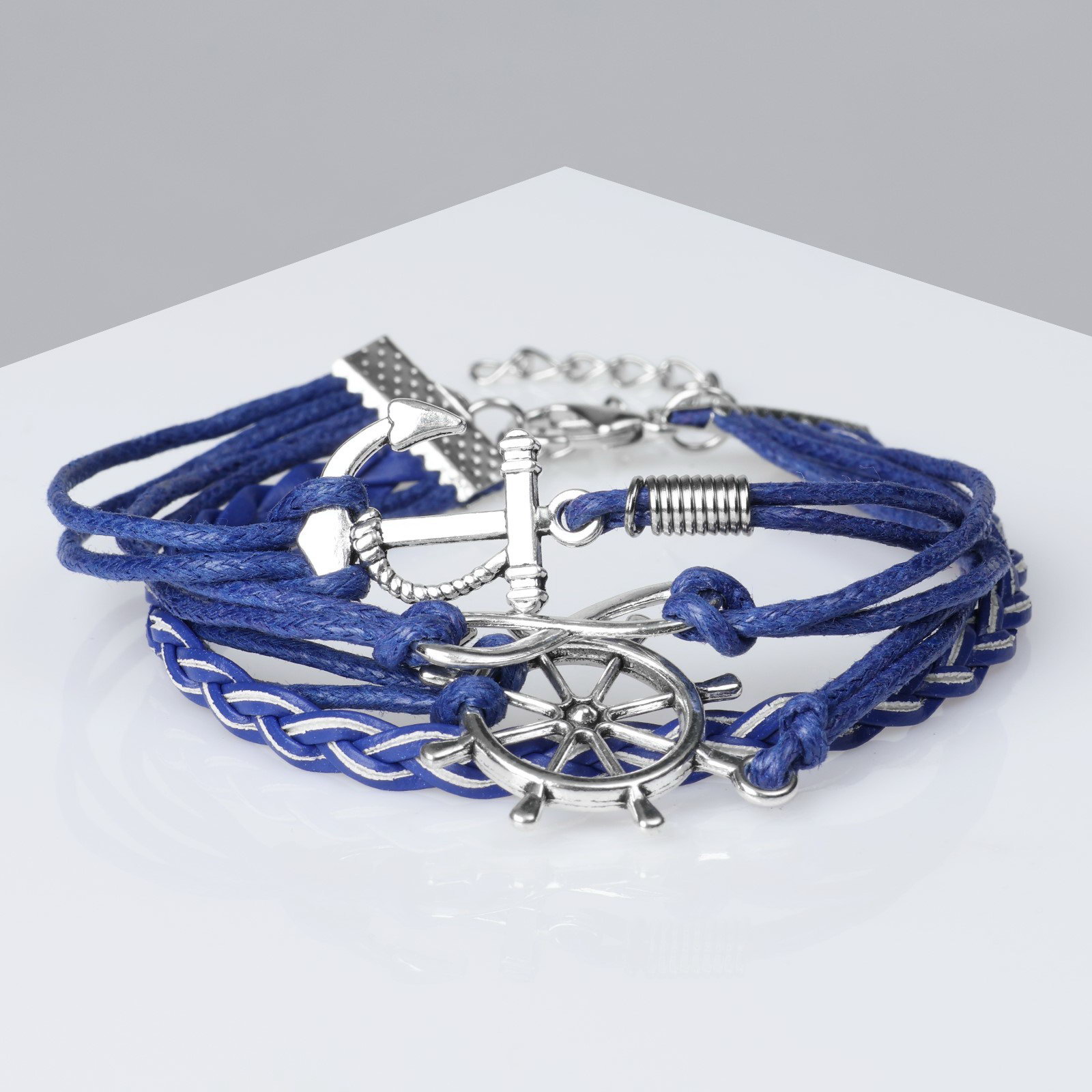 Браслет унисекс "Магия знаков" якорь и штурвал, цвет синий с серебром, 18 см, 3.5x18x0.5 см., QF, Китай