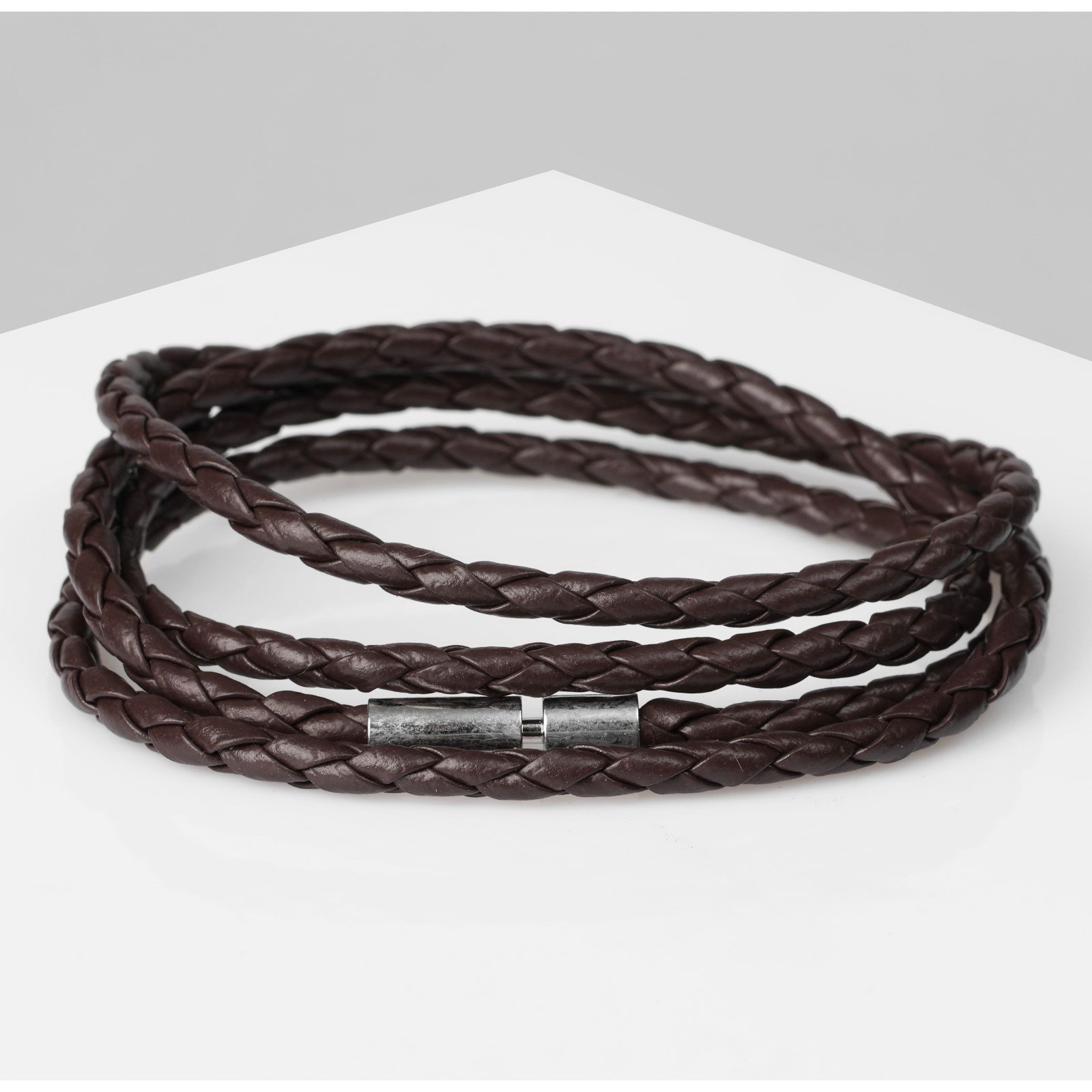 Браслет унисекс "Кожаное плетение", цвет коричневый с серебром, 82 см, 0.4x82x0.4 см., QF, Китай