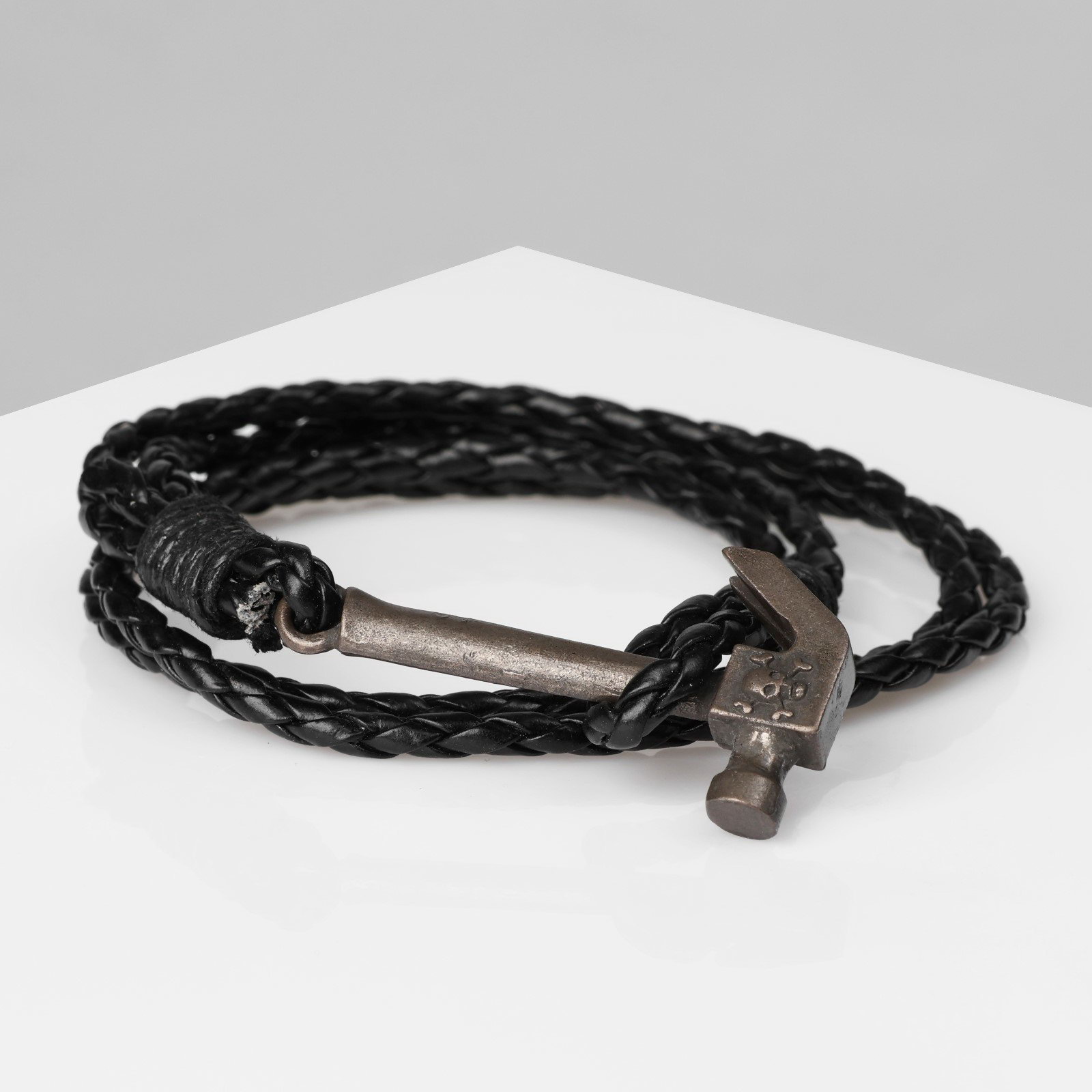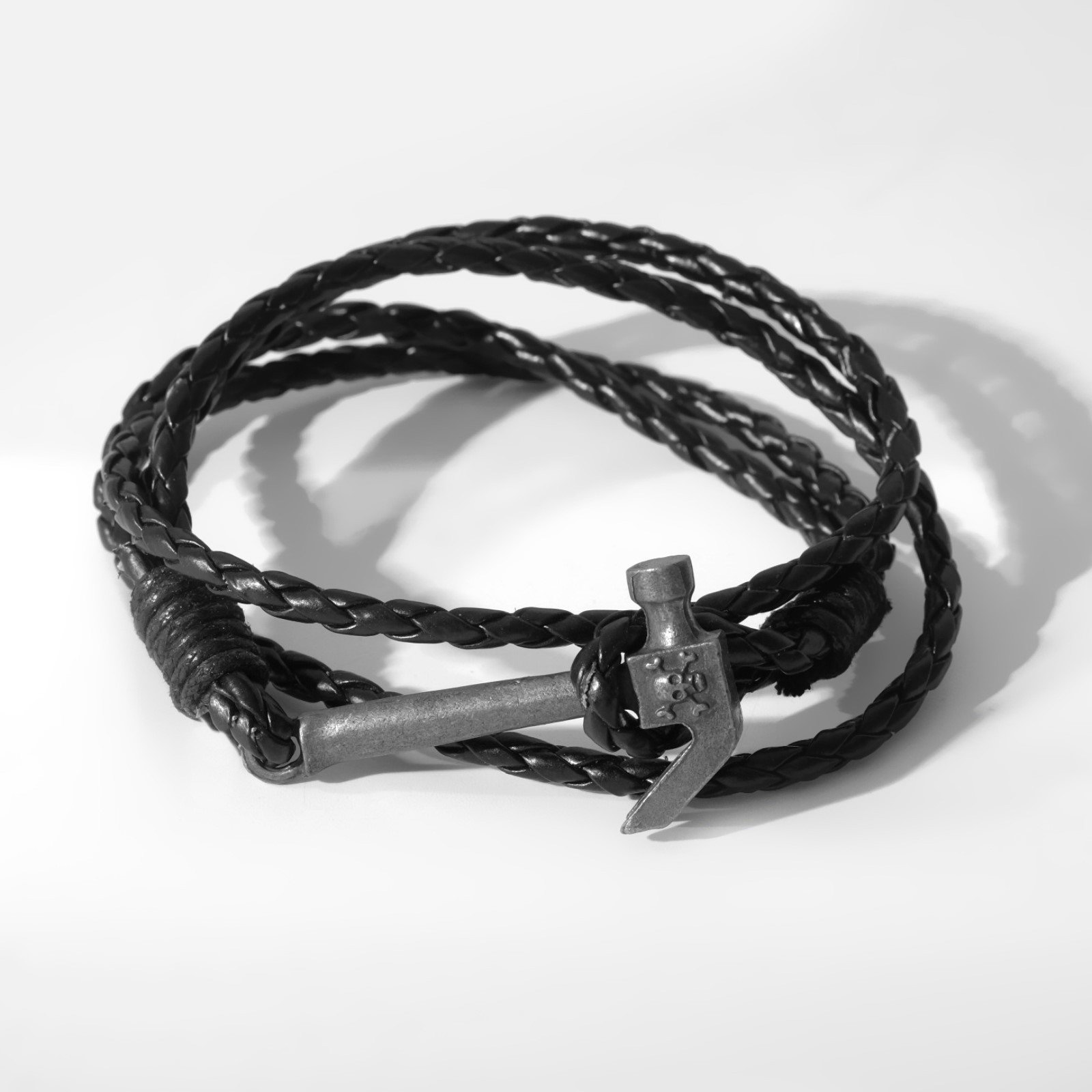 Браслет мужской "Молот" коса двойная, цвет чёрный с чернёным серебром, 43 см, 3x43x0.7 см., Queen fair, Китай