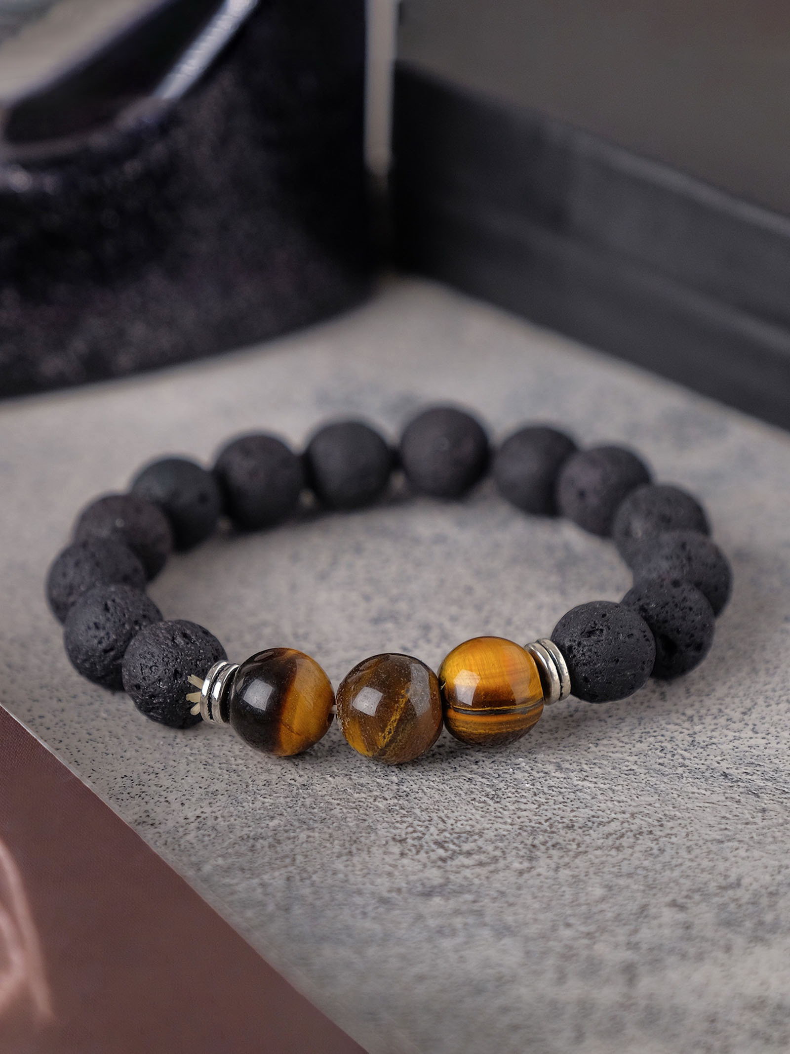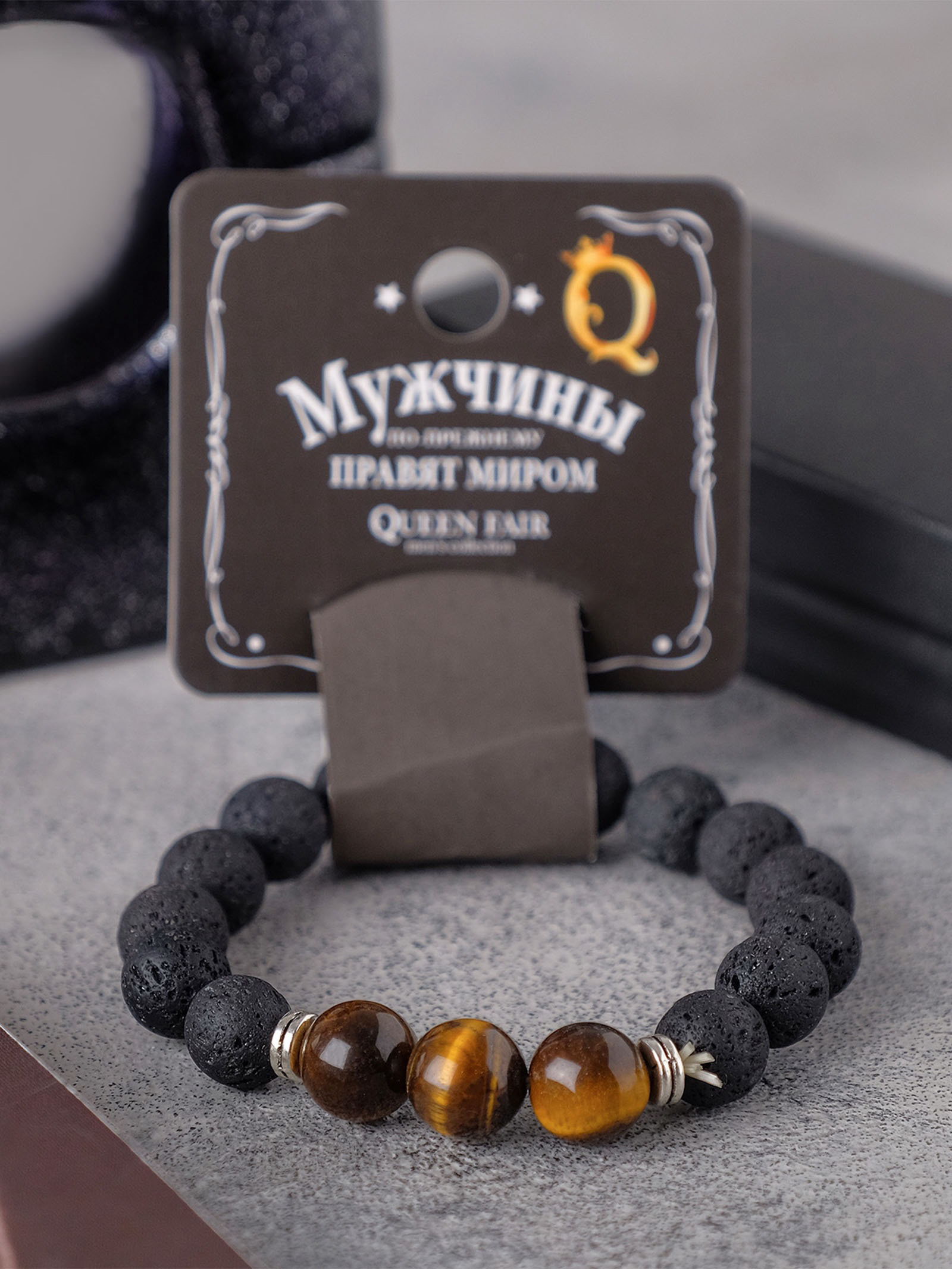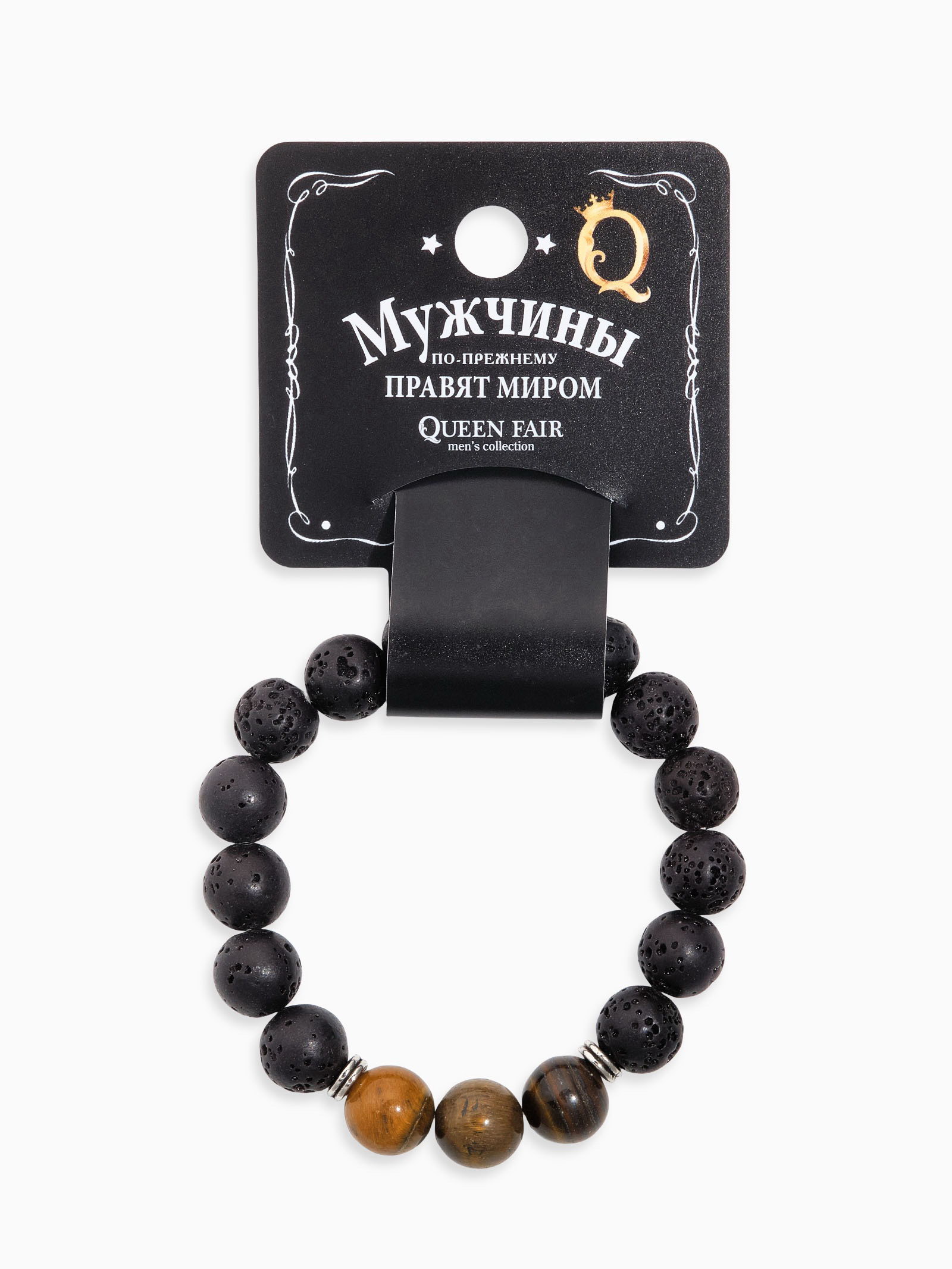 Браслет унисекс "Лава", тигровый глаз, чёрный/коричневый, 1x7x1 см., QF, Китай