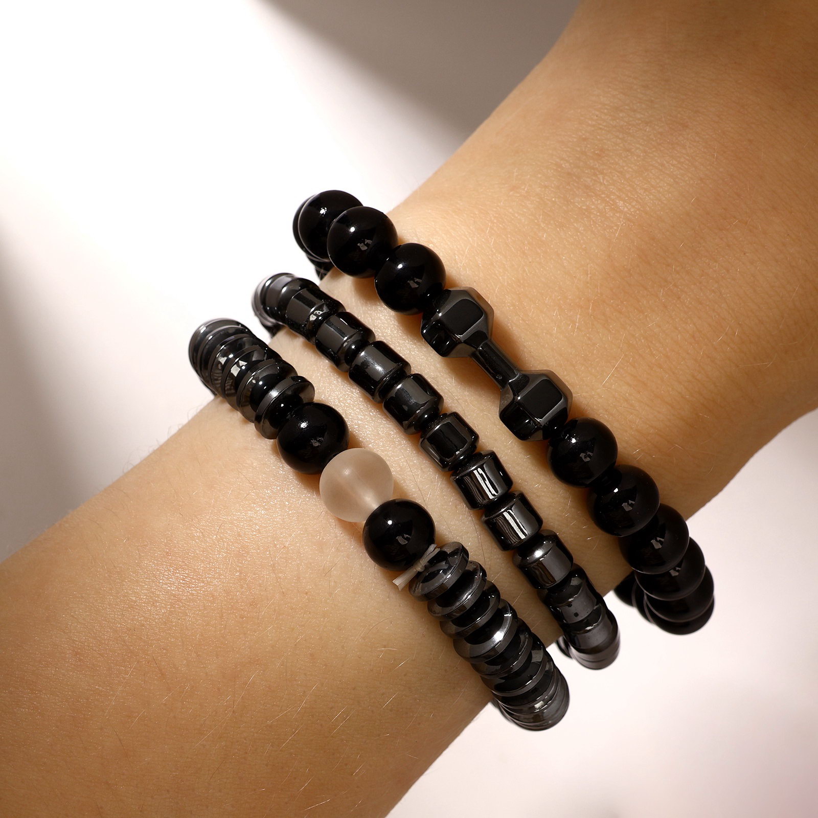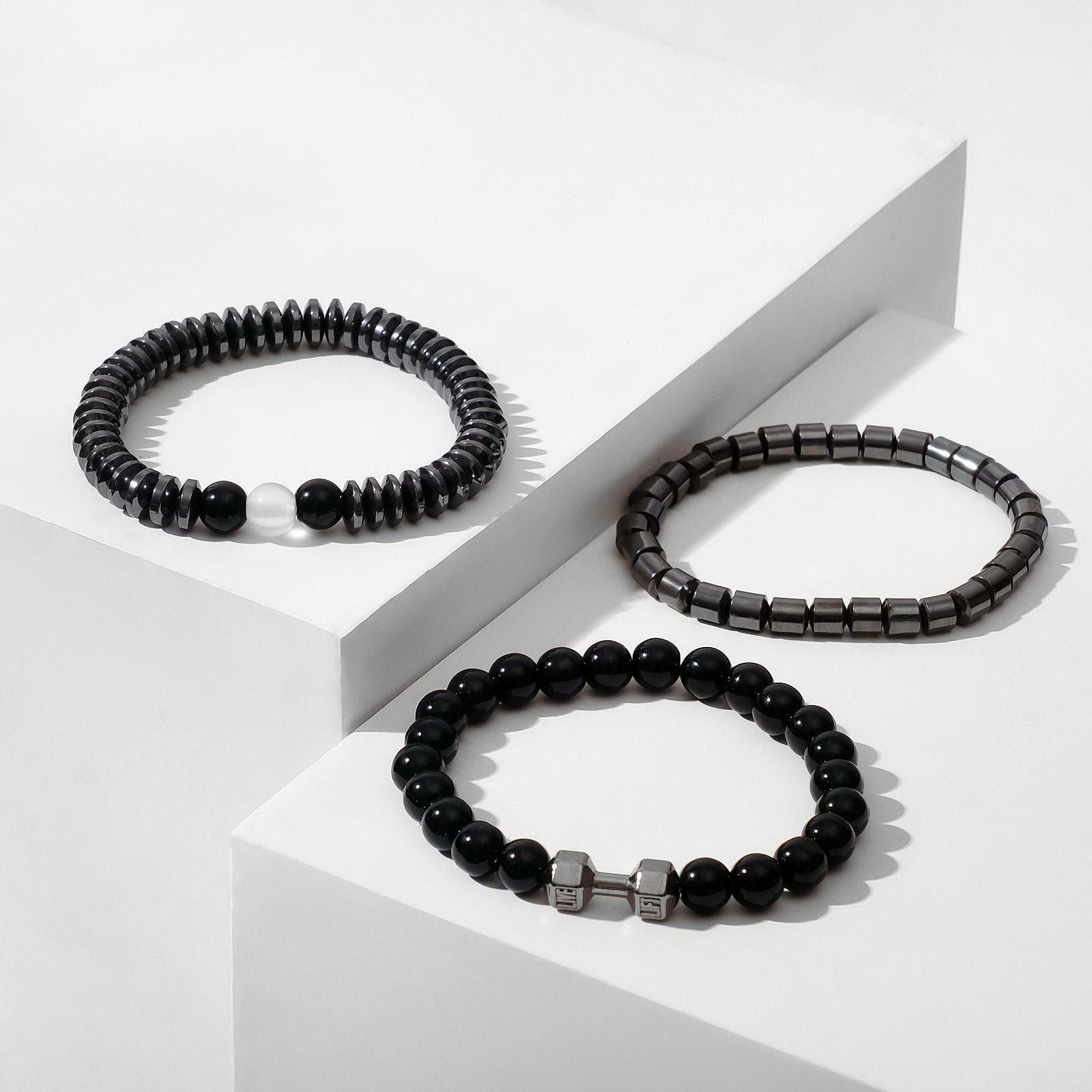 Браслеты унисекс "Гематит", 3 шт, гантели, d=7 см, чёрные, 7x7x2 см., QF, Китай