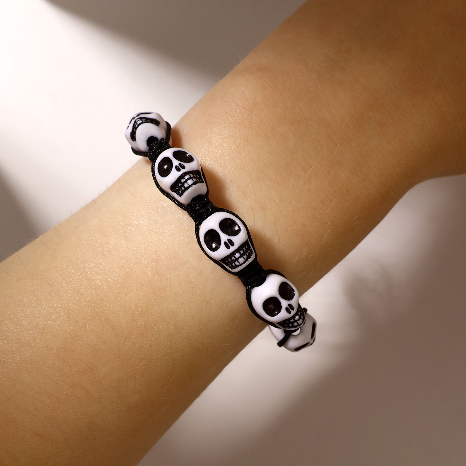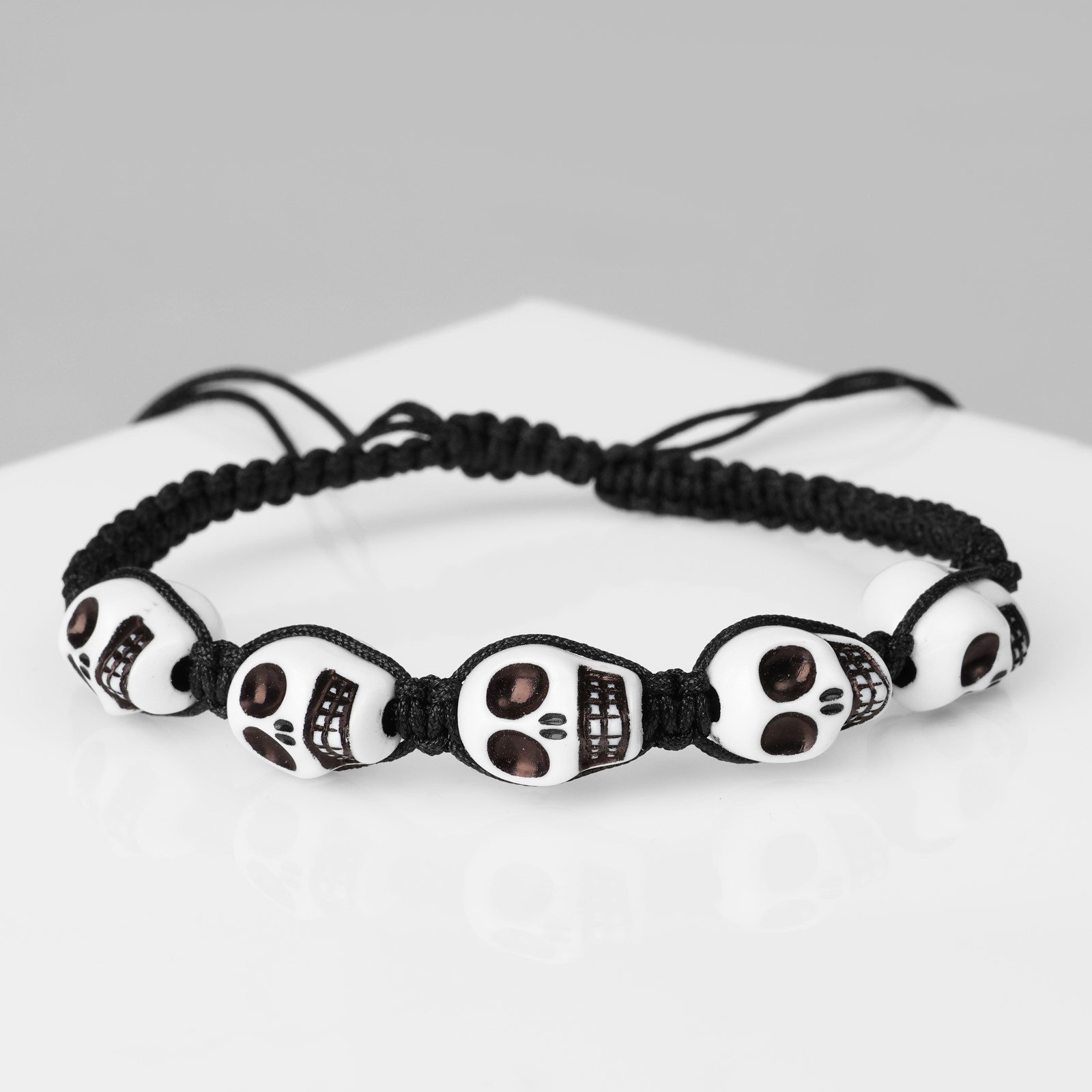 Браслет "Череп" мультяшный, цвет чёрно-белый, d=6 см, 0.7x6x0.7 см., QF, Китай