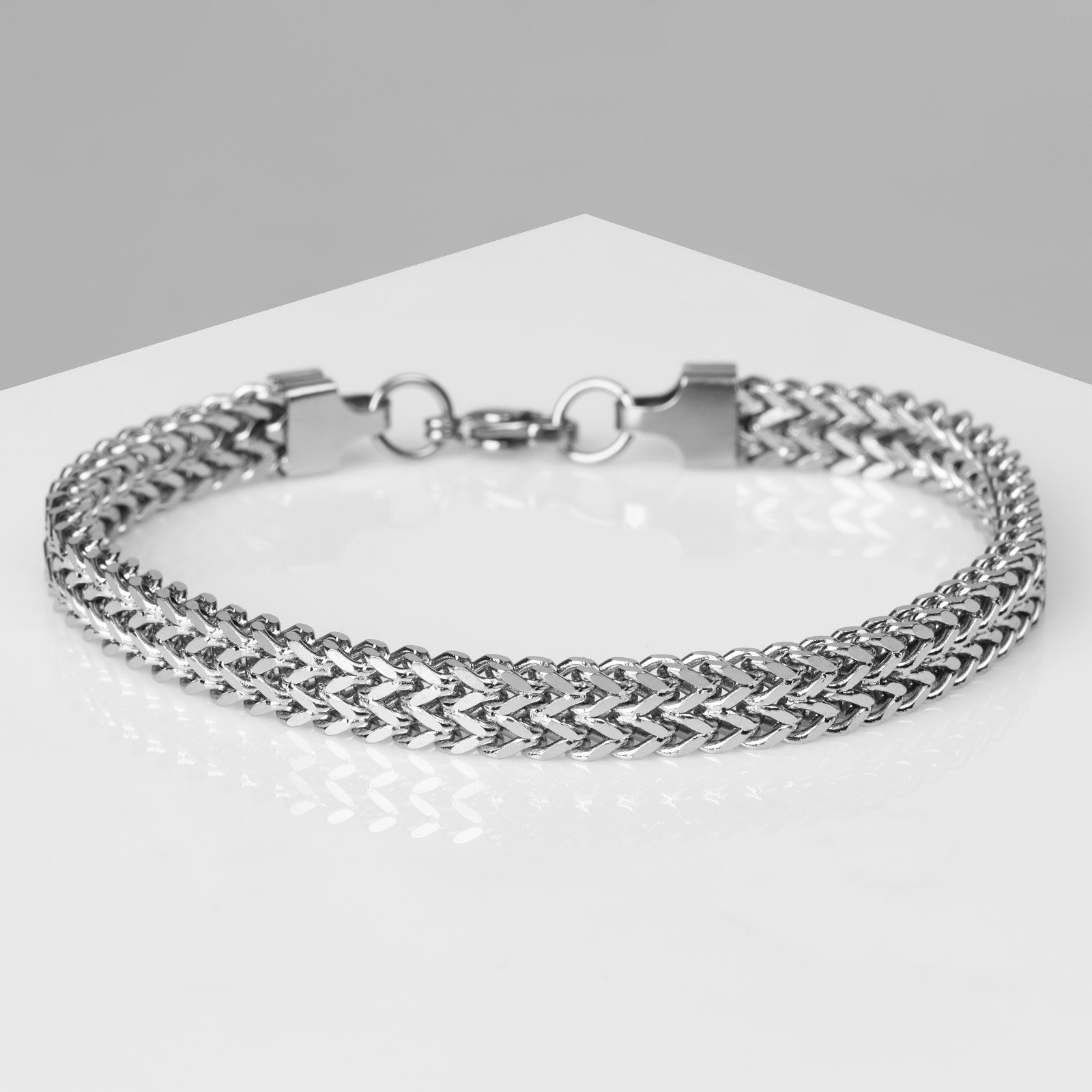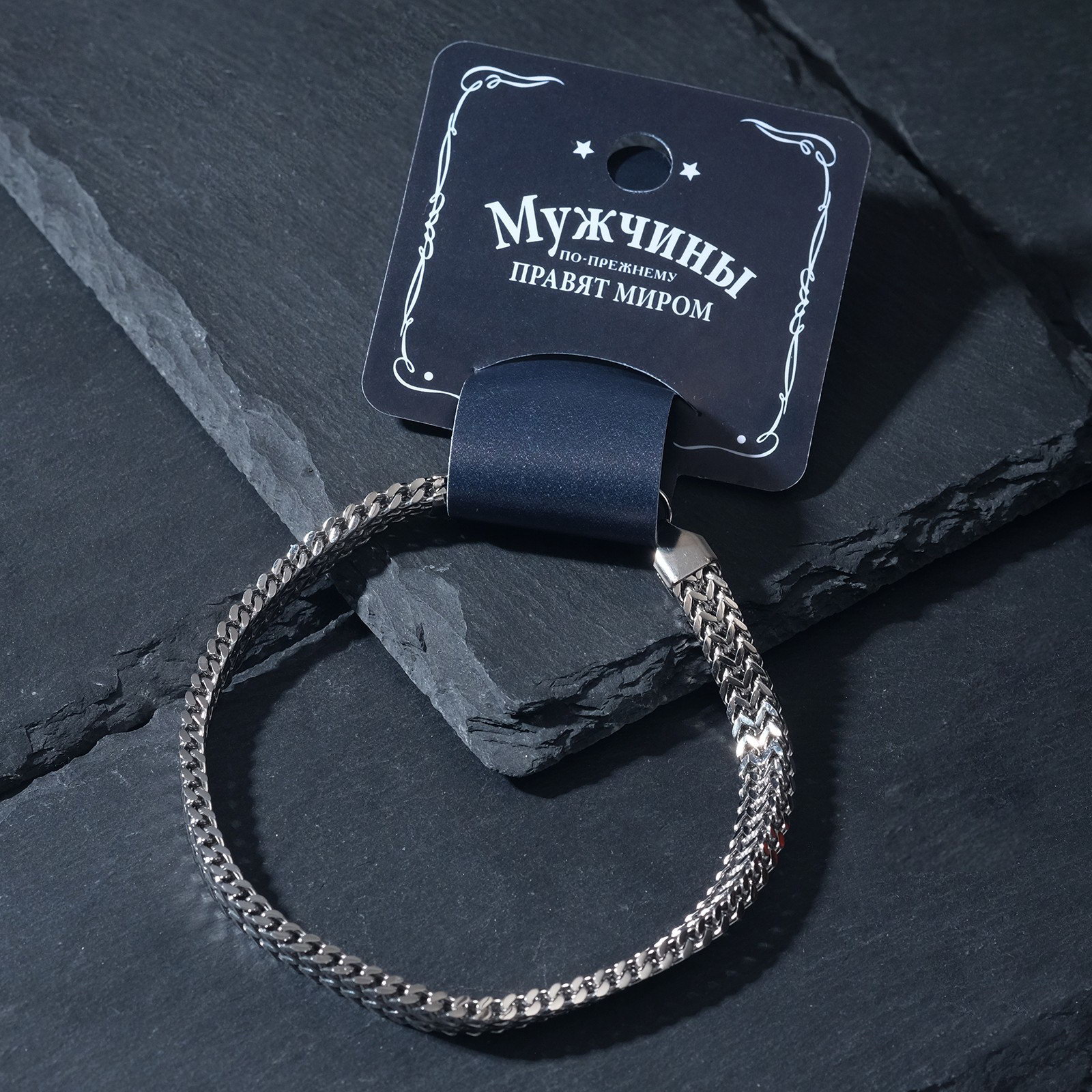 Цепочка на руку мужская "Стальной", зигзаги, 20 см, цвет серебро, 0.7x20x0.5 см., QF, Китай