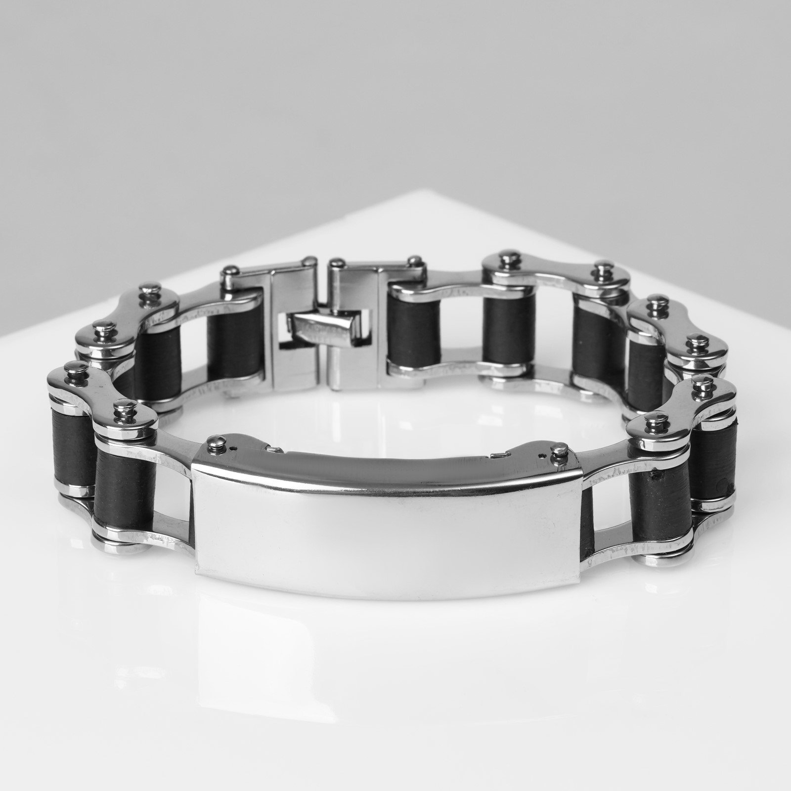 Браслет мужской "Стальной", рельсы, 20.5 см, серебряный, 1.7x20.5x1 см., QF, Китай