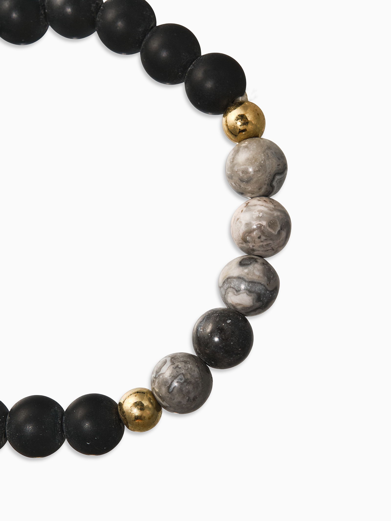 Браслет унисекс "Друиды" камень, цвет чёрно-серый, d=7 см, 0.8x7x0.8 см., QF, Китай