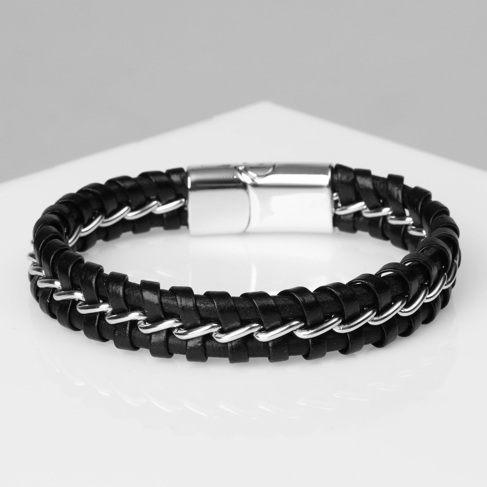 Браслет унисекс "Мощь" переплетение, цвет чёрный с серебром, 21.5 см, 1.2x21.5x0.5 см., QF, Китай