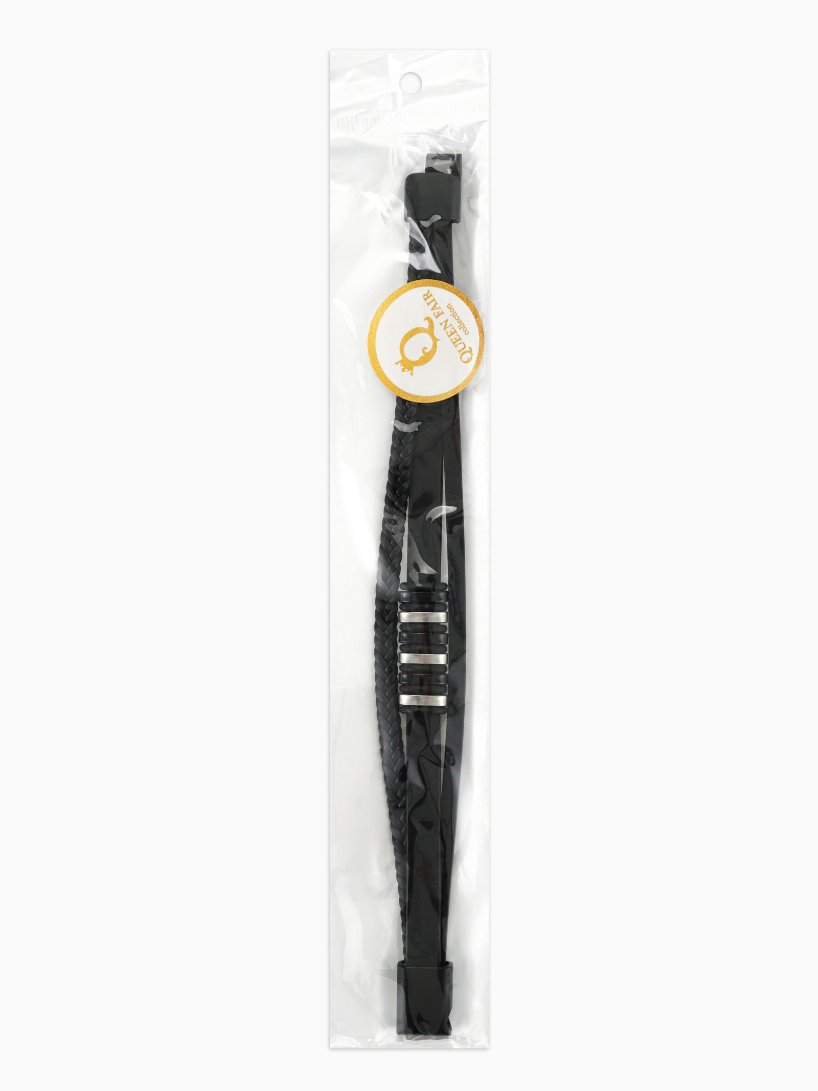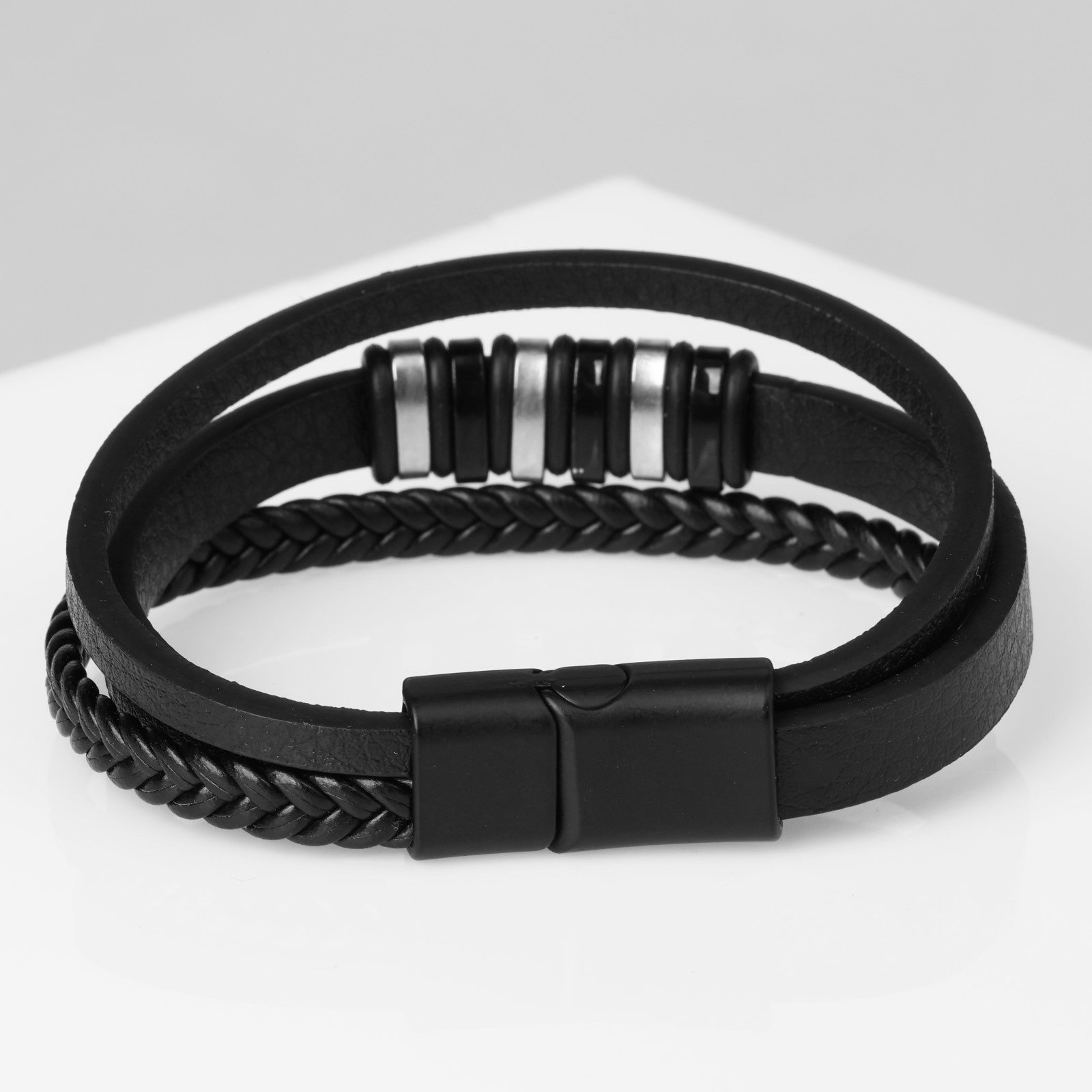 Браслет унисекс "Мощь" три звена, цвет чёрный с чёрно-серебряным металлом, 21.5 см, 2.5x21.5x0.5 см., QF, Китай