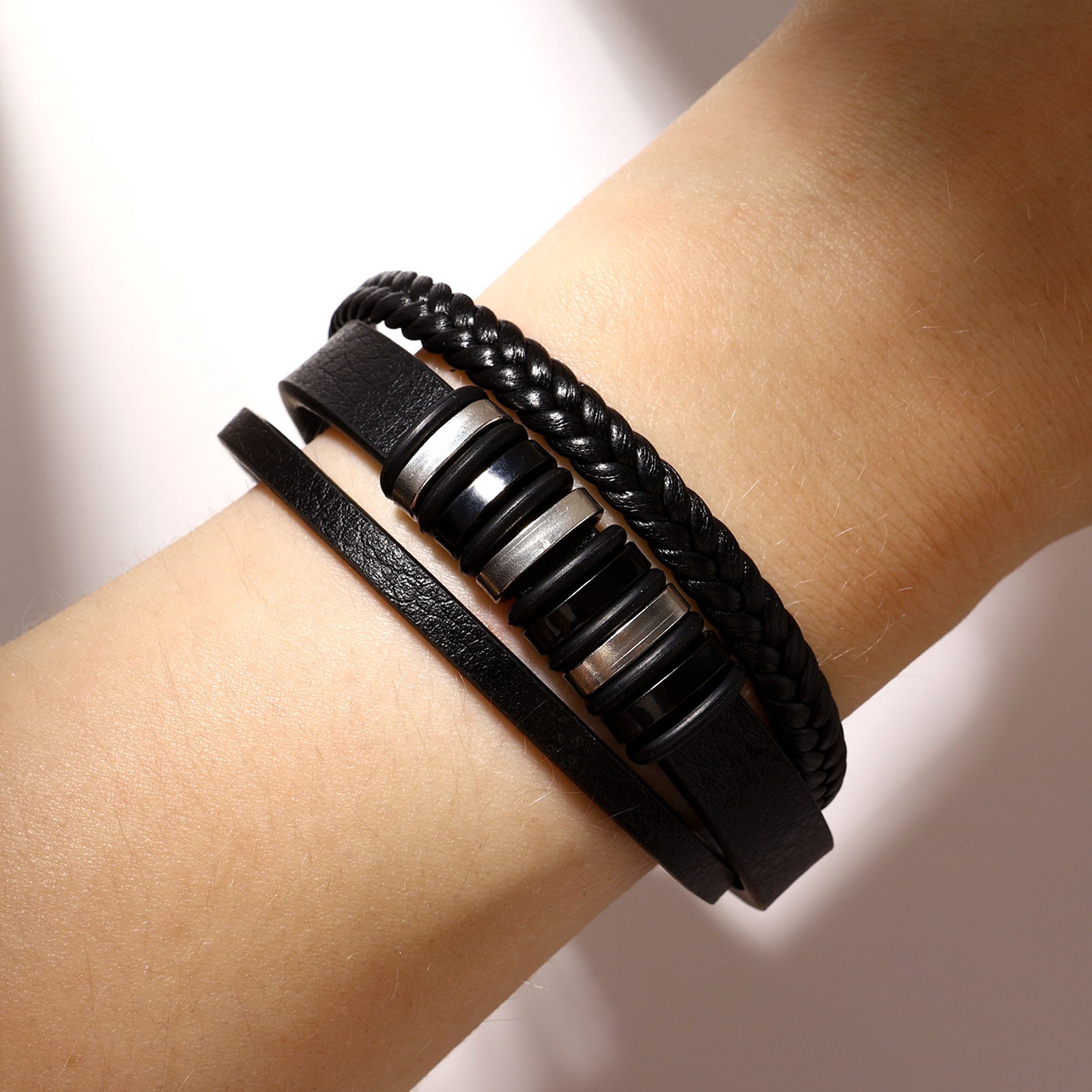 Вид: Браслет, Фенечка Для кого: Для мужчины, Унисекс Тематика праздника: 23 Февраля, День рождения Материал основы: Искусственная кожа, Каучук Размер упаковки: 4 x 1 x 22 см. Вид застёжки: Складная застёжка tnved: 7117190000 Тематика: Готическая Цвет вставки: Серебристый Цвет фурнитуры: Серебряный Цвет: Чёрный Набор: Нет Длина, см: 21.5 Вставка/Подвеска: Металл Браслет с тремя звеньями "Мощь" воплощает в себе силу и гармонию, создавая выразительный акцент для тех, кто ценит внутреннюю энергию и стиль. Его насыщенный чёрный цвет в сочетании с чёрно-серебряным металлом подчеркивает универсальность и современность дизайна. Длина 21,5 см обеспечивает комфортную посадку, позволяя носить его как на повседневных образах, так и на особых мероприятиях. Изготовленный из искусственной кожи и каучука, этот браслет отличается высокой прочностью и долговечностью. Три звена символизируют баланс и силу, а складная застёжка позволяет легко регулировать размер под индивидуальные особенности запястья. Вставка из металла добавляет изделию изящества и современного шика, делая его универсальным аксессуаром для мужчин и женщин.