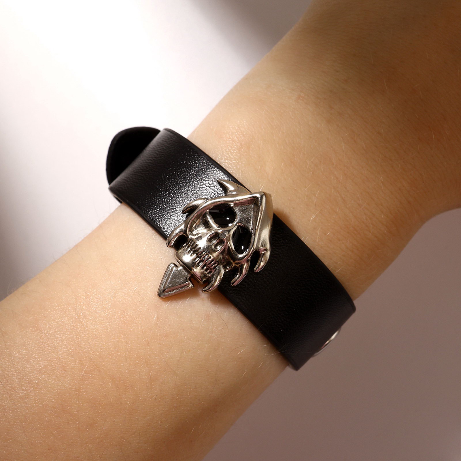 Браслет унисекс "Хардкор" череп ремешок, цвет чёрный в серебре, 3x23x0.8 см., QF, Китай