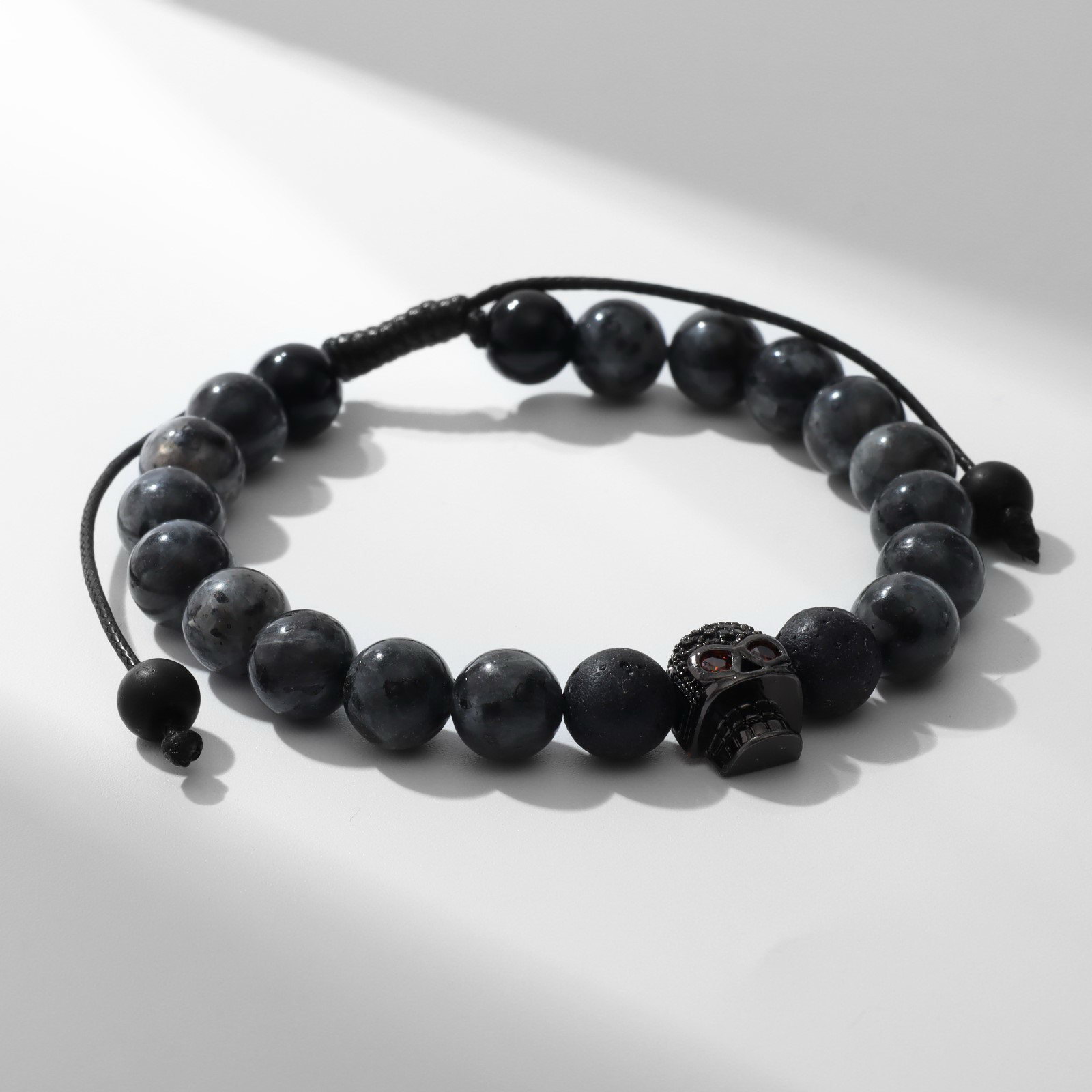 Браслет мужской "Череп" с бусинами на нити, цвет серый, 1x7x1 см., QF, Китай