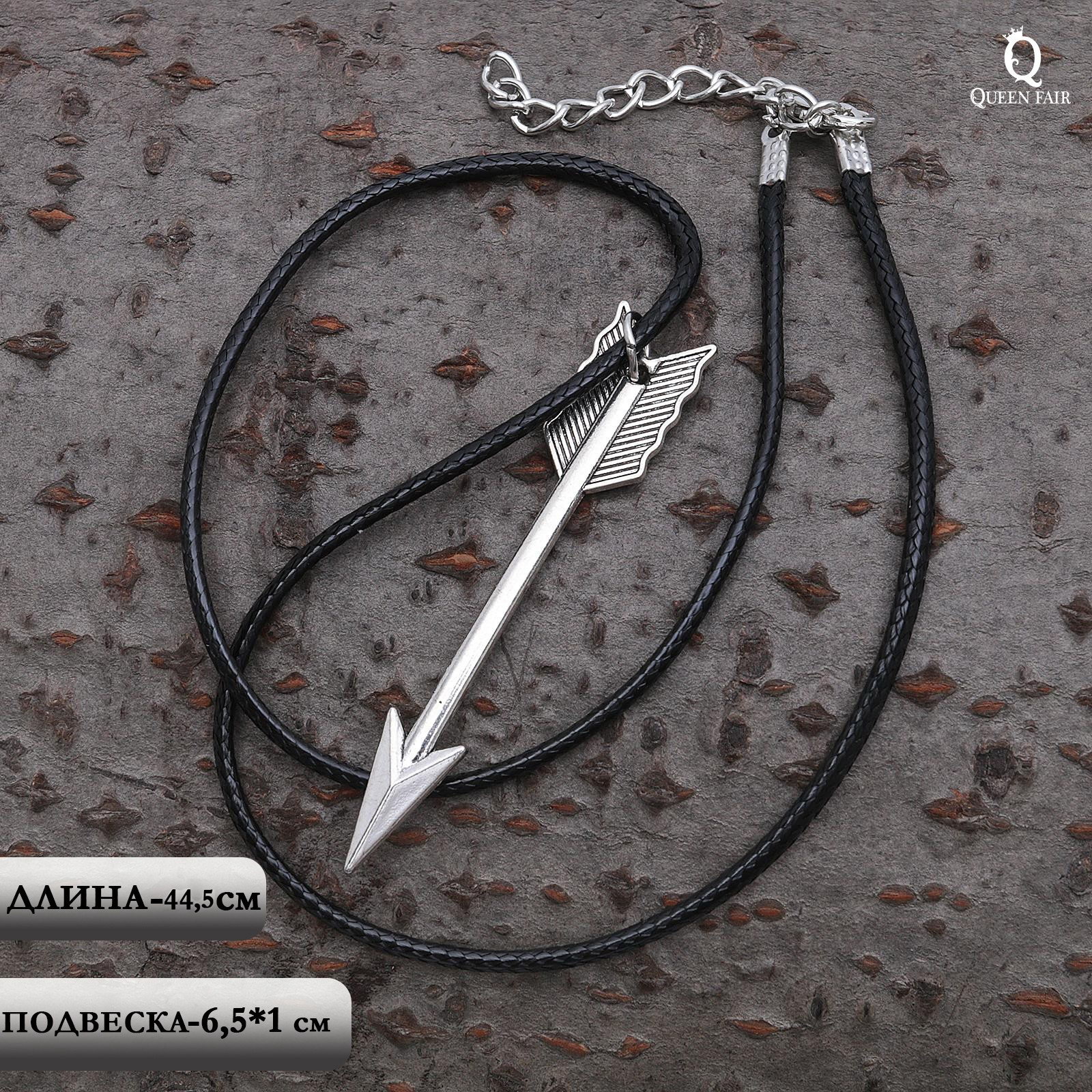 Кулон унисекс "Стрела", подвеска 3x0.5 см, шнурок 40 см, цвет серебро, 6.5x40x1 см., QF, Китай
