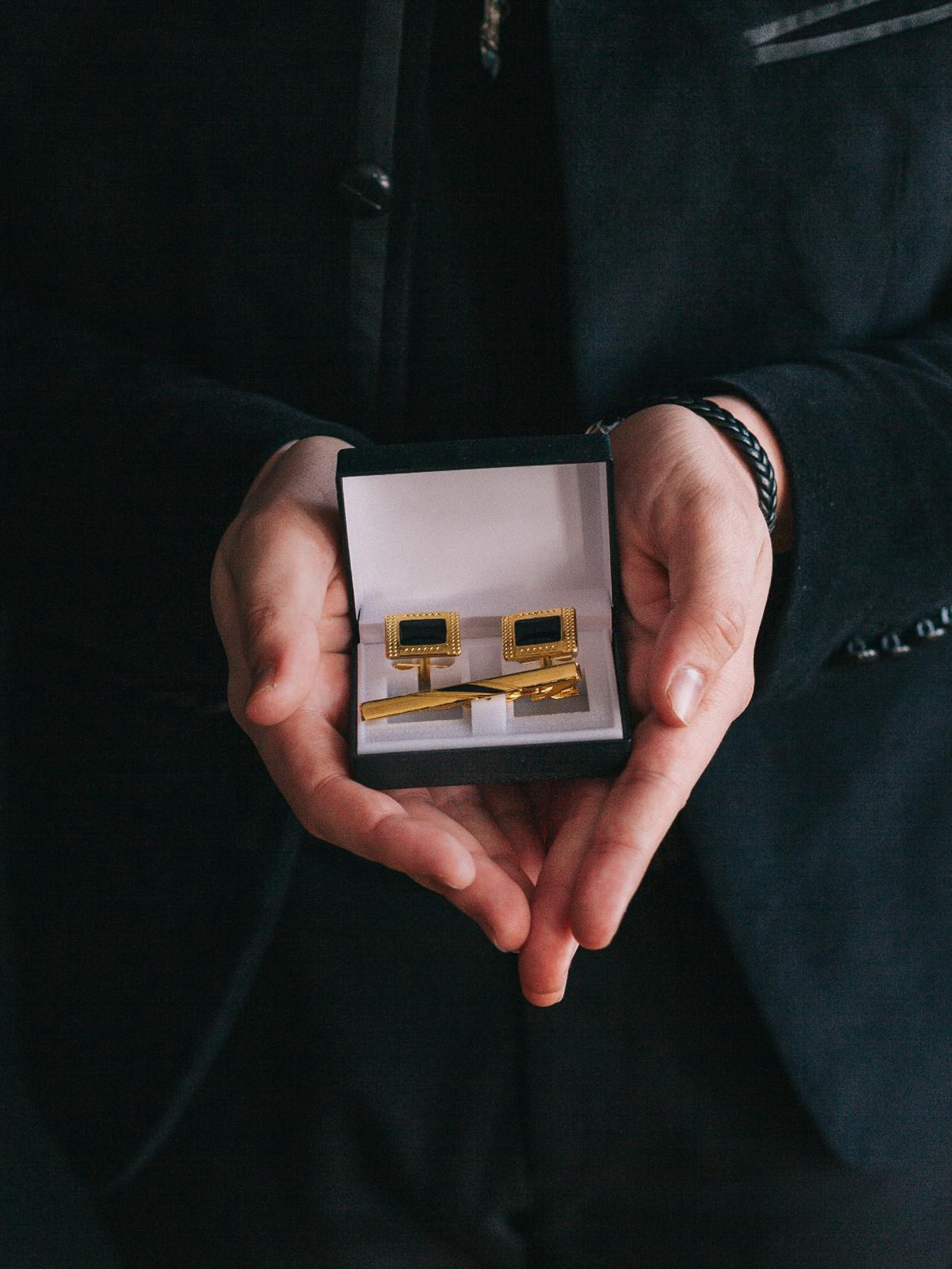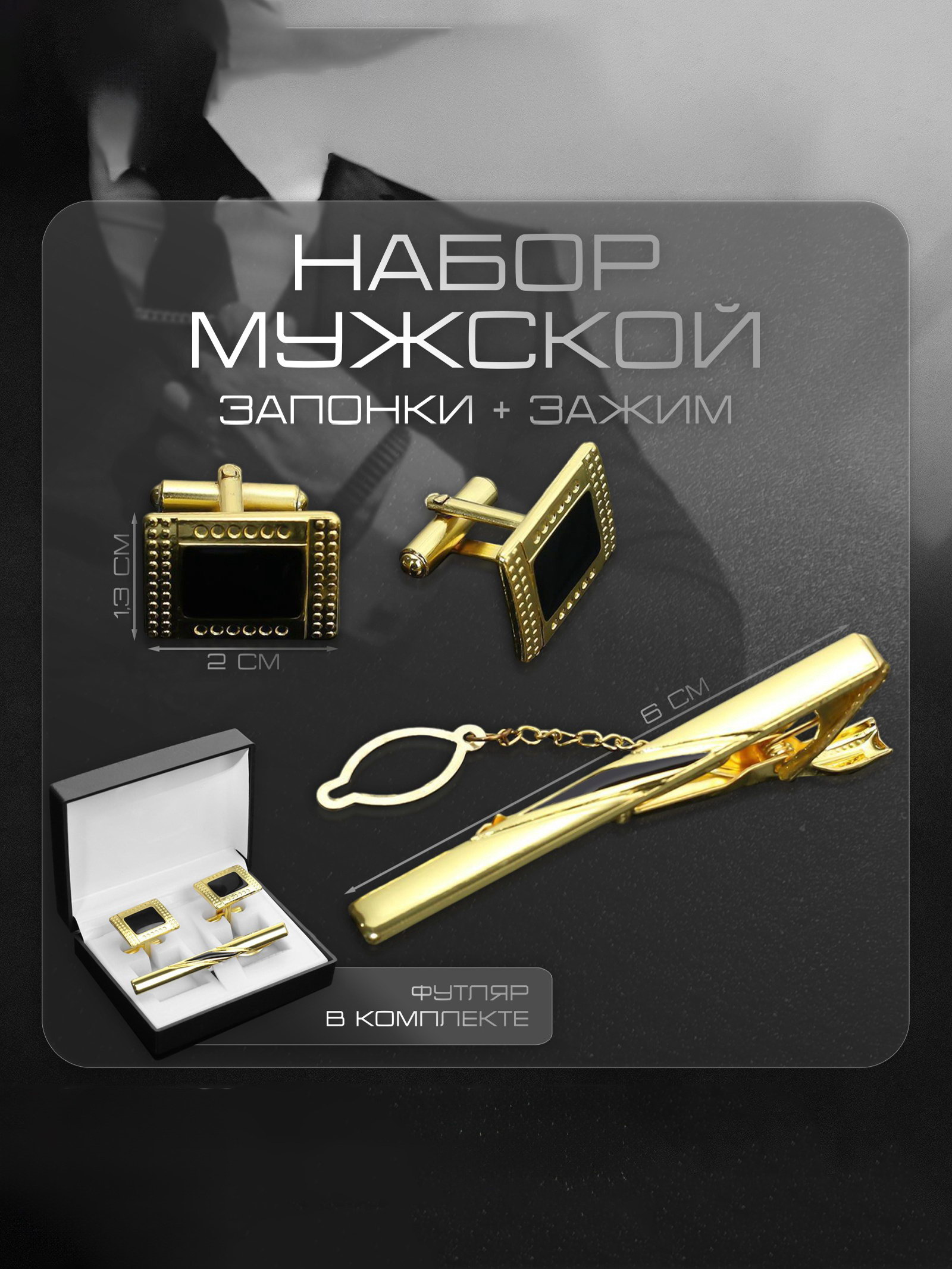 Вид: Зажимы, Запонки Тематика праздника: 23 Февраля, Выпускной в школе, День рождения, Корпоратив, Свадьба, Универсальная тематика Размер упаковки: 6 x 2.8 x 7.5 см. Набор: Да Длина, см: 6 Материал основы: Медь Для кого: Для мужчины Тематика подарка: Бижутерия tnved: 7117110000 Цвет фурнитуры: Золотой Вставка/Подвеска: Эмаль Цвет: Чёрный Мужские наборы запонки и зажим для галстука от торговой марки Queen Fair стильный аксессуар, который станет изюминкой вашего образа. Эти изысканные элементы бижутерии идеально дополняют костюм и подчеркивают вашу индивидуальность. Несмотря на миниатюрность запонки способны произвести действительно неизгладимое впечатление на окружающих, а также многое рассказать о стиле и статусе владельца. Благодаря зажиму галстук крепится на передней части рубашки, не выбивается и не раскачивается, обеспечивая аккуратный и элегантный вид владельцу данного украшения. В ассортименте наборы из стали, меди и металла, благодаря чему можно подобрать подходящий стиль для любого случая. Такой набор станет идеальным дополнением Вашего образа, а также альтернативным подарком для мужчин, ценящих качество и яркость в деталях. Queen Fair ваш выбор для создания совершенного образа! Советы по уходу за бижутерией: