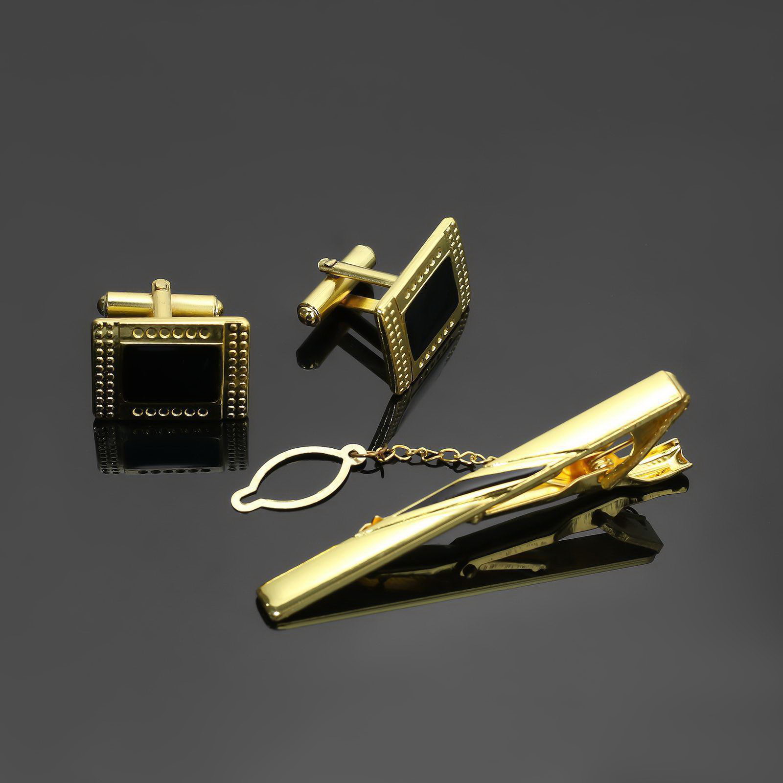 Вид: Зажимы, Запонки Тематика праздника: 23 Февраля, Выпускной в школе, День рождения, Корпоратив, Свадьба, Универсальная тематика Адресат: Брату, Другу, Мужу/Жениху, Папе Размер упаковки: 6 x 2.8 x 7.5 см. Длина, см: 6 Набор: Да Материал основы: Медь Для кого: Для мужчины Тематика подарка: Бижутерия Тематика подарка: Бижутерия tnved: 7117110000 Цвет фурнитуры: Золотой Вставка/Подвеска: Эмаль Цвет: Чёрный parent item id: 857012 Мужские наборы запонки и зажим для галстука от торговой марки Queen Fair стильный аксессуар, который станет изюминкой вашего образа. Эти изысканные элементы бижутерии идеально дополняют костюм и подчеркивают вашу индивидуальность. Несмотря на миниатюрность запонки способны произвести действительно неизгладимое впечатление на окружающих, а также многое рассказать о стиле и статусе владельца. Благодаря зажиму галстук крепится на передней части рубашки, не выбивается и не раскачивается, обеспечивая аккуратный и элегантный вид владельцу данного украшения. В ассортименте наборы из стали, меди и металла, благодаря чему можно подобрать подходящий стиль для любого случая. Такой набор станет идеальным дополнением Вашего образа, а также альтернативным подарком для мужчин, ценящих качество и яркость в деталях. Queen Fair ваш выбор для создания совершенного образа! Советы по уходу за бижутерией: