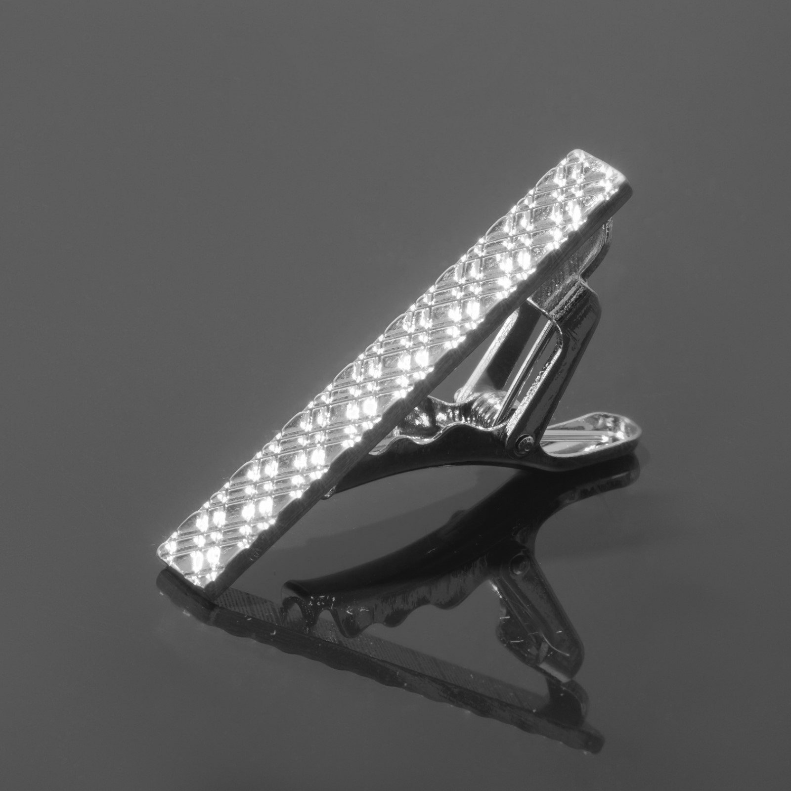 Зажим для галстука медный "Ромбы" классические, цвет серебро, 1x5x0.8 см., QF, Китай