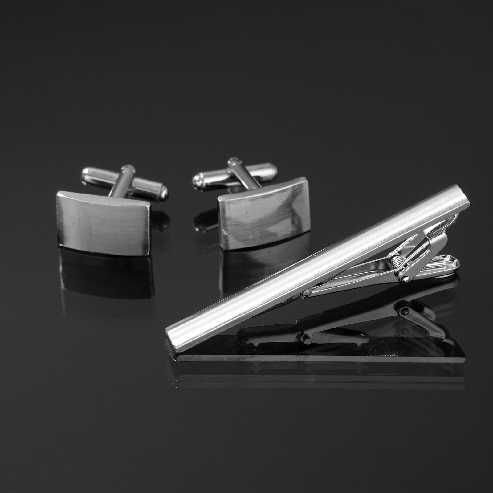 Набор мужской "Запонки + Зажим для галстука" классика, цвет серебро, 0.7x6x1.7 см., QF, Китай