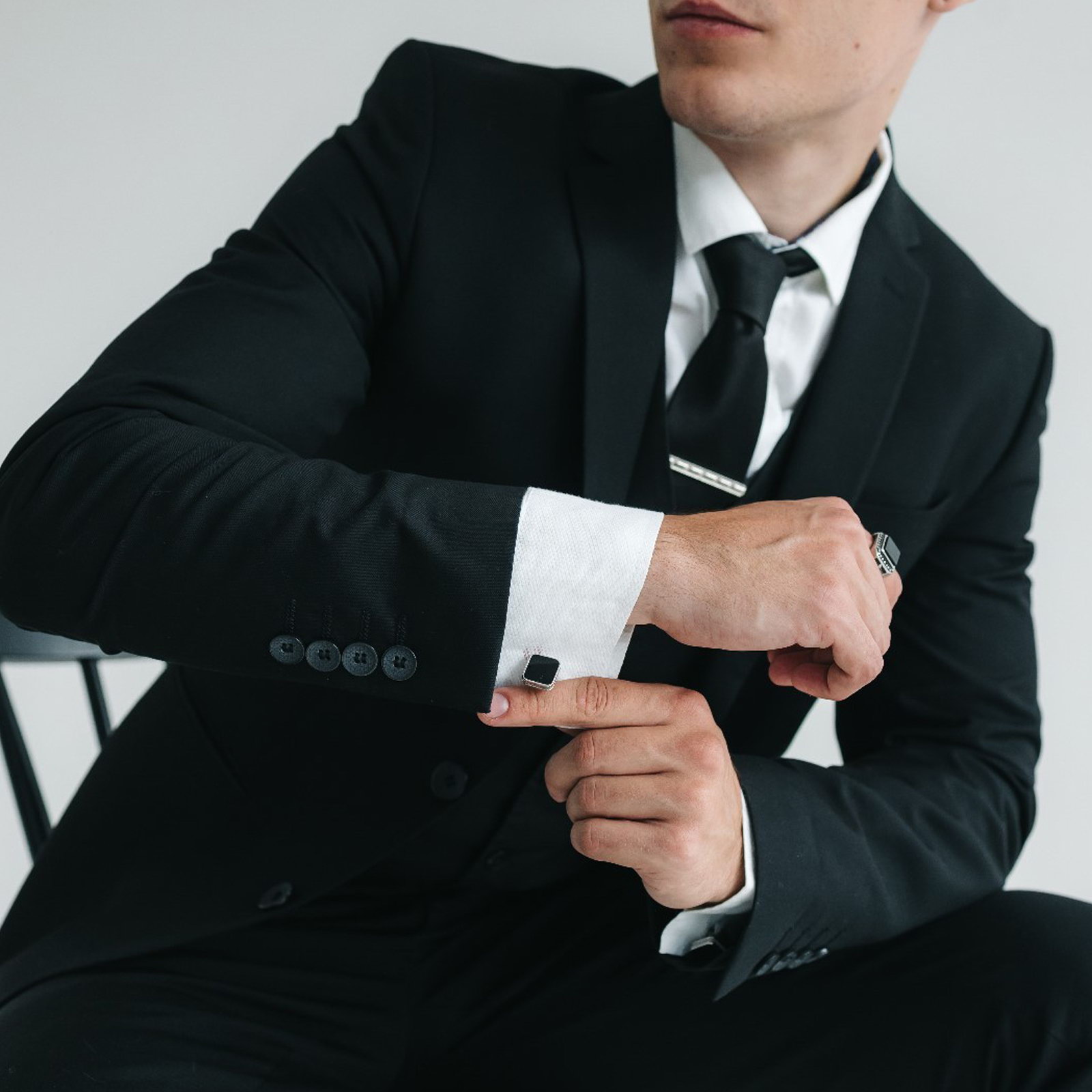 Запонки медные "Квадрат" классический, чёрные в серебре, 1.7x4x1.7 см., QF, Китай