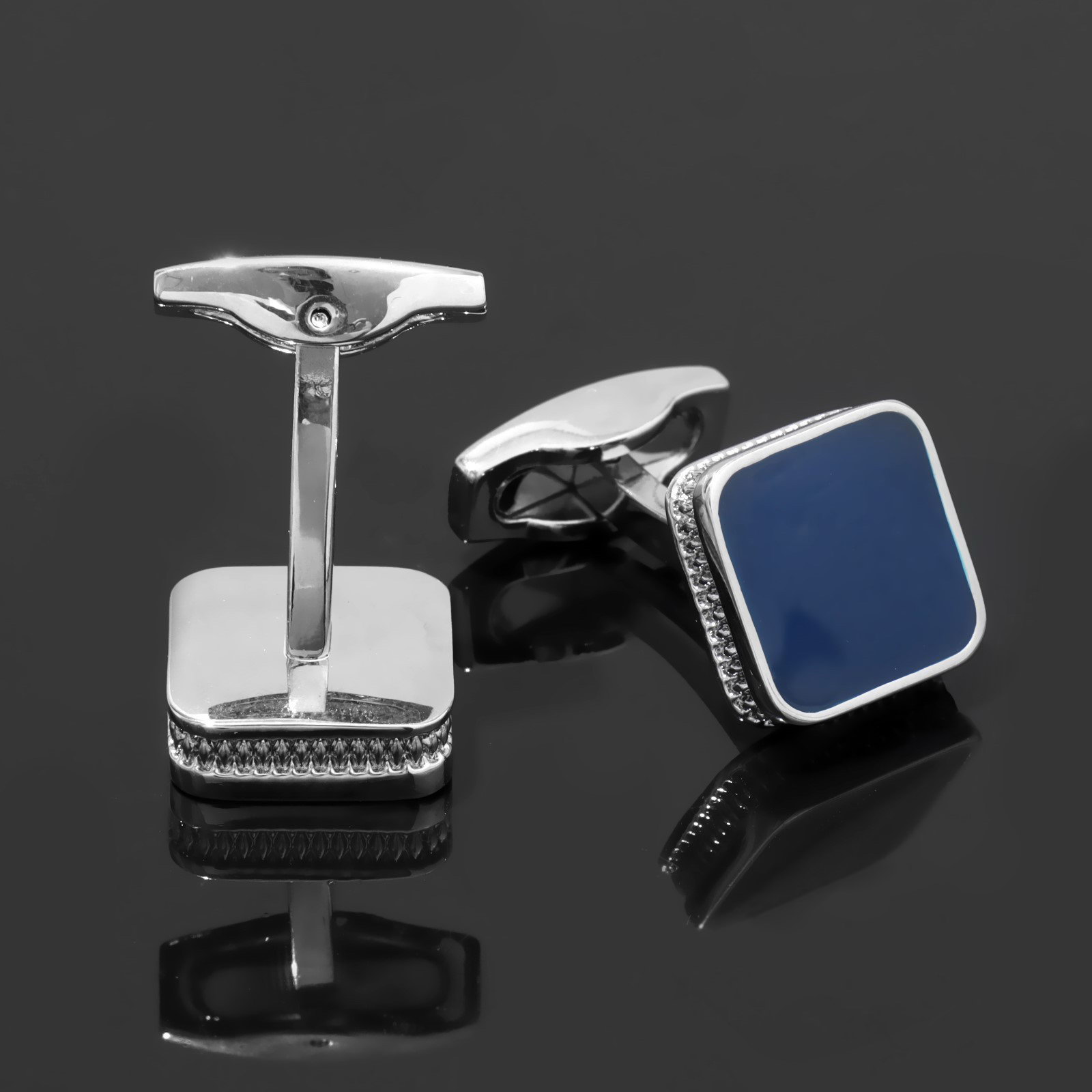 Запонки медные "Квадрат" классический, синие в серебре, 1.7x4x1.7 см., QF, Китай