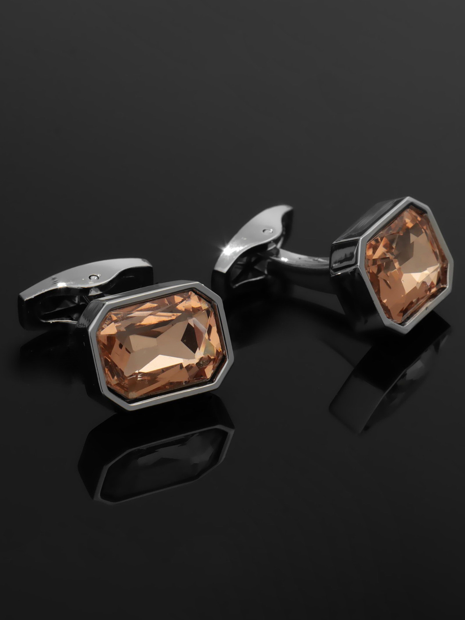 Запонки медные "Элегантность", оранжевые в серебре, 1.4x2x1.6 см., QF, Китай