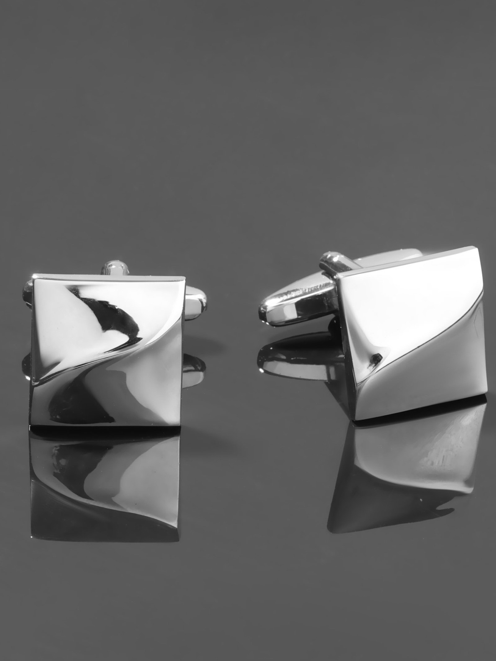 Запонки стальные "Квадраты" рельефные, цвет серебро, 1.6x2x1.6 см., QF, Китай